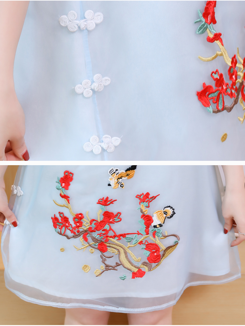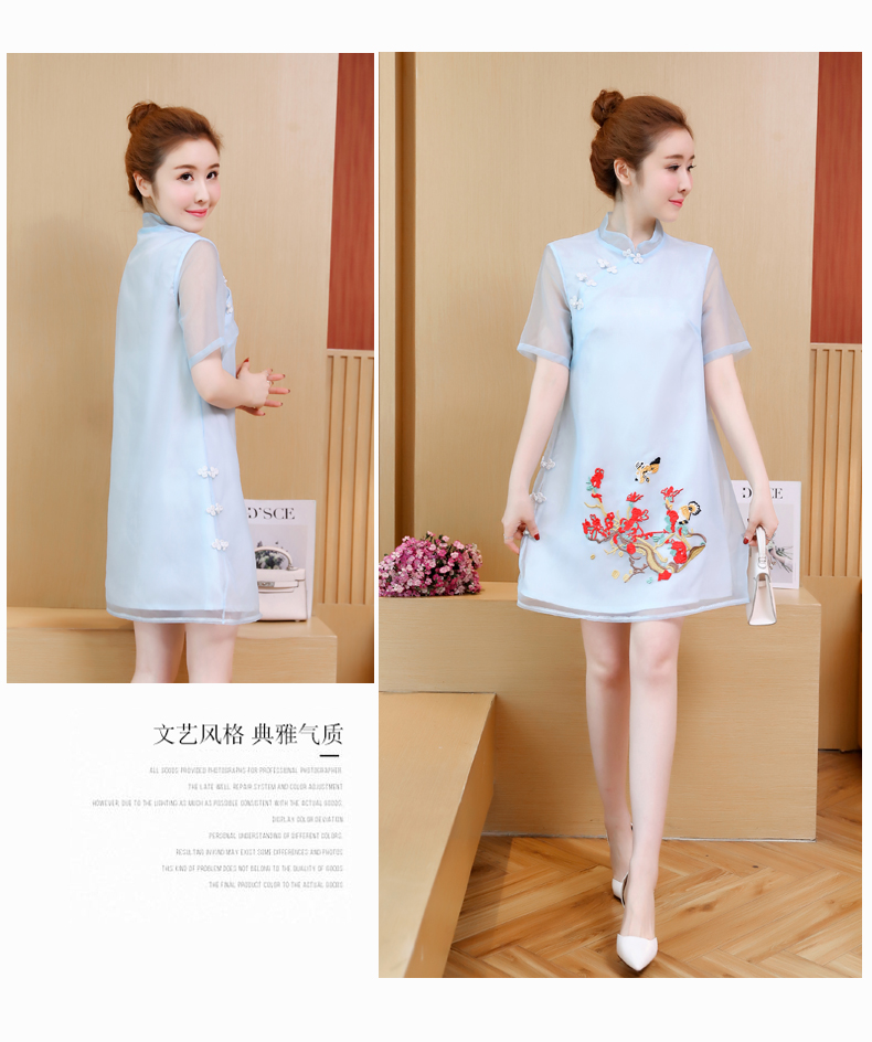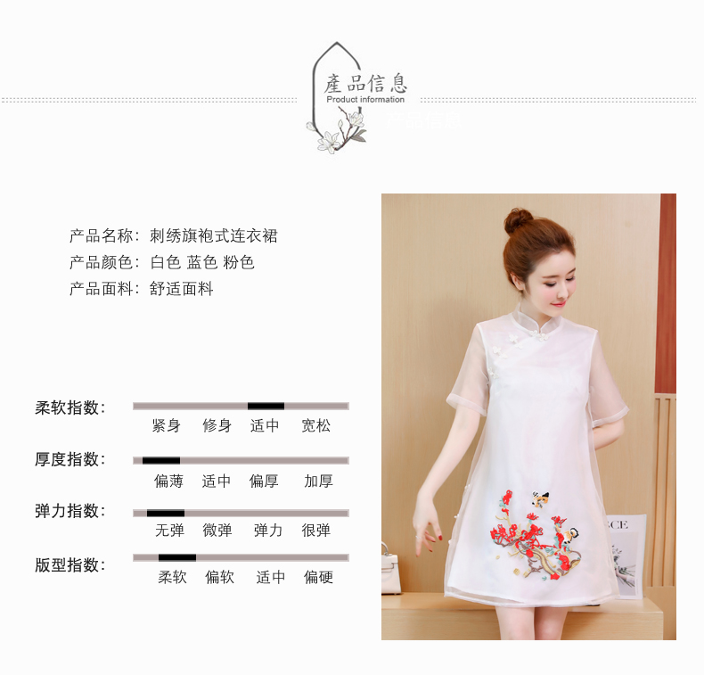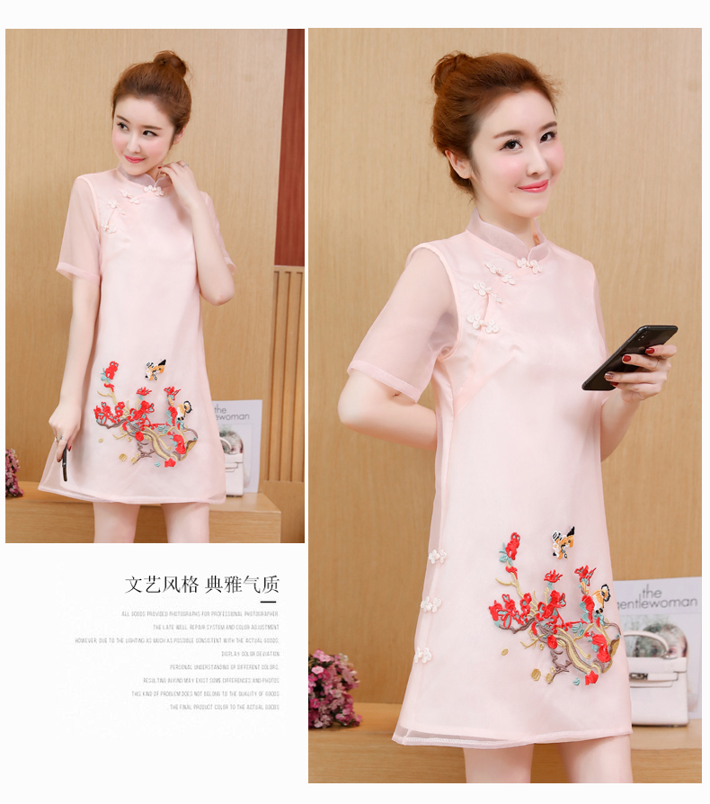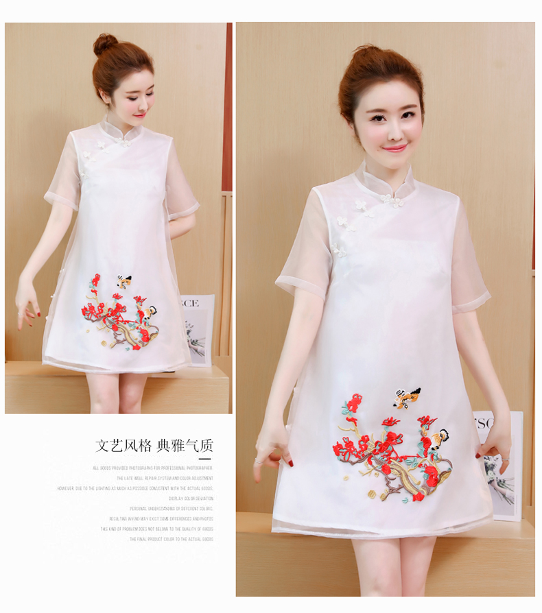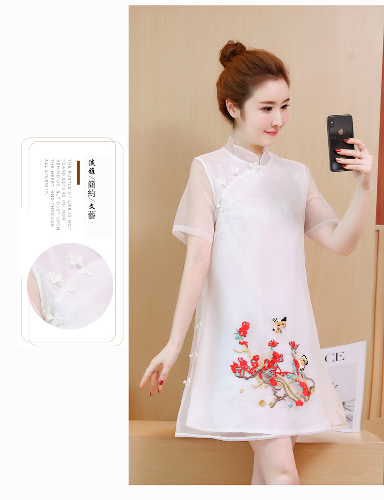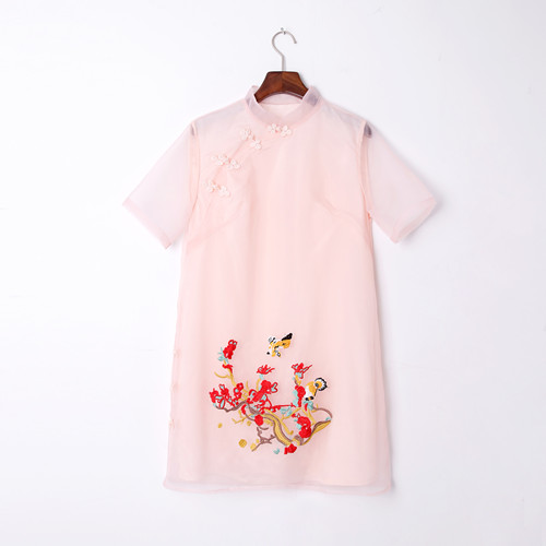 2020夏季新款中國風復古民族風繡花寬松a字裙刺繡改良旗袍連衣裙1入