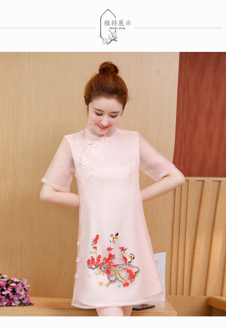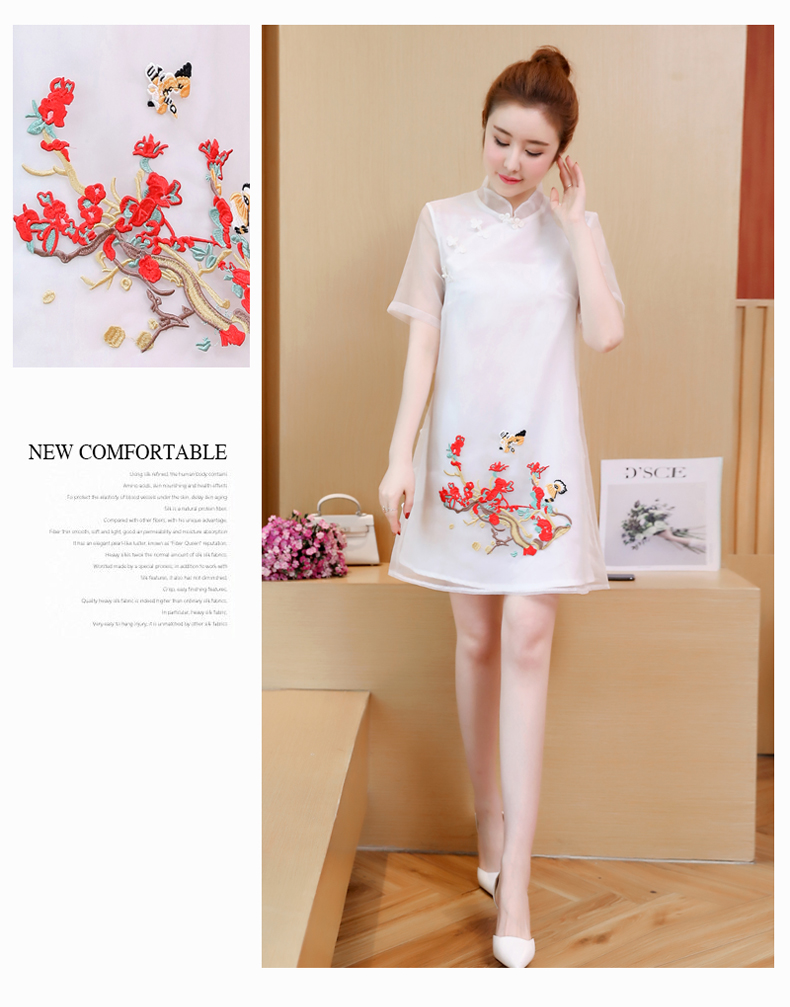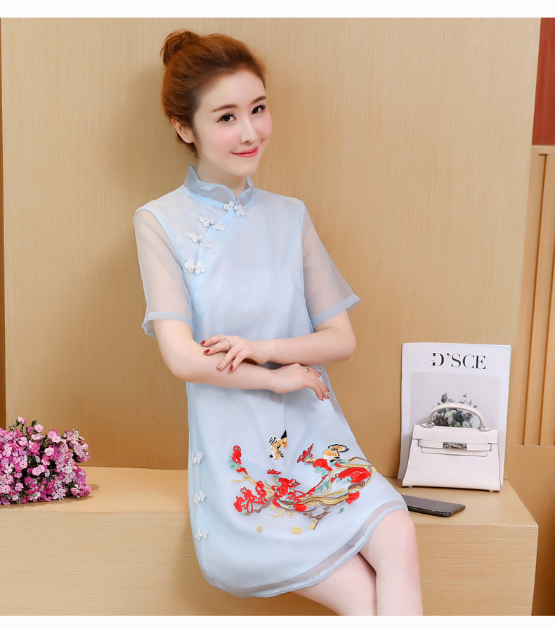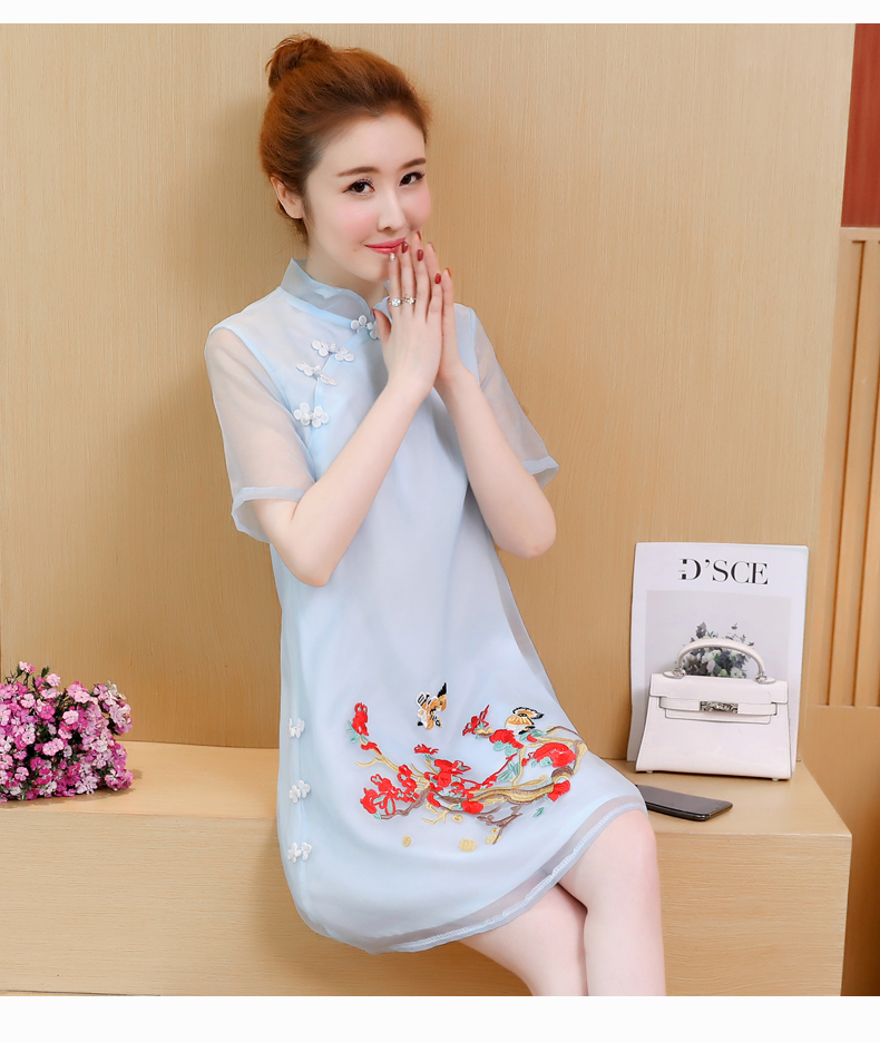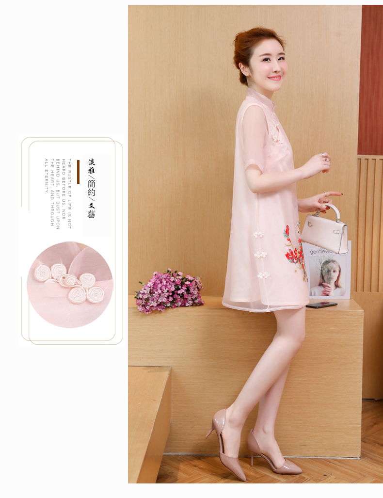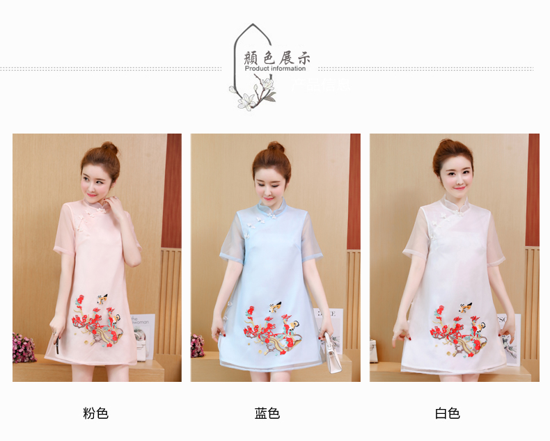 2020夏季新款中國風復古民族風繡花寬松a字裙刺繡改良旗袍連衣裙1入