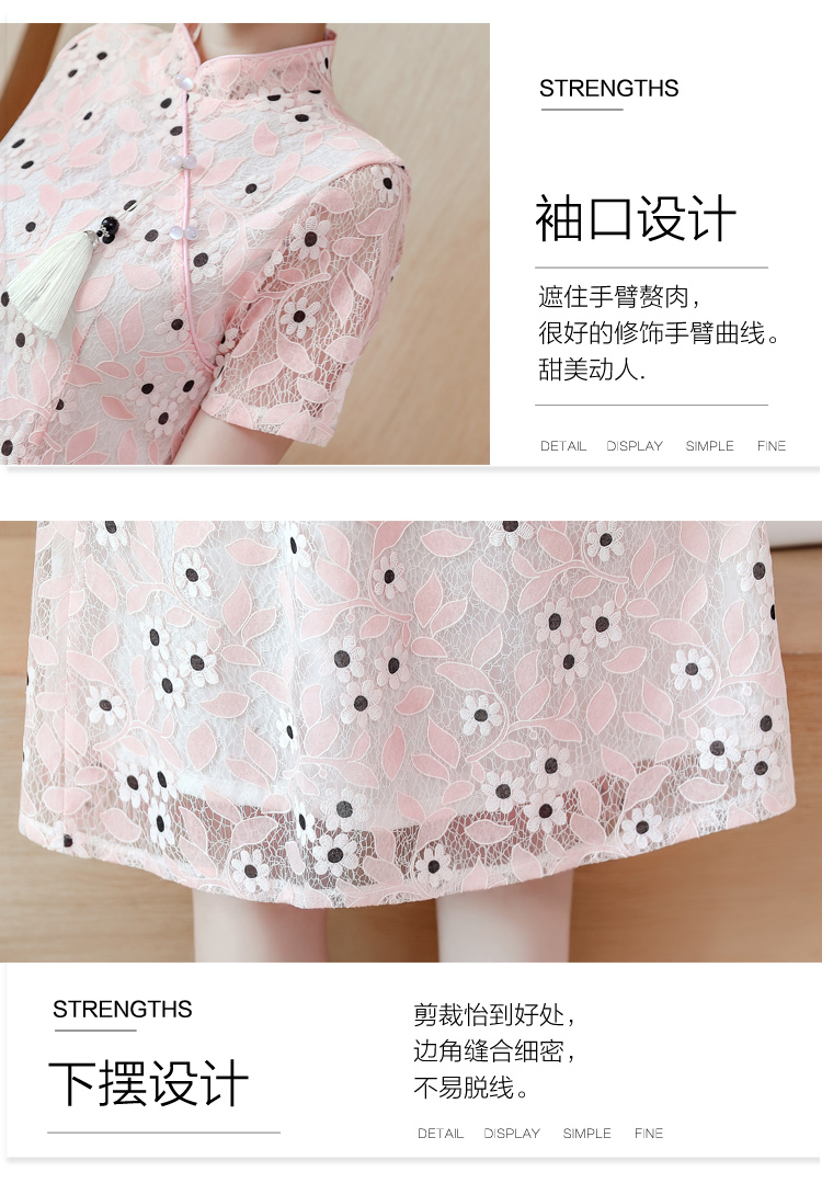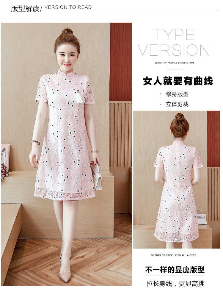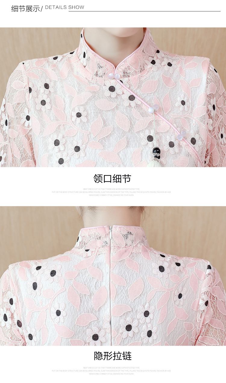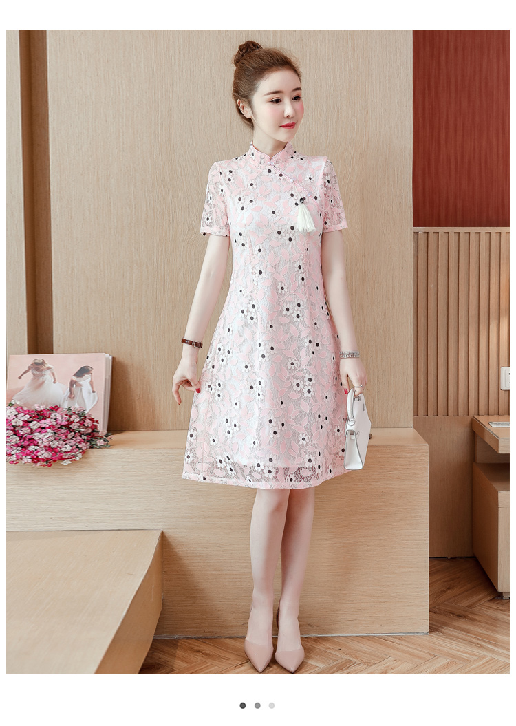 2020夏季新款中國風改良旗袍中長款修身清新小香風蕾絲印花連衣裙1入