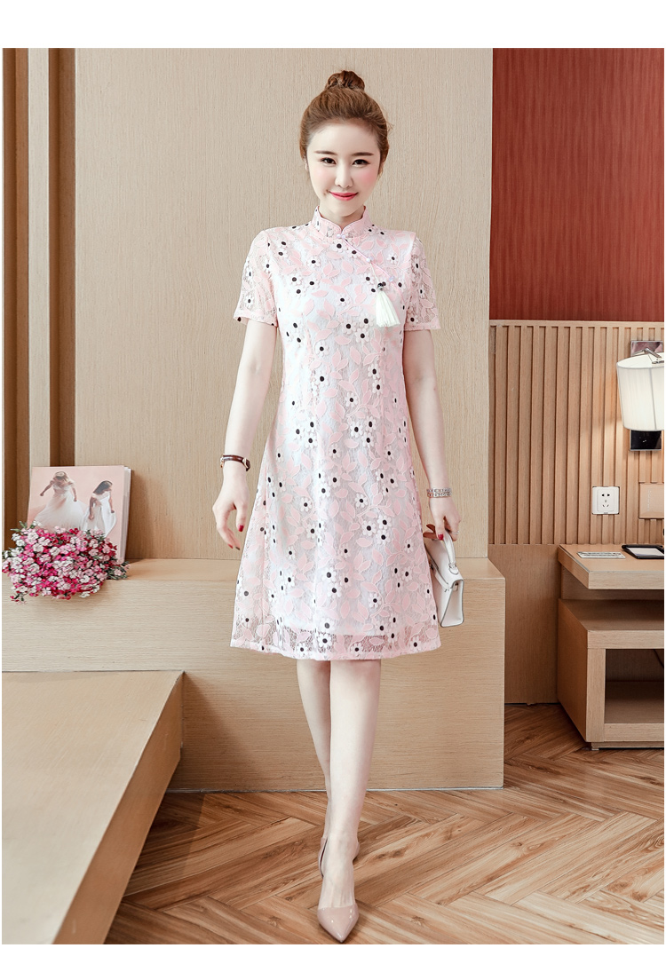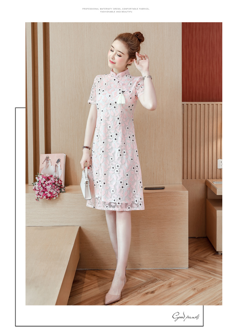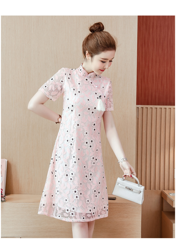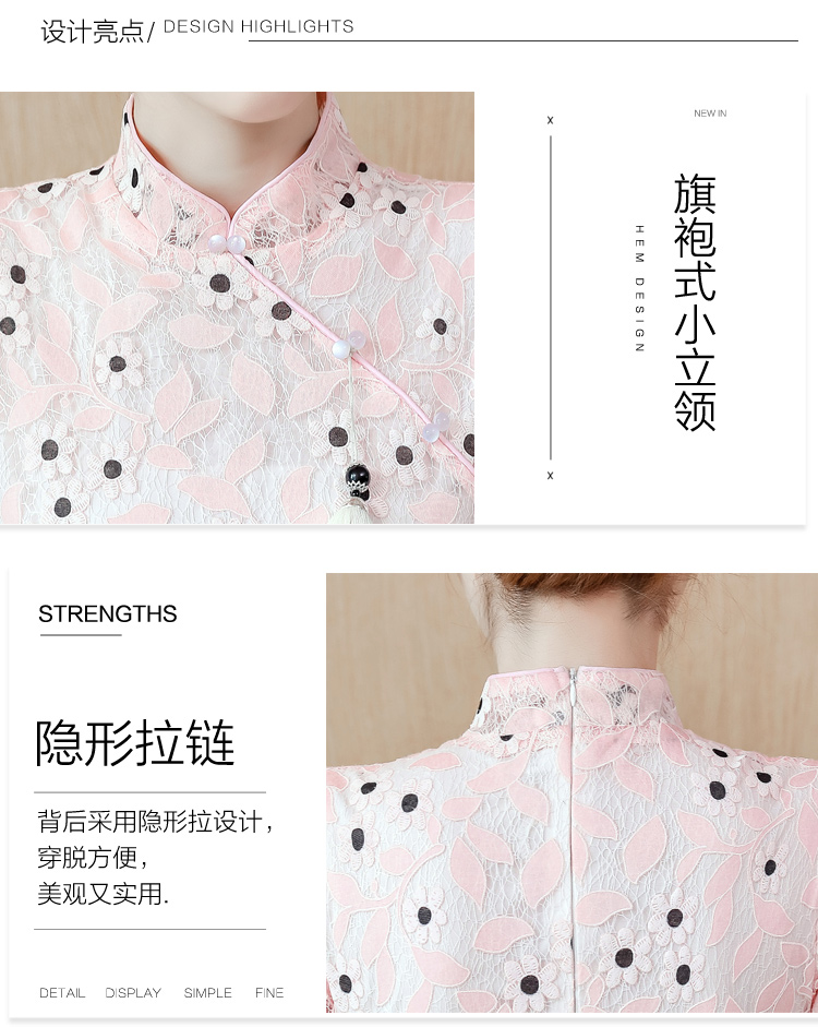 2020夏季新款中國風改良旗袍中長款修身清新小香風蕾絲印花連衣裙1入