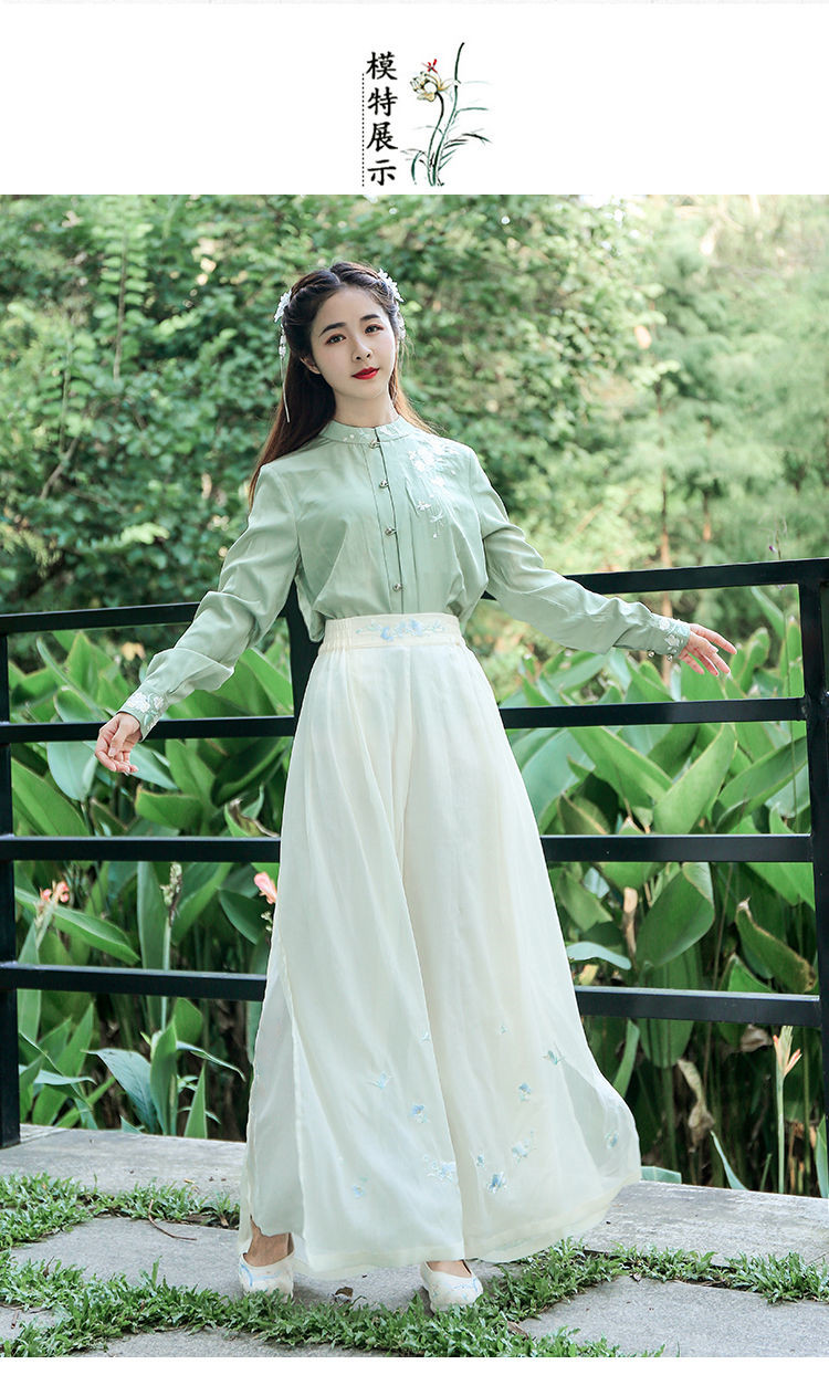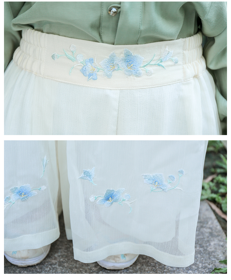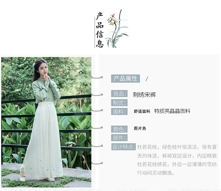 2019秋季新款民族風改良漢服女裝宋褲刺繡復古高腰闊腿褲寬松長褲1入
