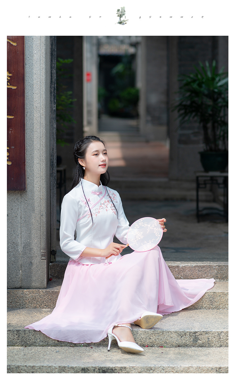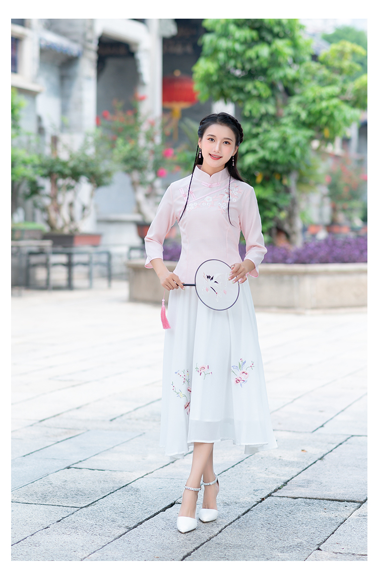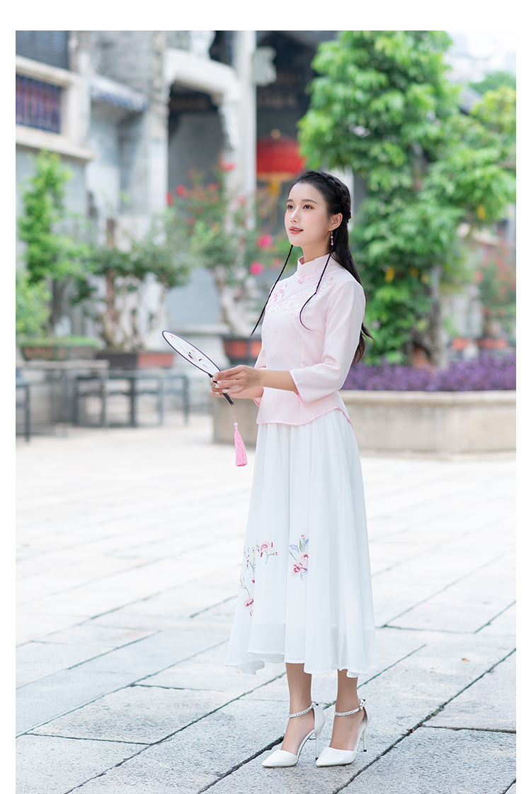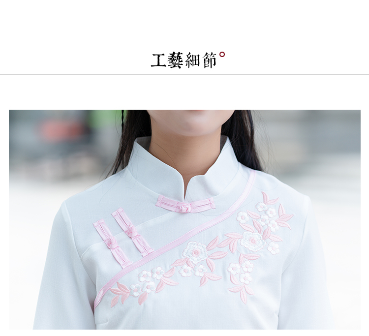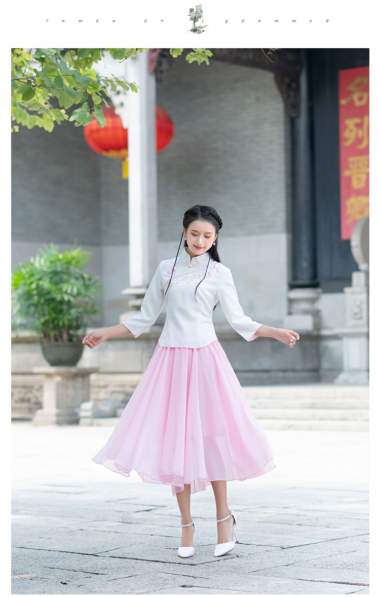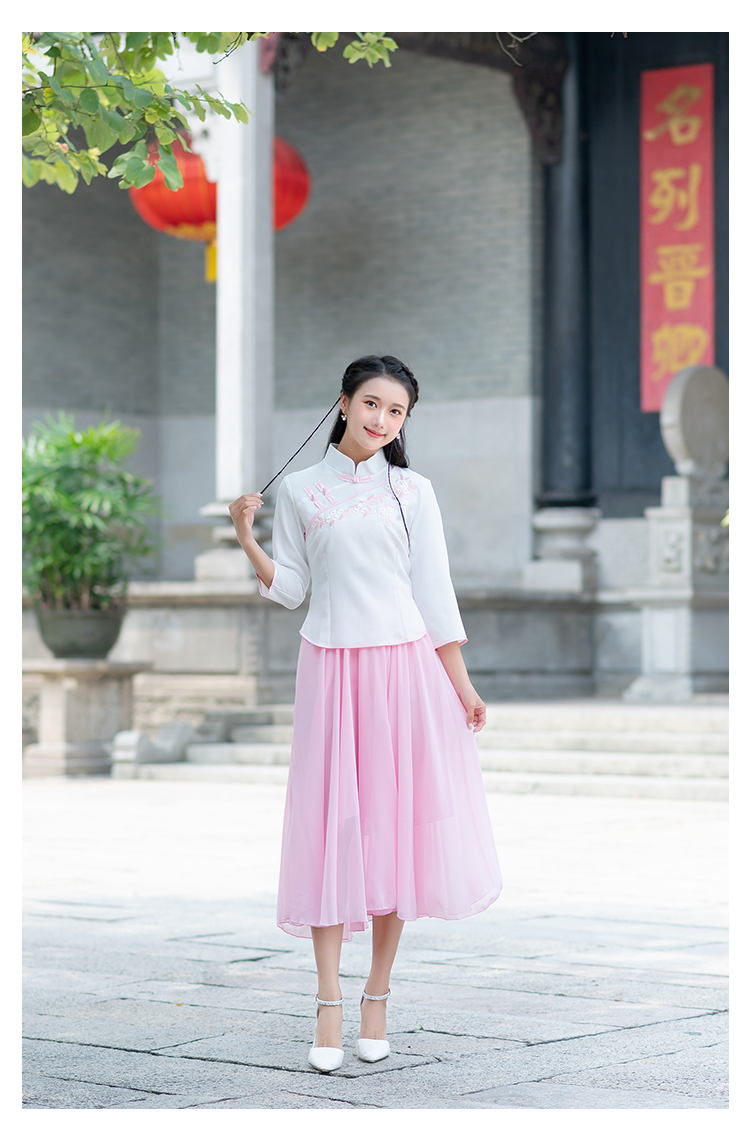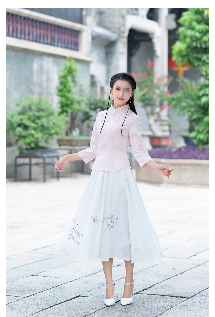 2020夏季新款中國風女學生文藝復古中式盤扣繡花唐裝旗袍襯衫上衣1入