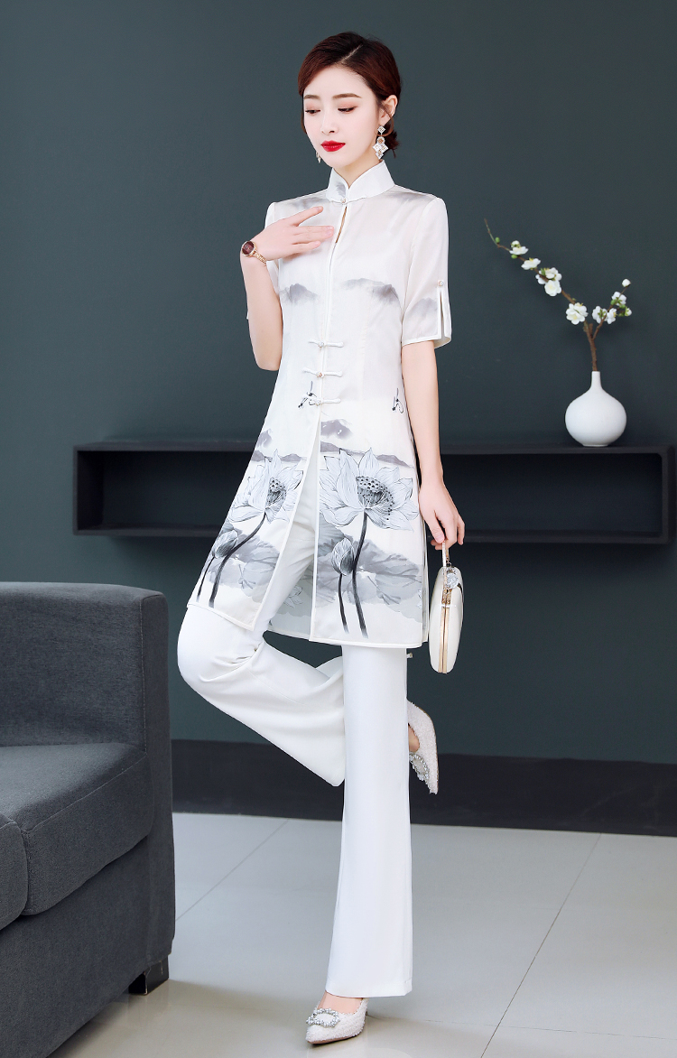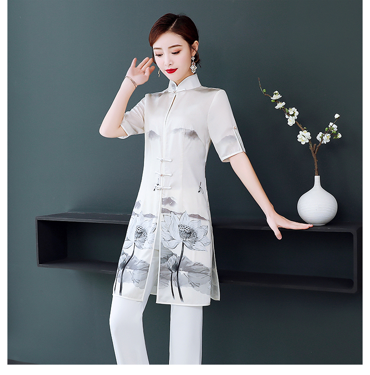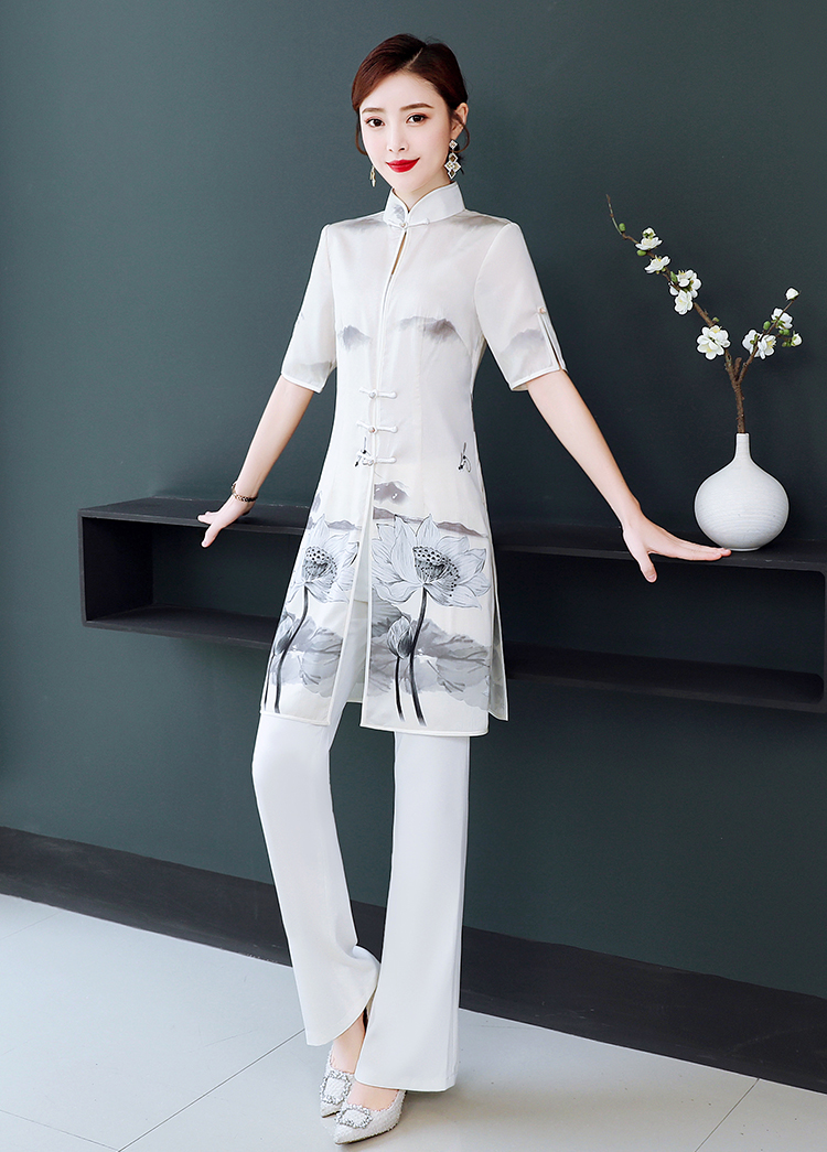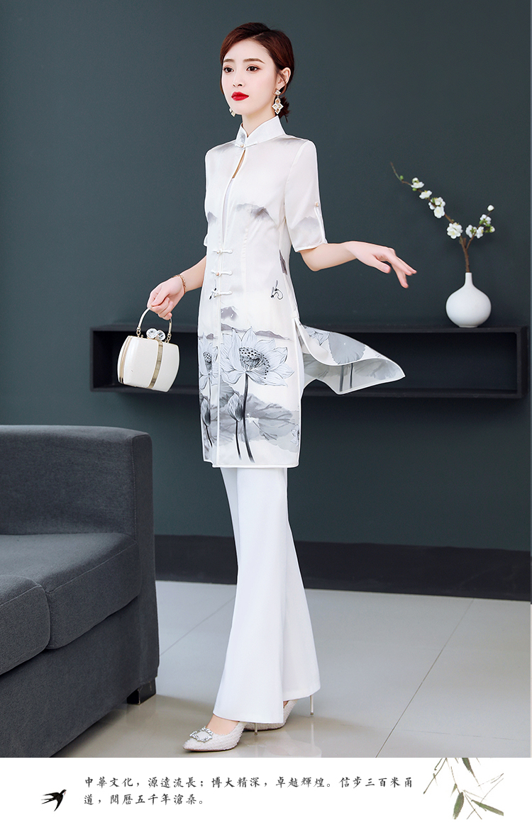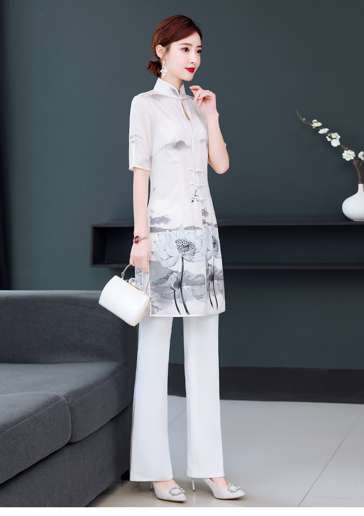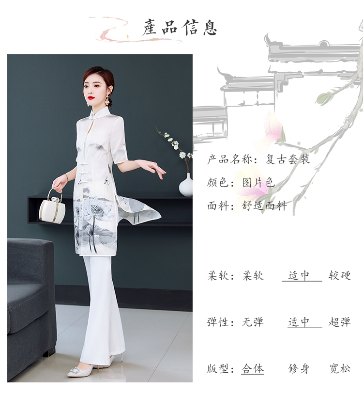 2020夏裝新款新式民國改良版旗袍中國風復古大碼中長款休閑兩件套1入