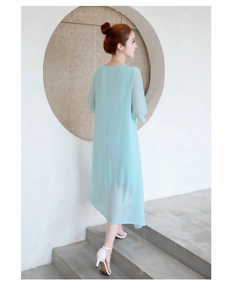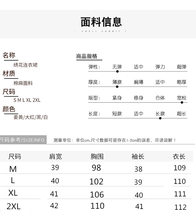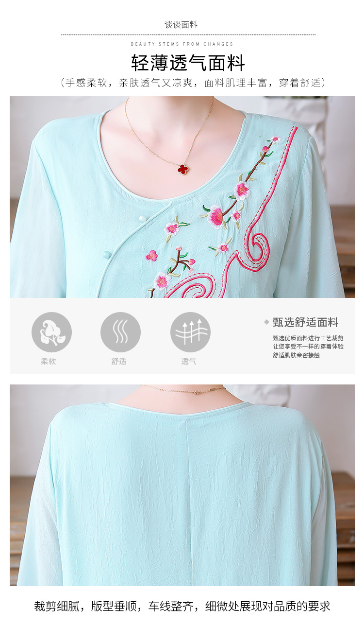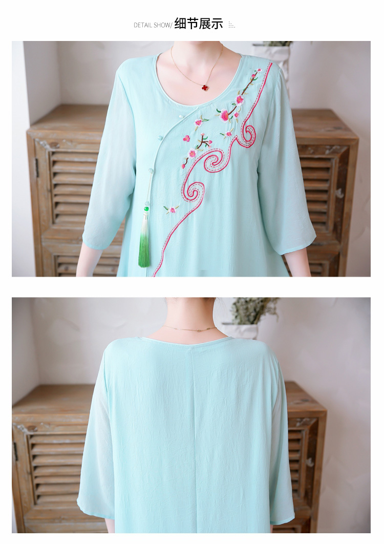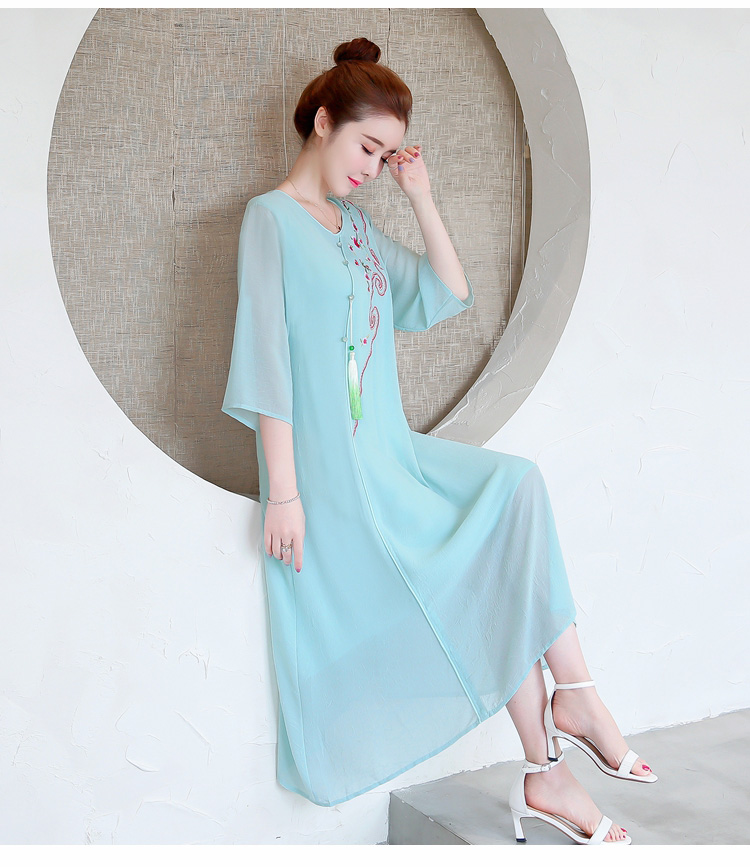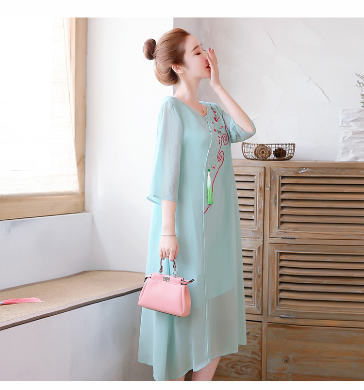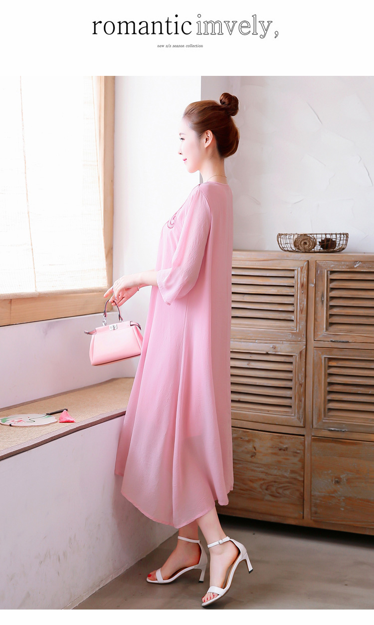 2020夏季新款中國風女學生棉麻連衣裙大碼民族風復古刺繡寬松長裙1入