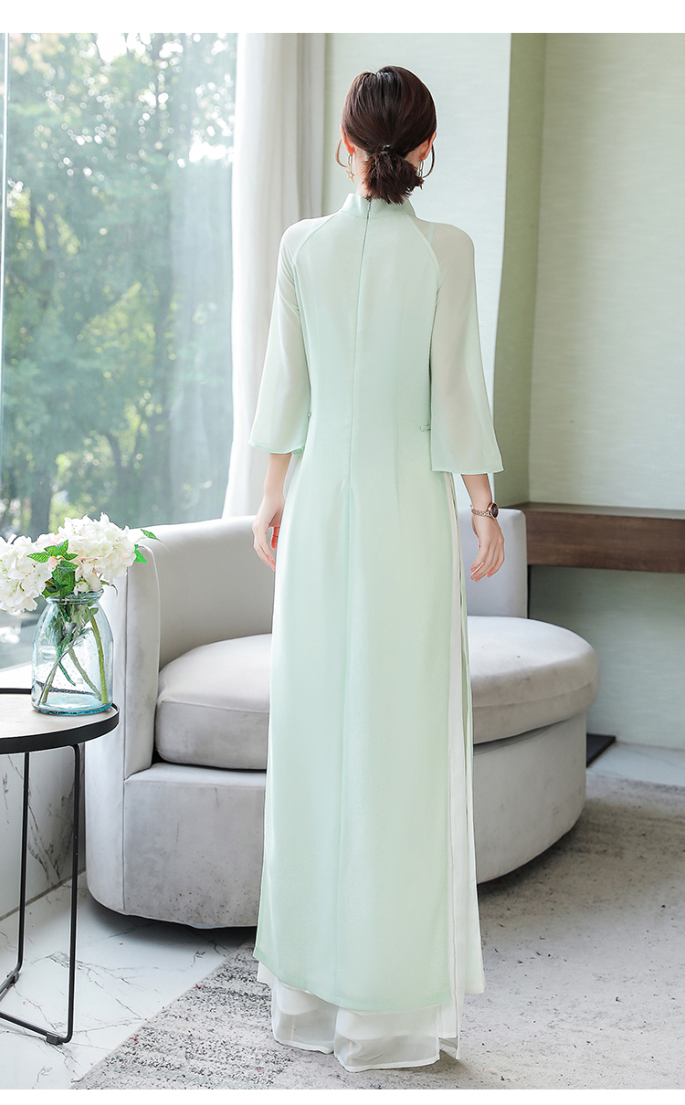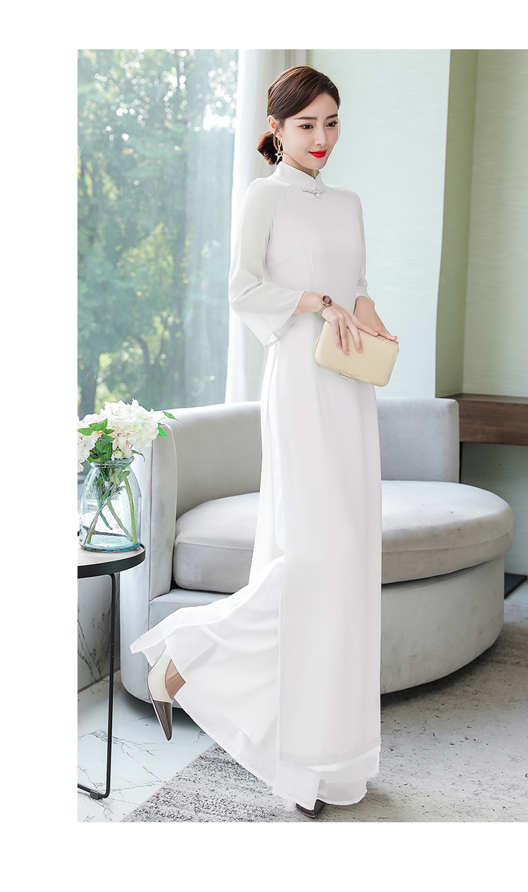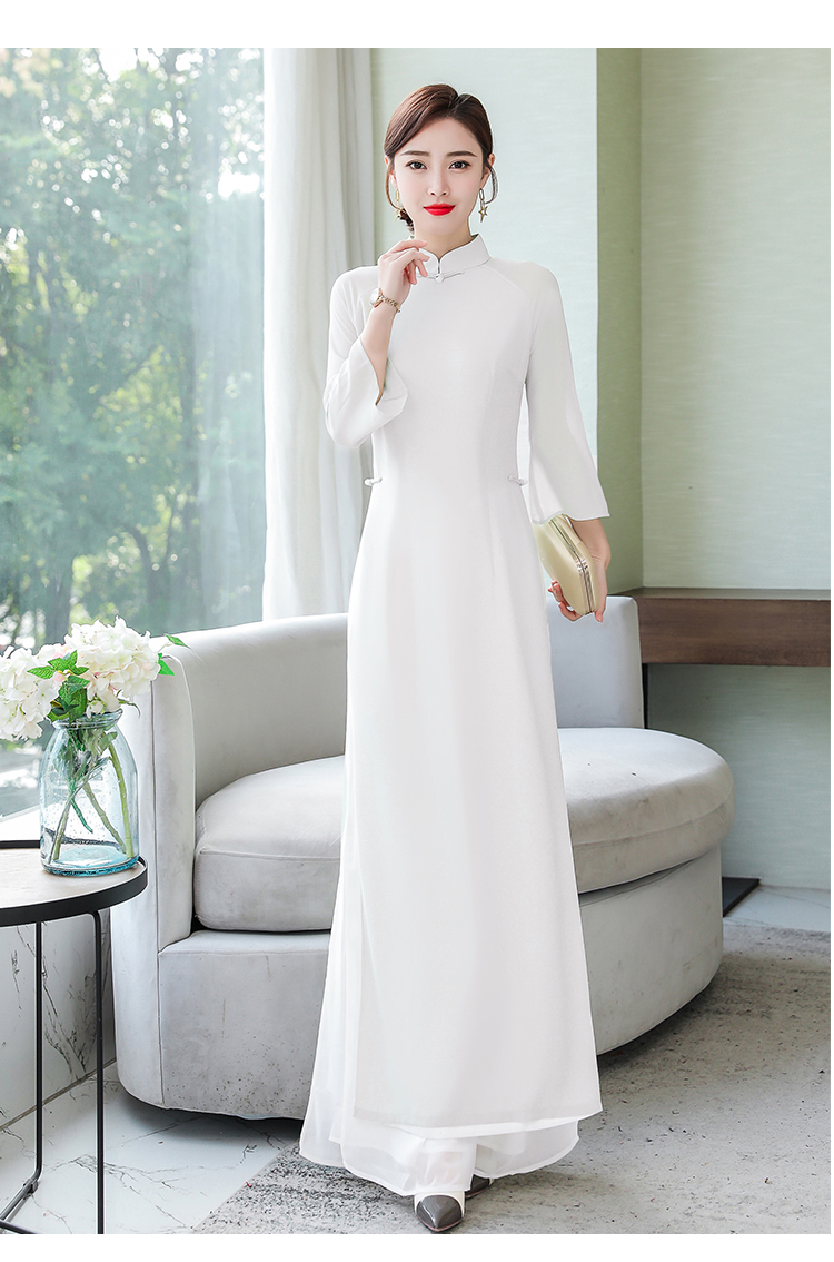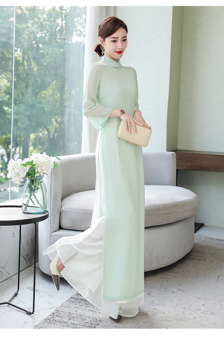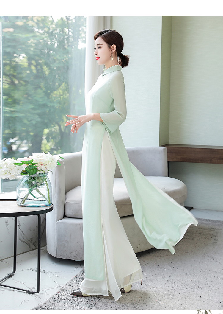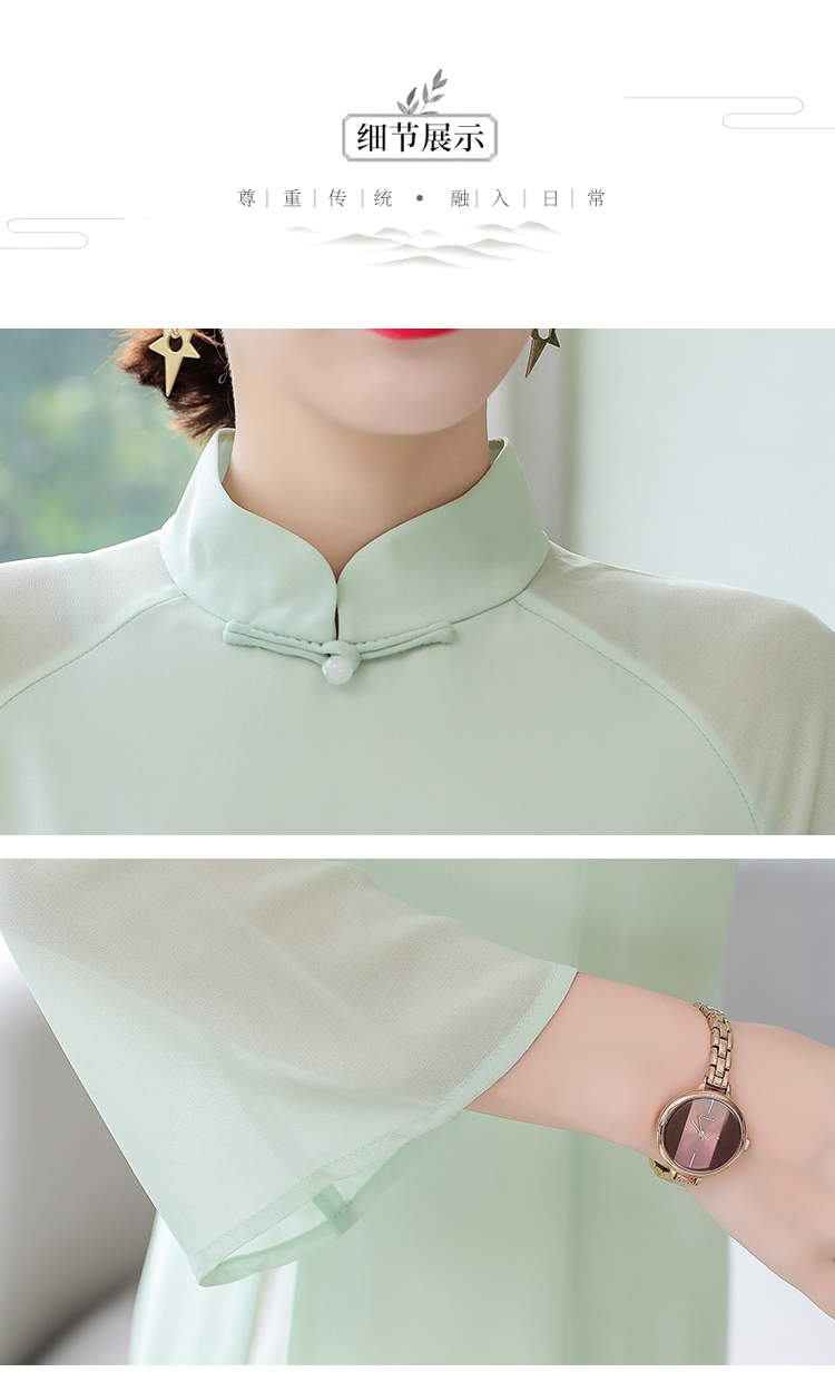2020夏季中國風改良越南奧黛旗袍連衣裙套裝上衣+褲子兩件套茶服1入