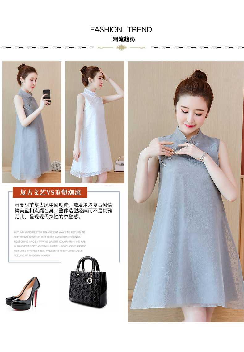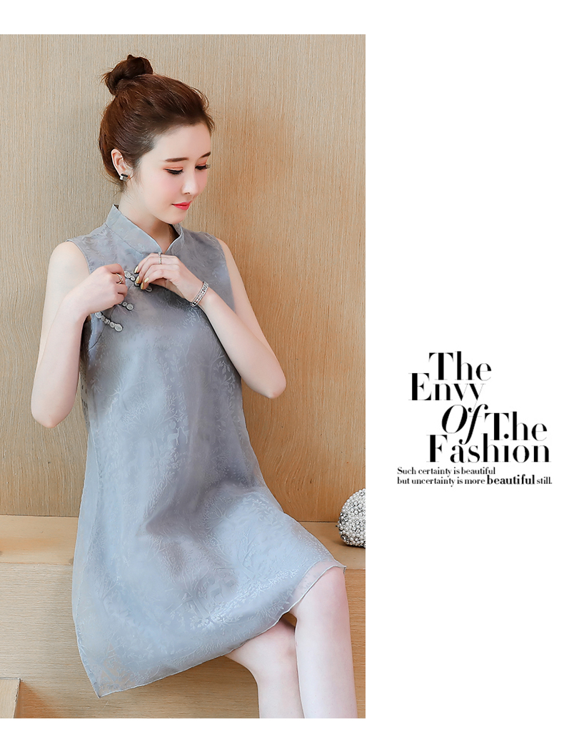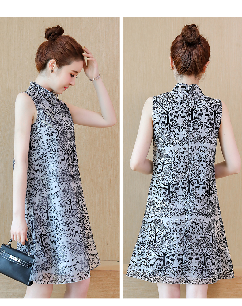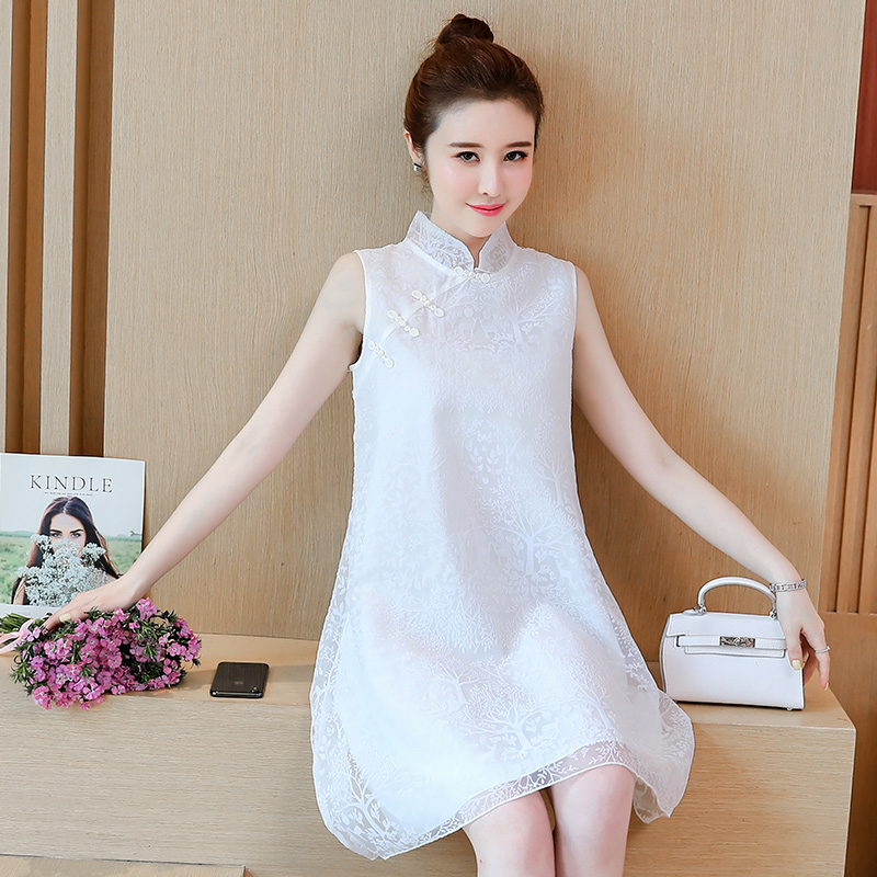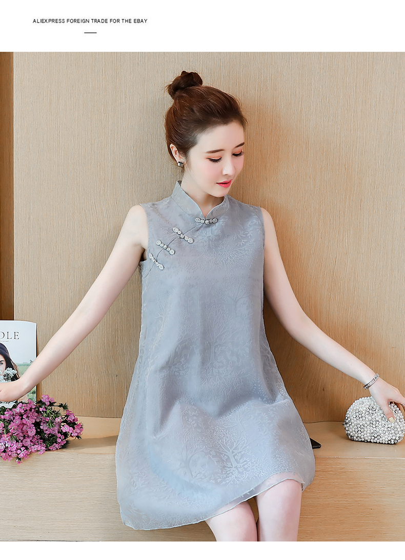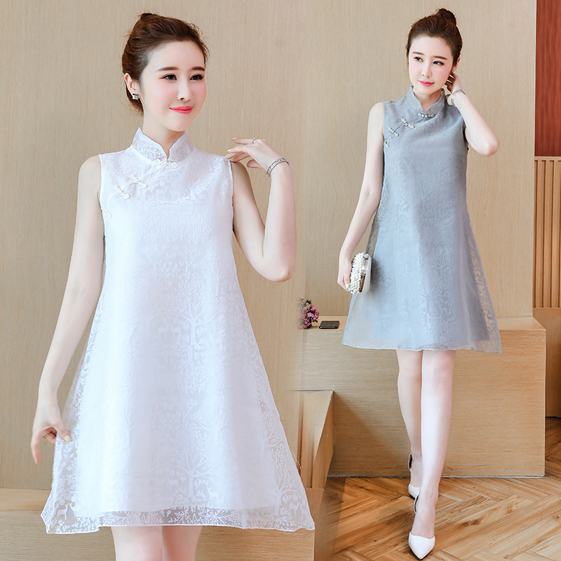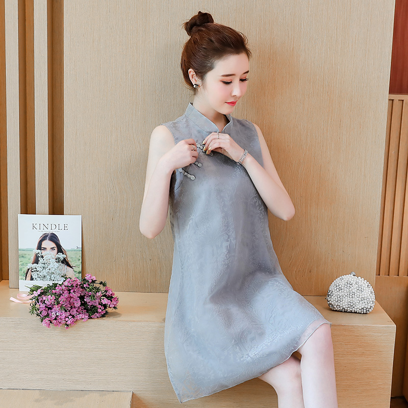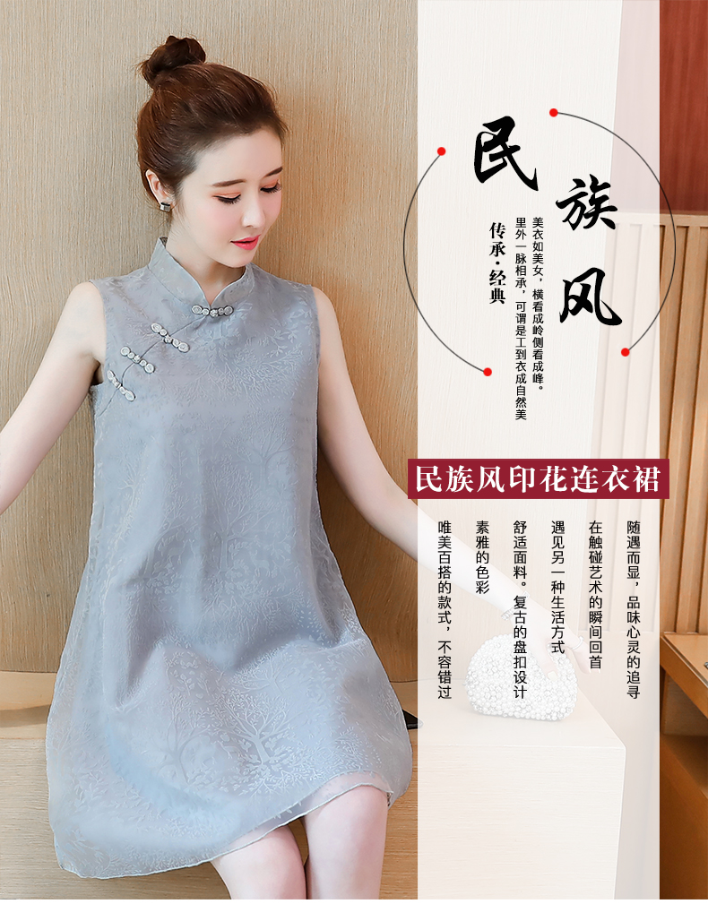 2020夏季中國風文藝日常復古盤扣改良旗袍年輕款少女大碼連衣裙子1入