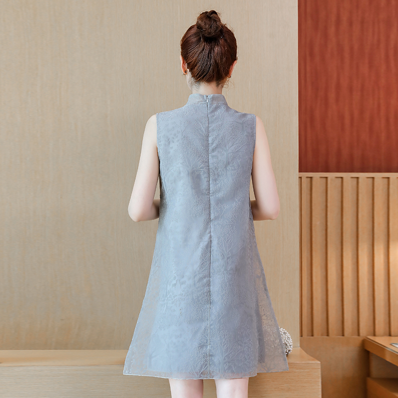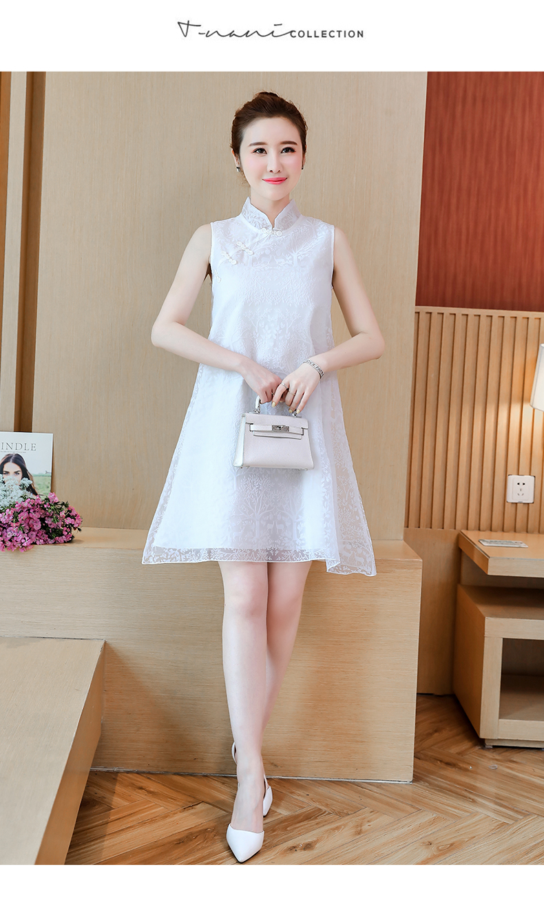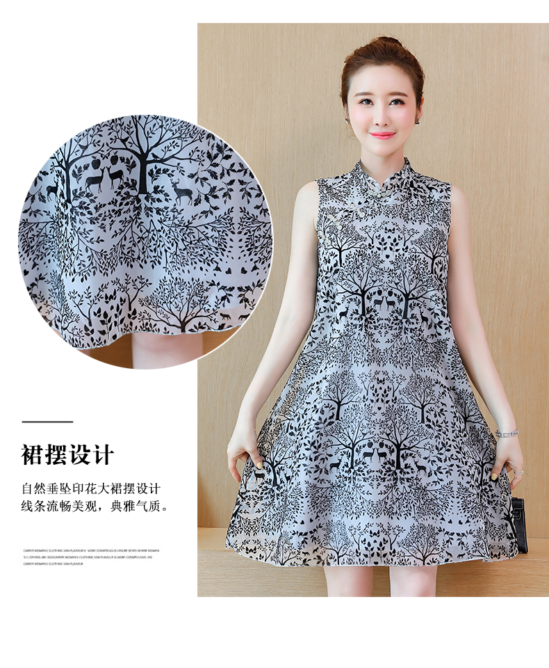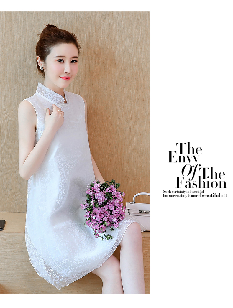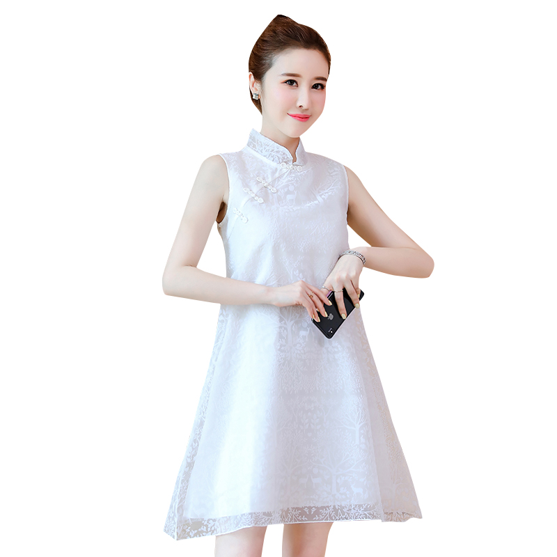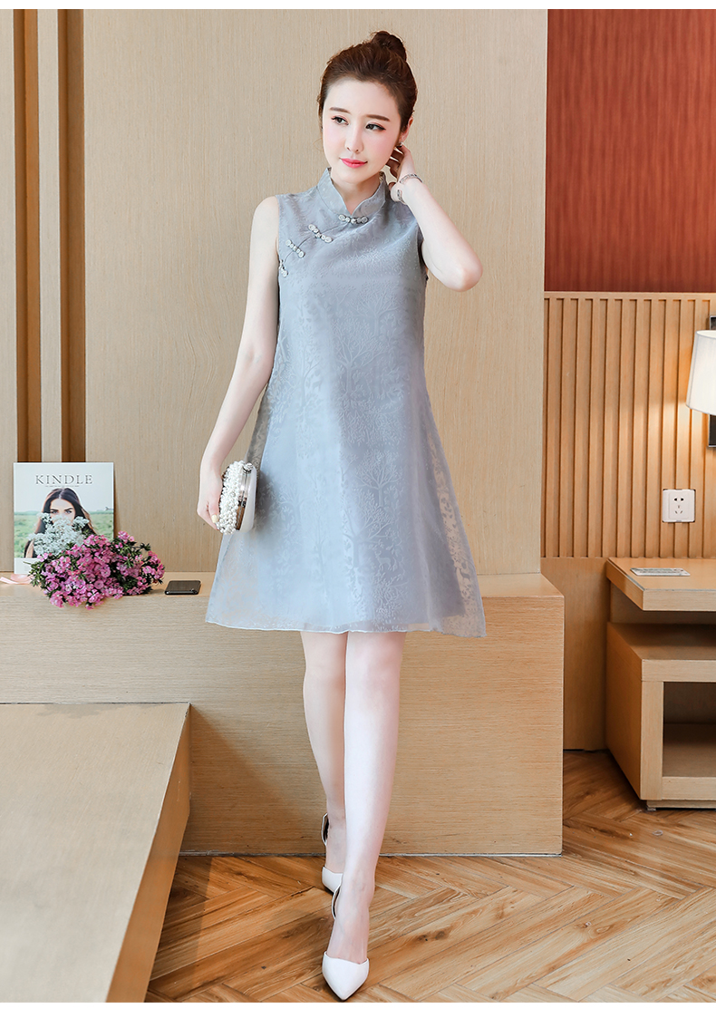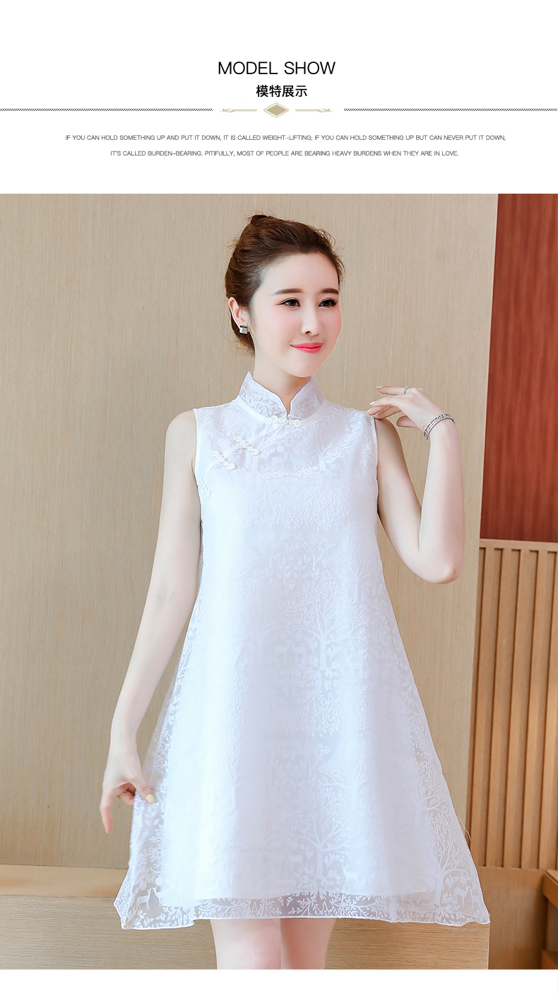 2020夏季中國風文藝日常復古盤扣改良旗袍年輕款少女大碼連衣裙子1入