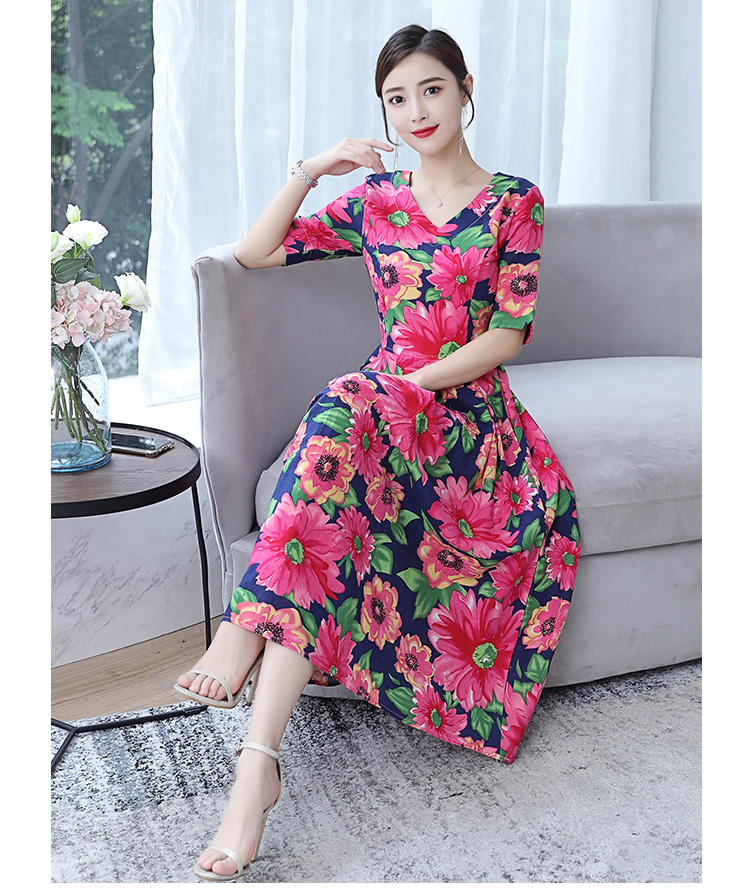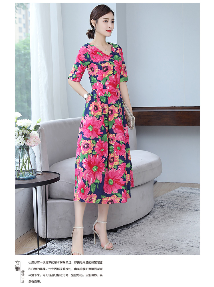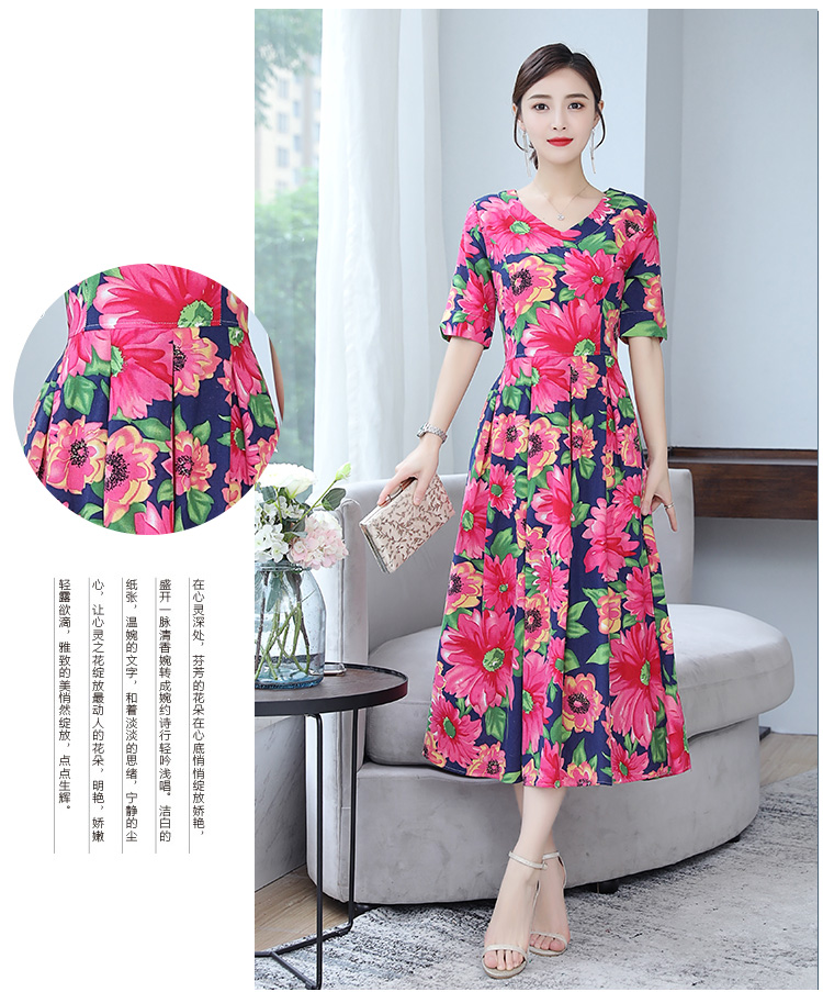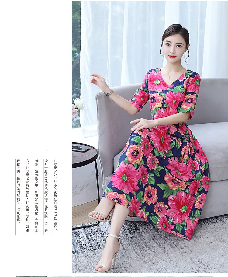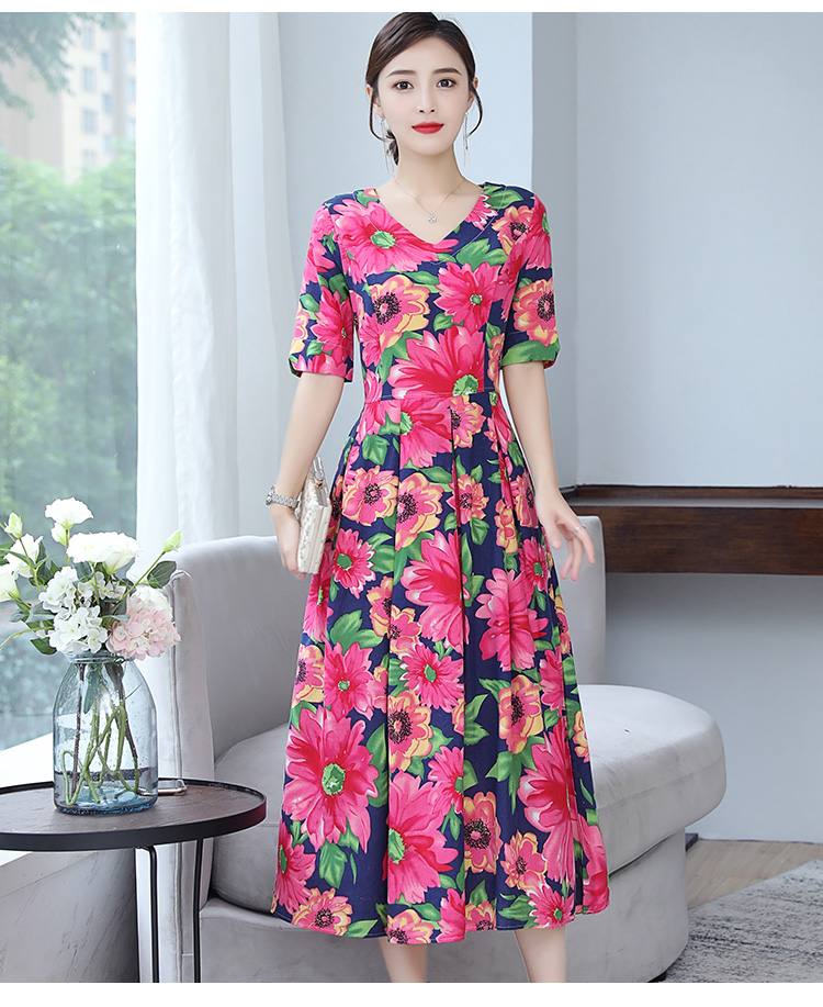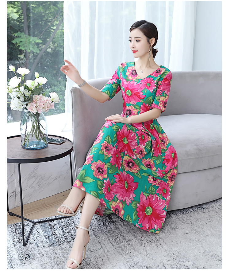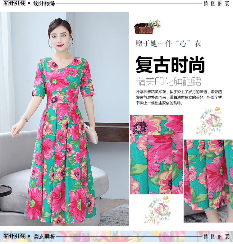 2020夏季新款中國風復古民族風短袖棉麻連衣裙大碼修身顯瘦長裙子1入