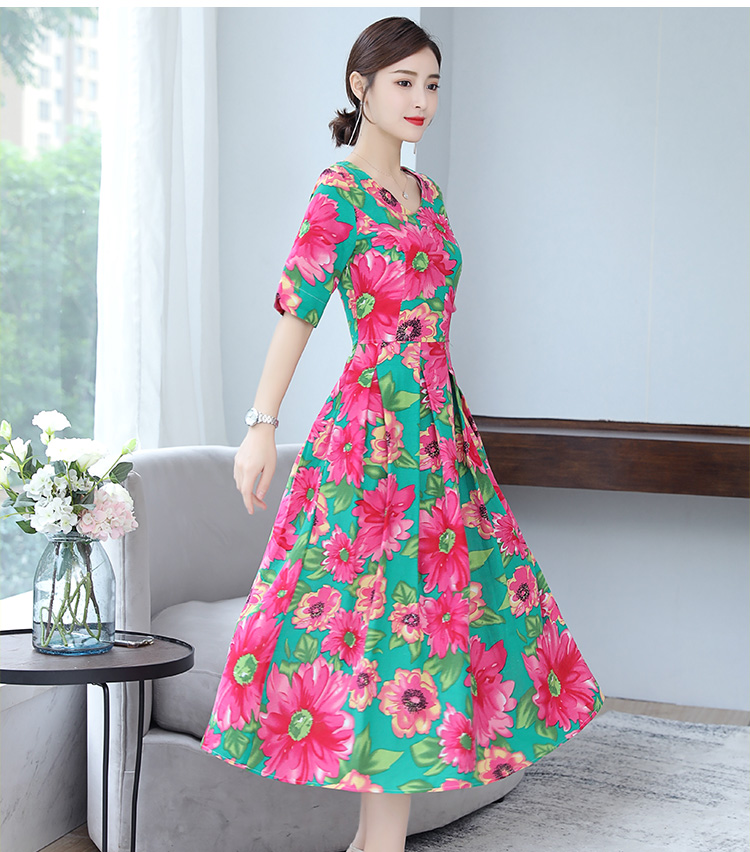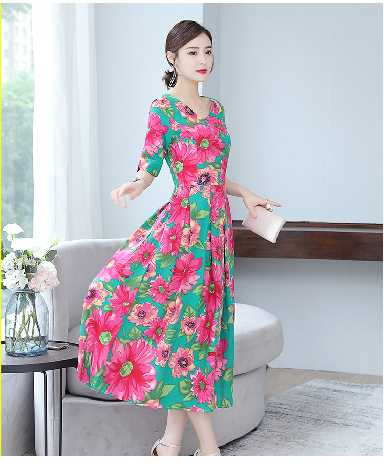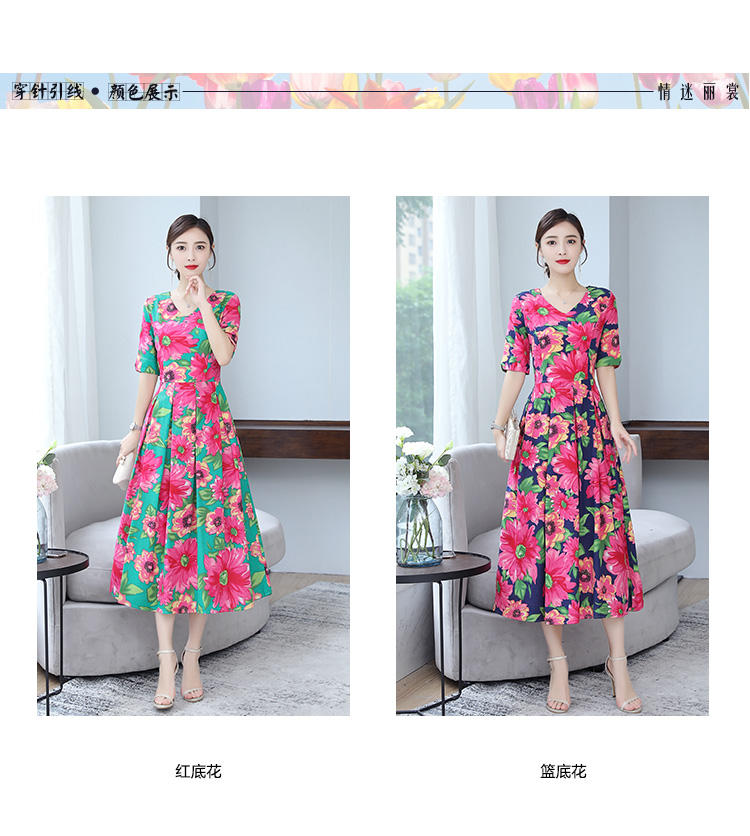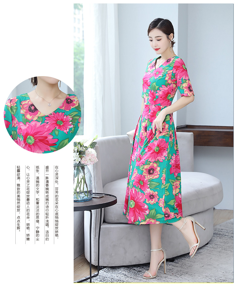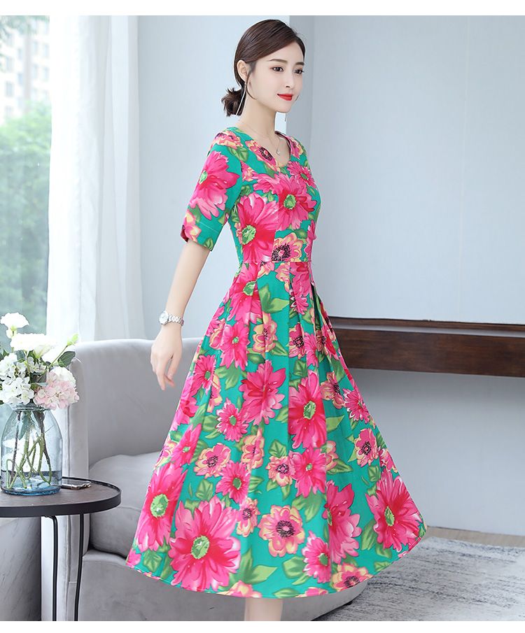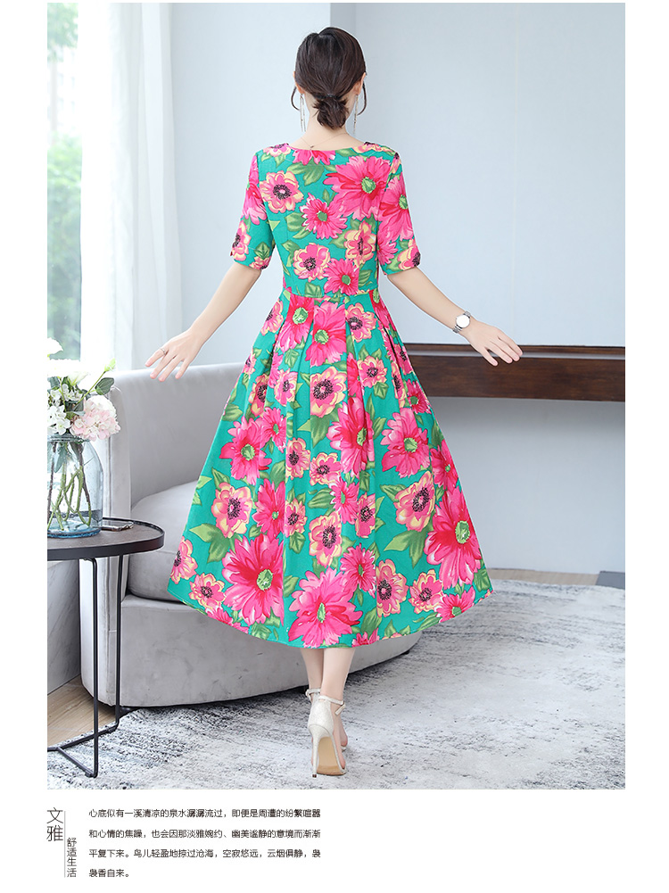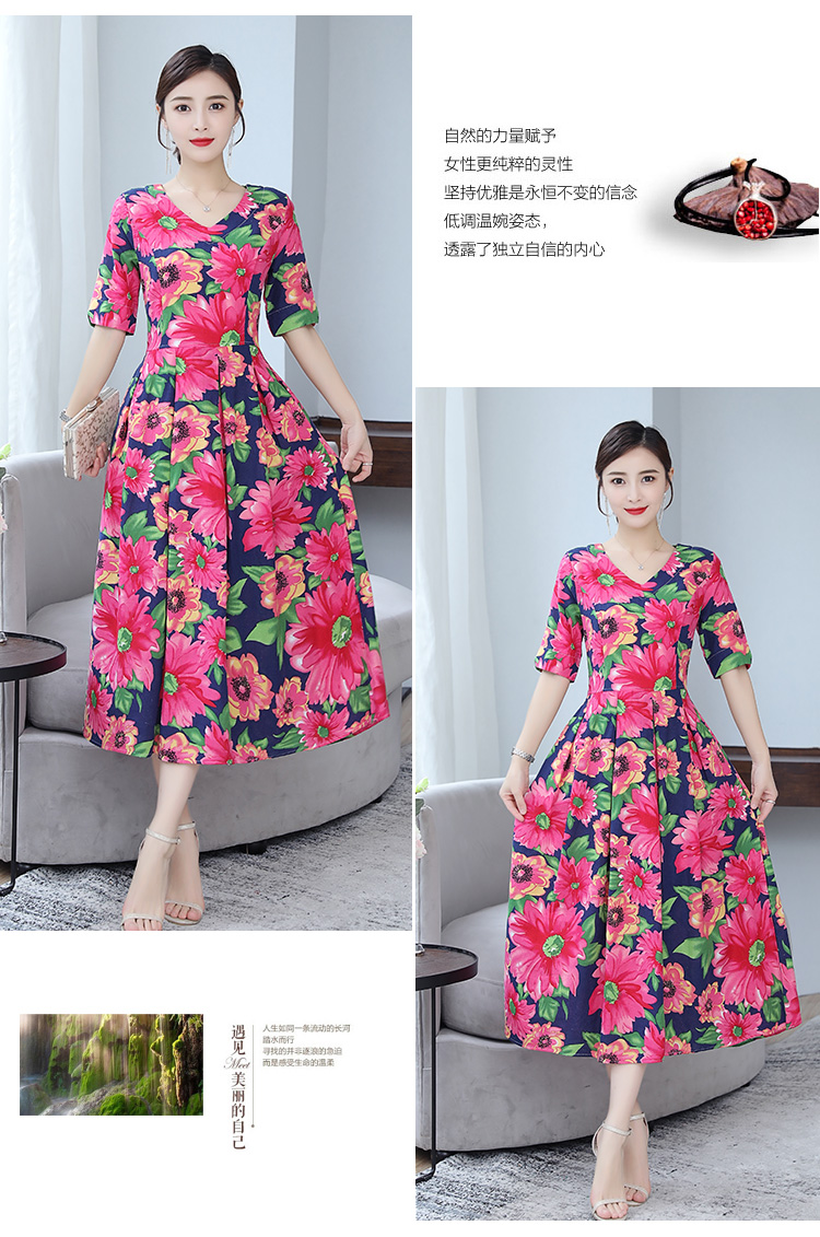 2020夏季新款中國風復古民族風短袖棉麻連衣裙大碼修身顯瘦長裙子1入