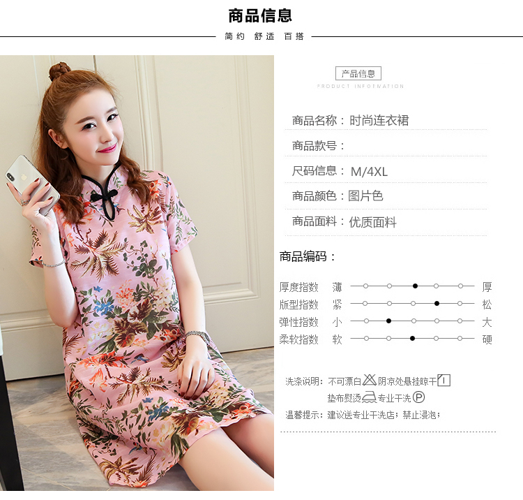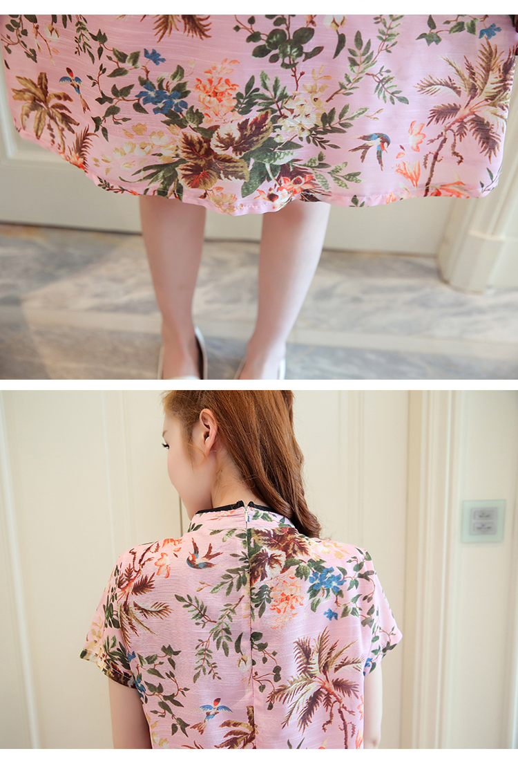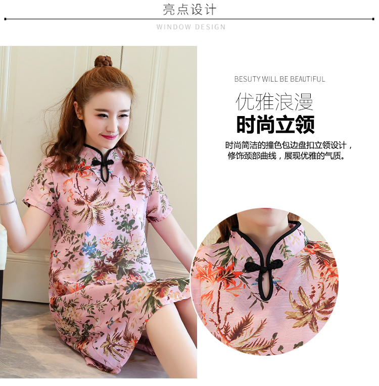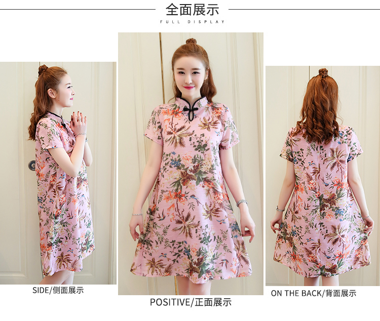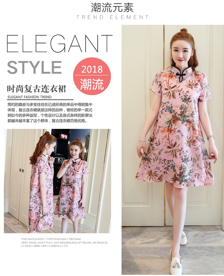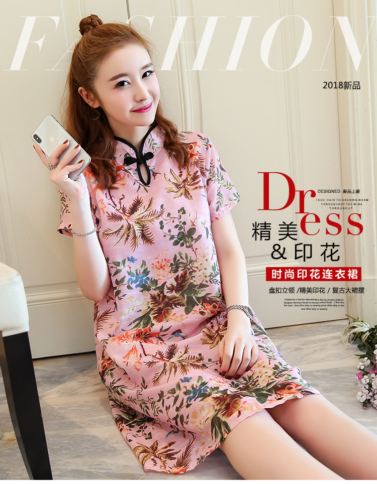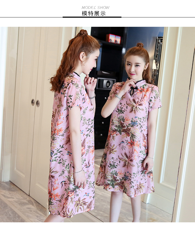 2020夏裝新款中國風大碼女裝少女寬松改良旗袍印花雪紡連衣裙顯瘦1入