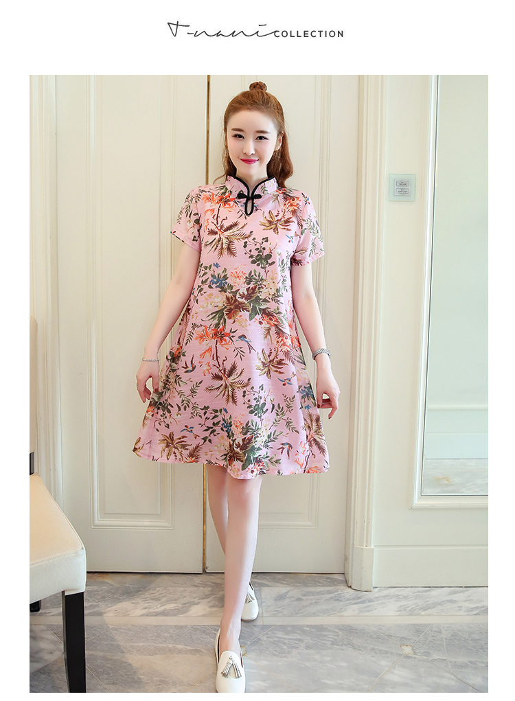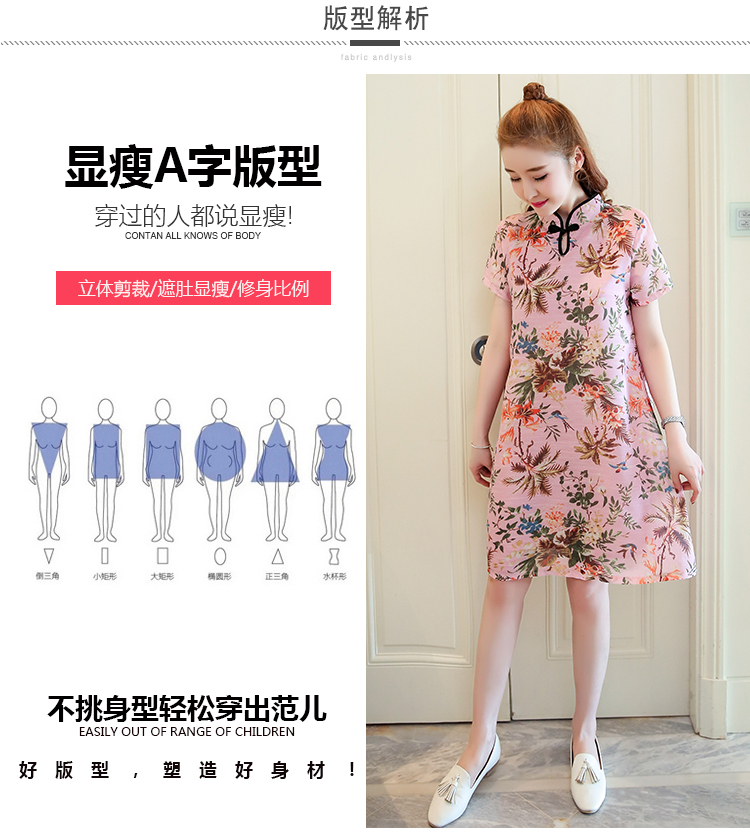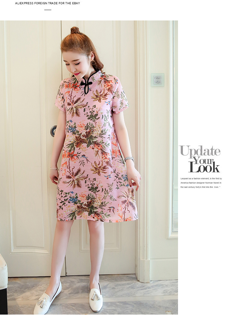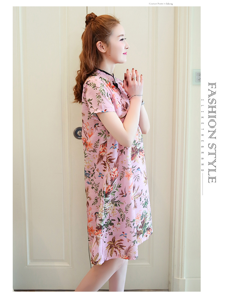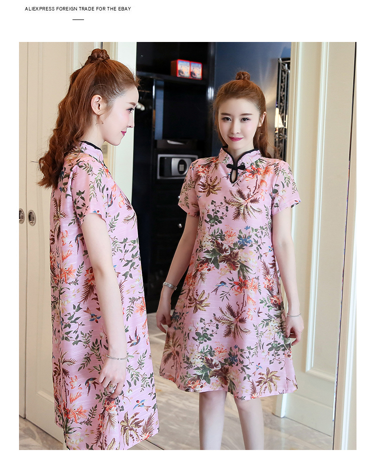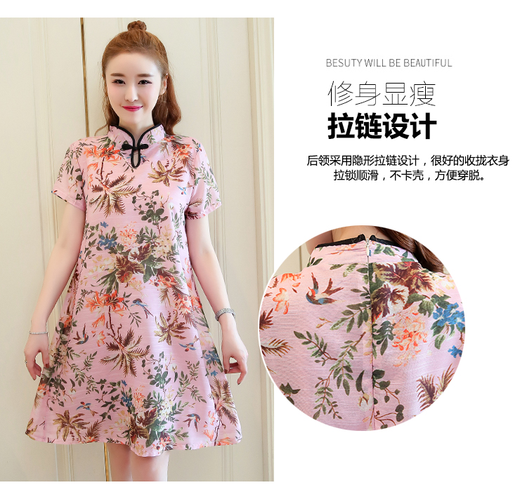 2020夏裝新款中國風大碼女裝少女寬松改良旗袍印花雪紡連衣裙顯瘦1入