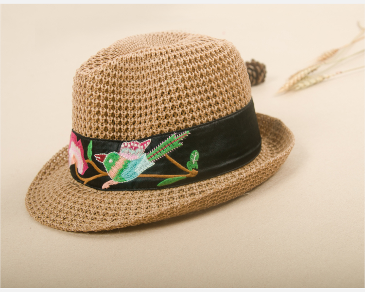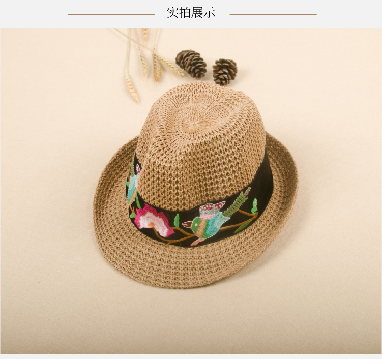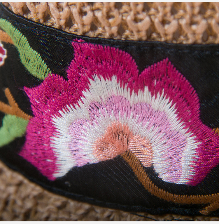 2020夏天民族風女裝旅游度假草帽子貼布精美刺繡遮陽帽女士沙灘帽1入
