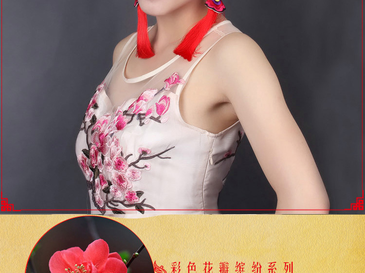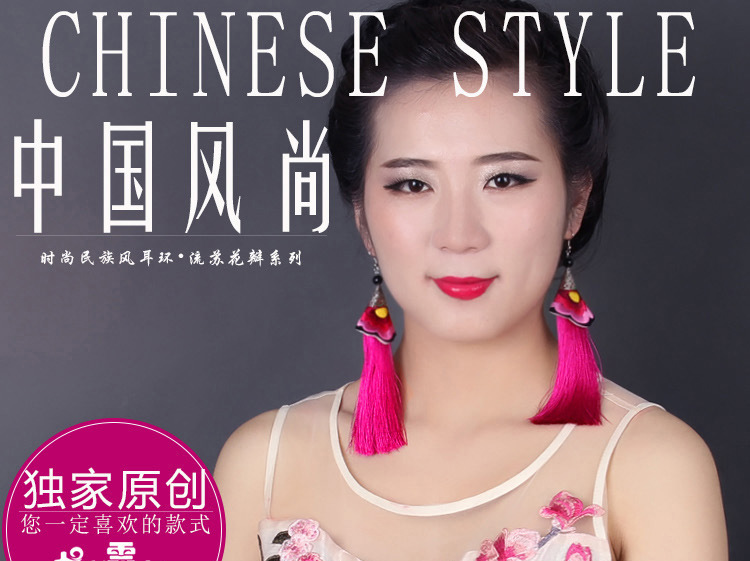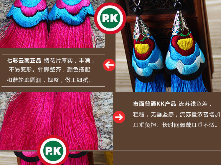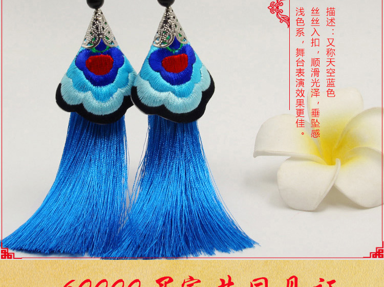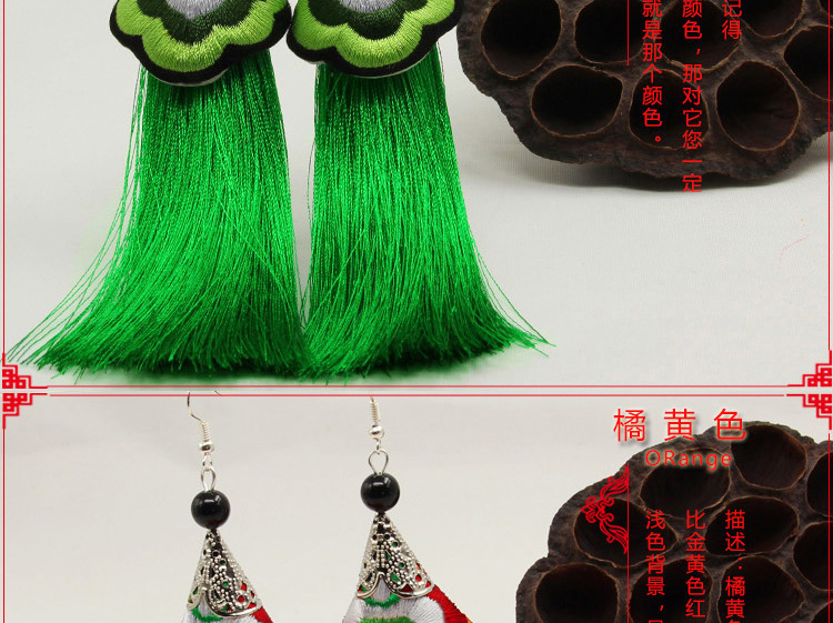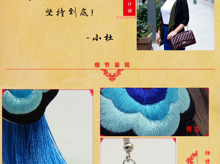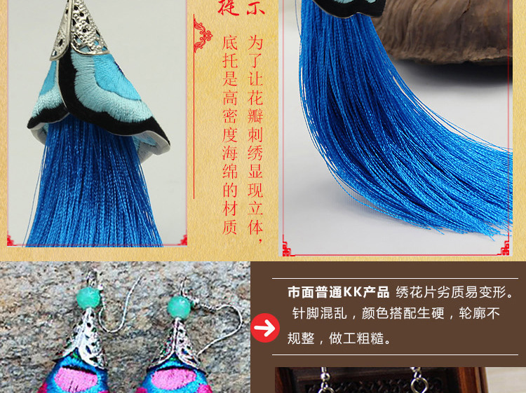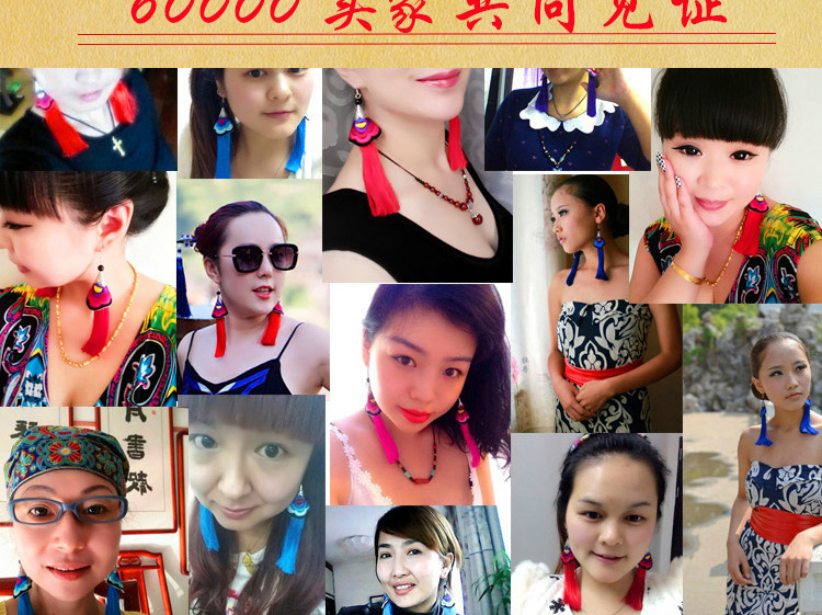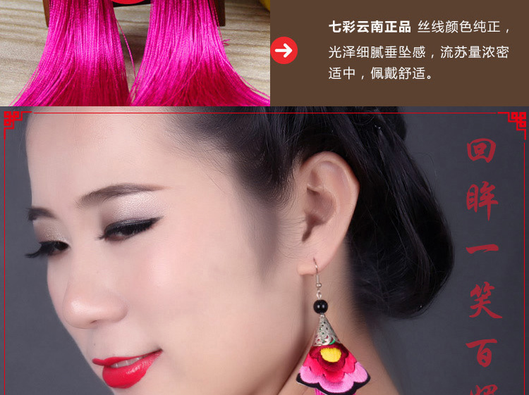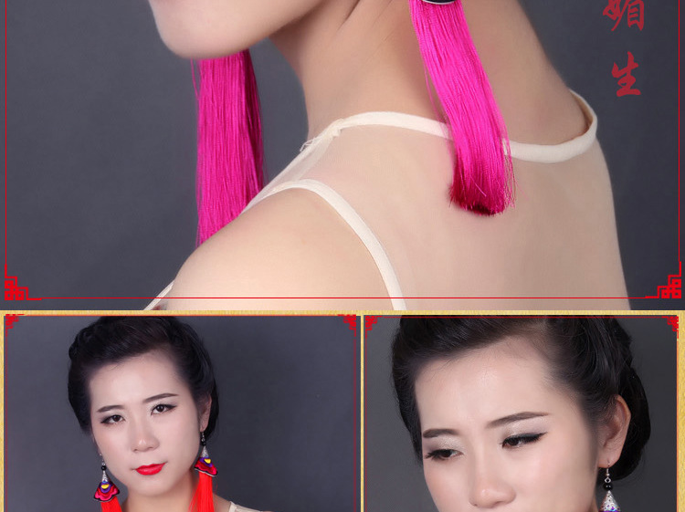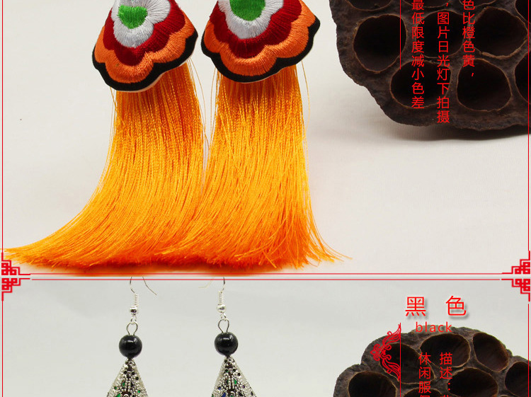 2019新款民族風女裝配飾復古苗銀繡花流失拼接耳環長款女士飾品1入