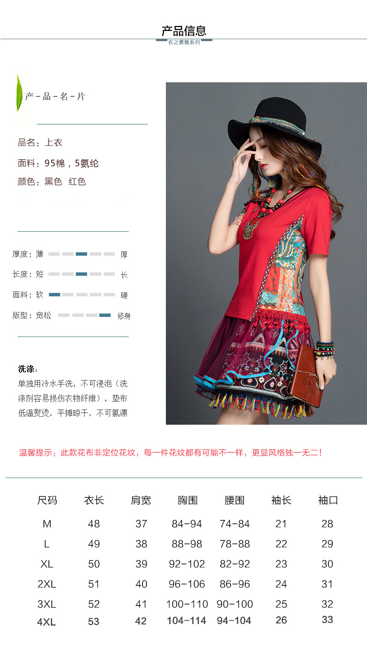 2020夏季原創民族風女裝T恤鏤空顯瘦修身短袖T恤復古文藝氣質上衣1入