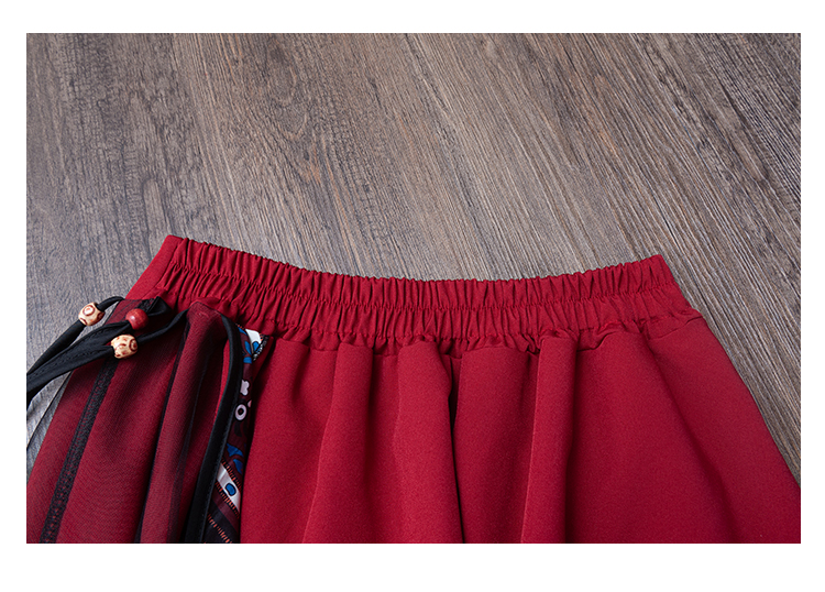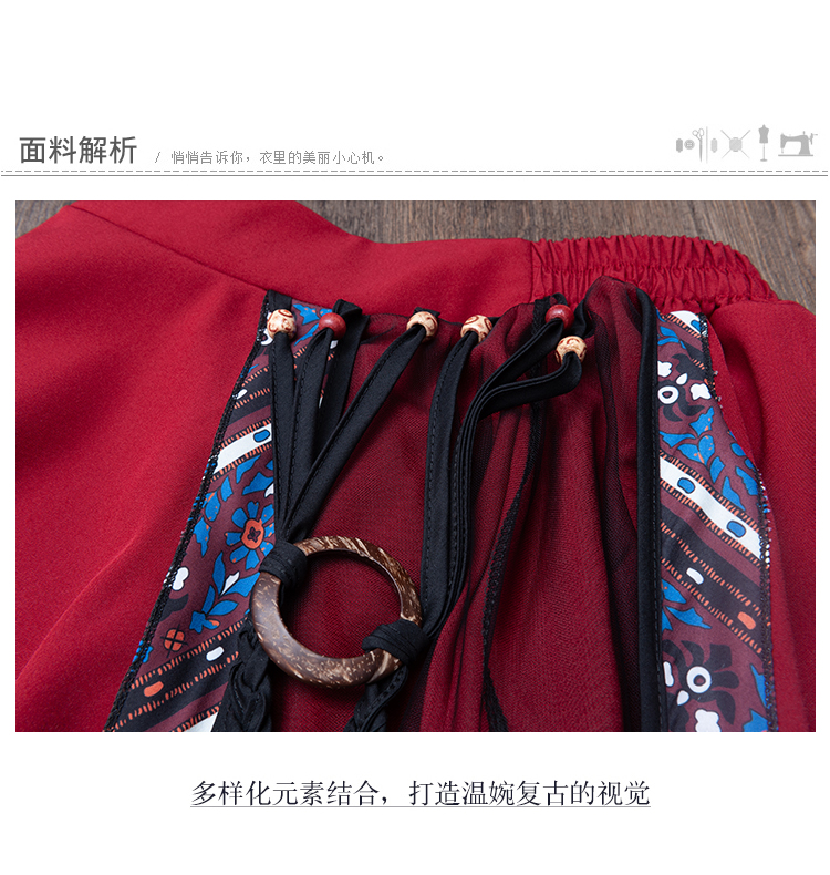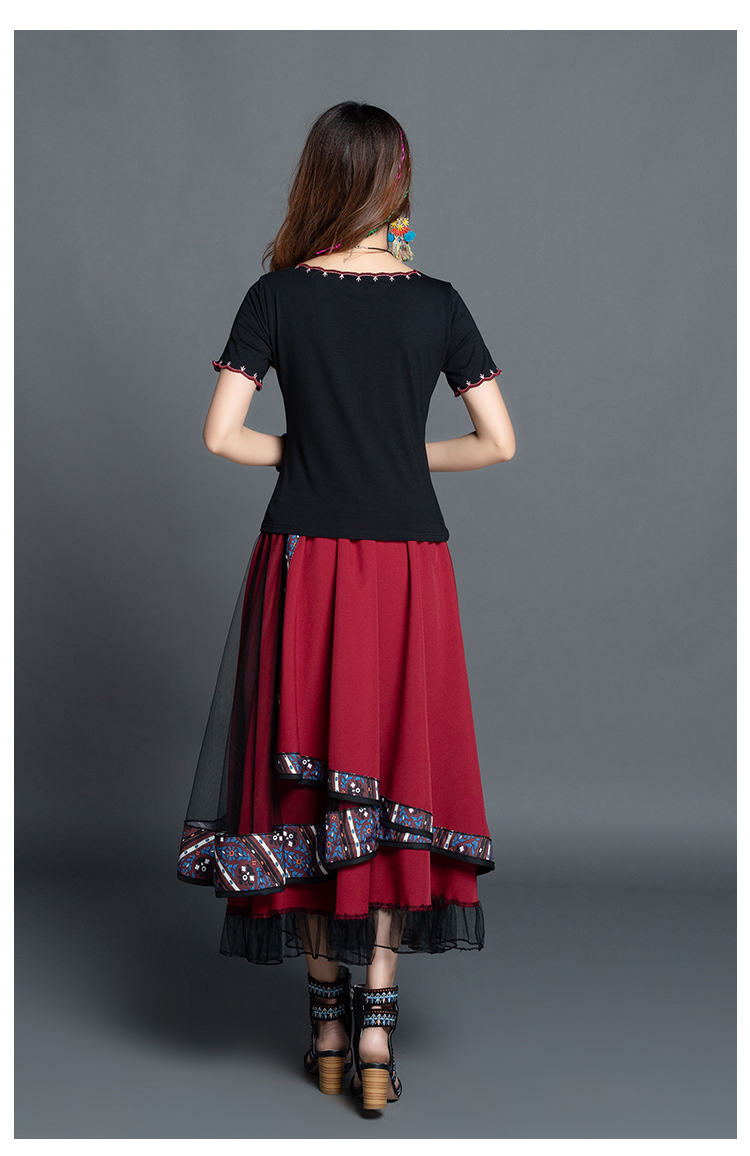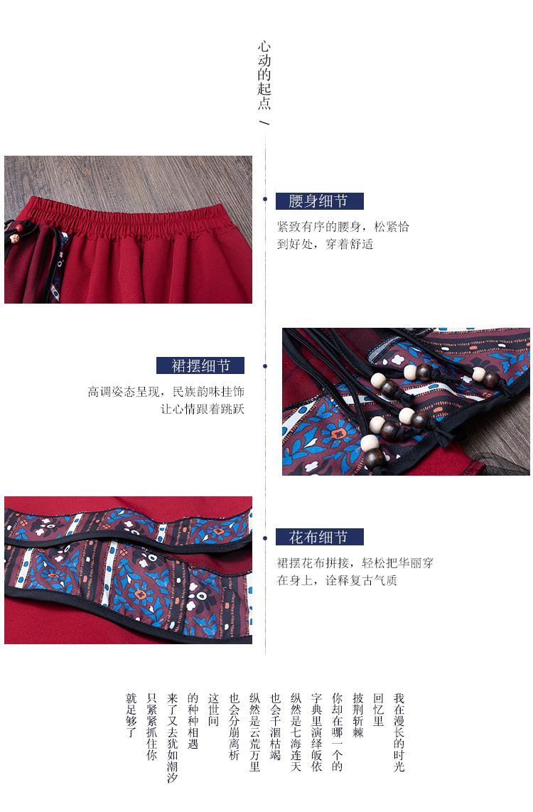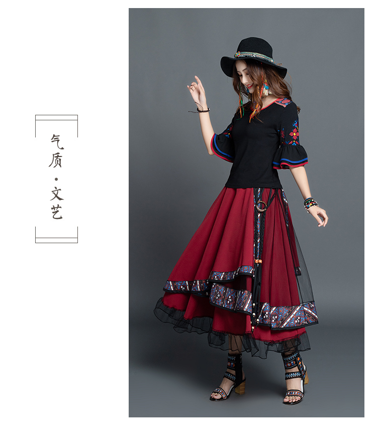 2020春季民族風印花半身裙顯瘦網紗中長款A字裙松緊大擺裙秋冬女1入