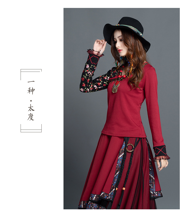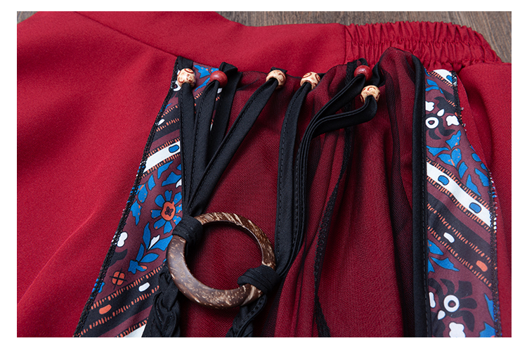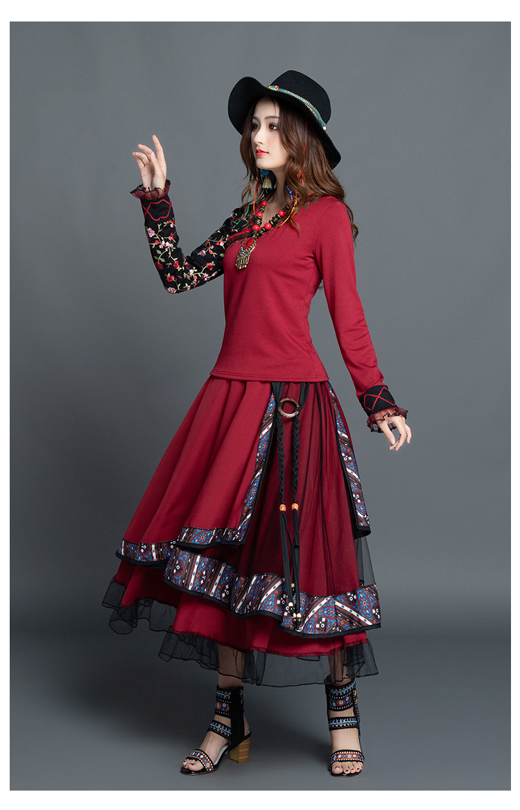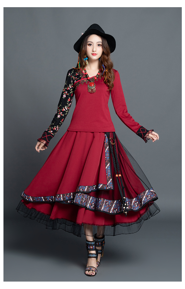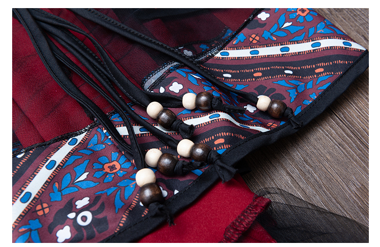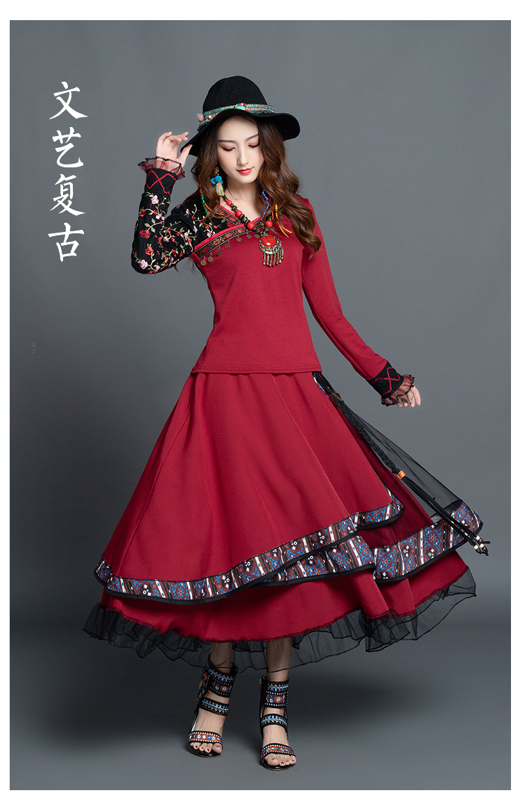 2020春季民族風印花半身裙顯瘦網紗中長款A字裙松緊大擺裙秋冬女1入