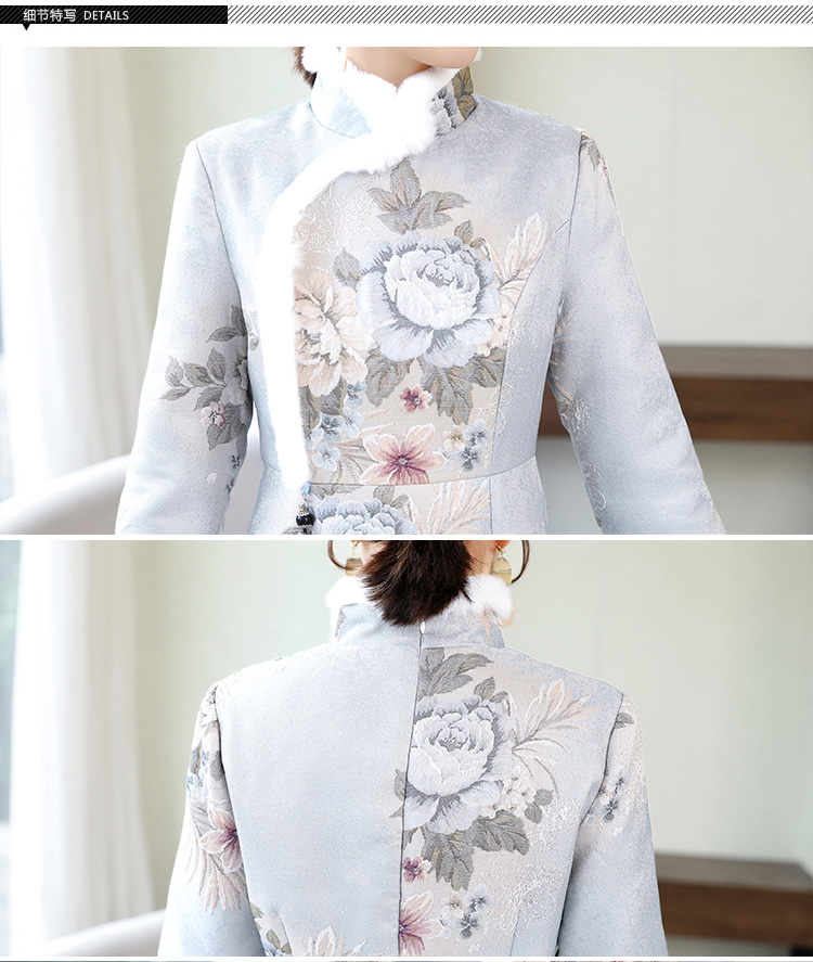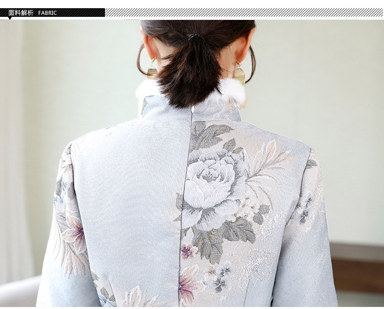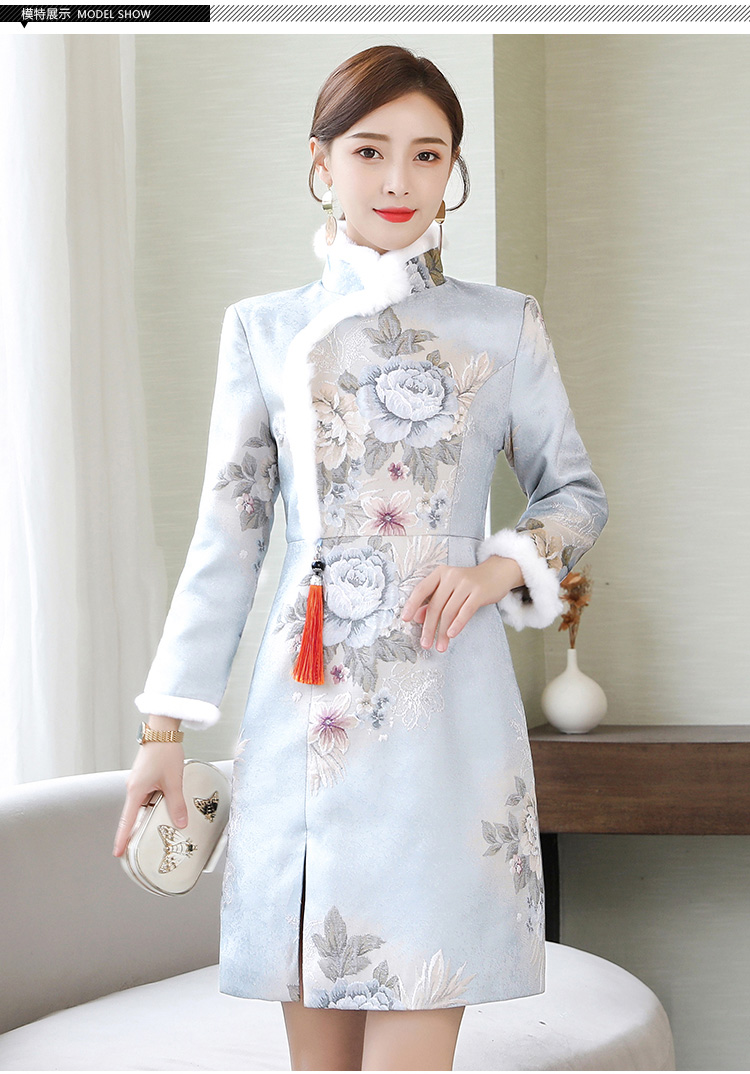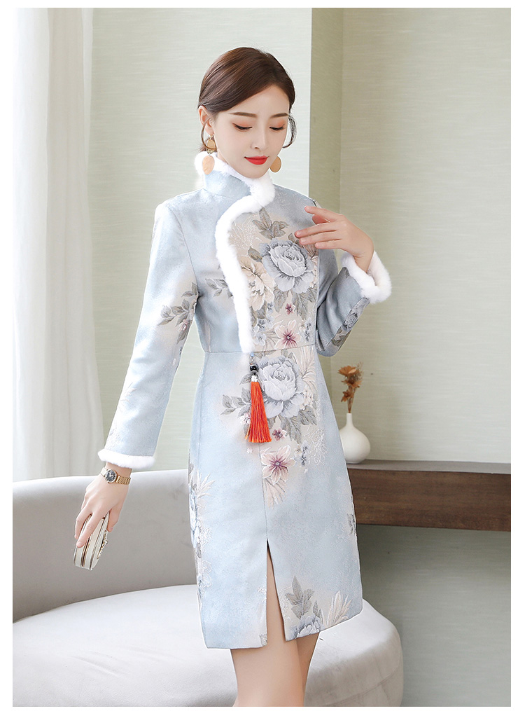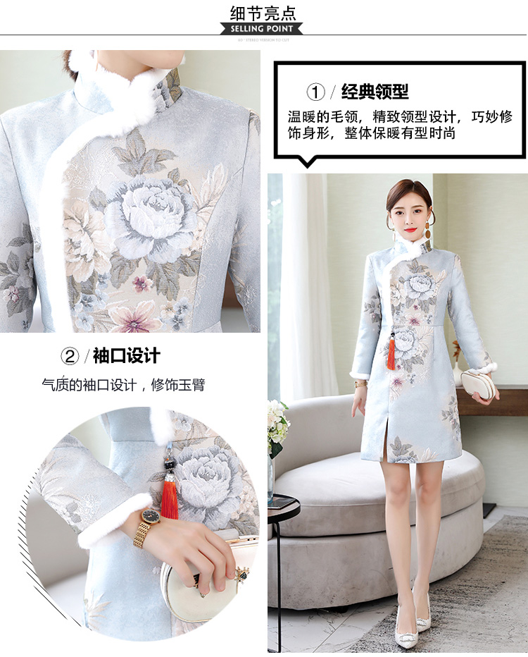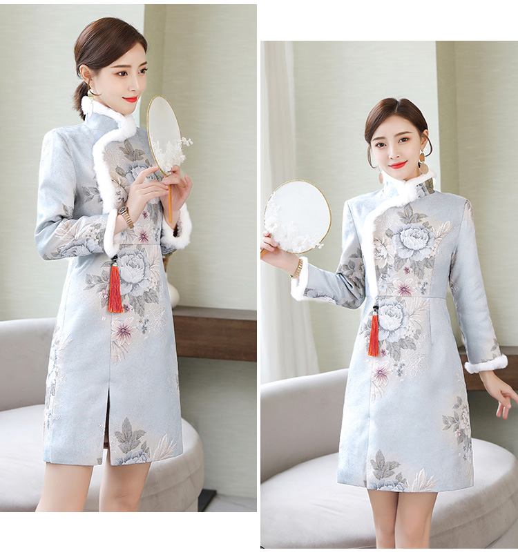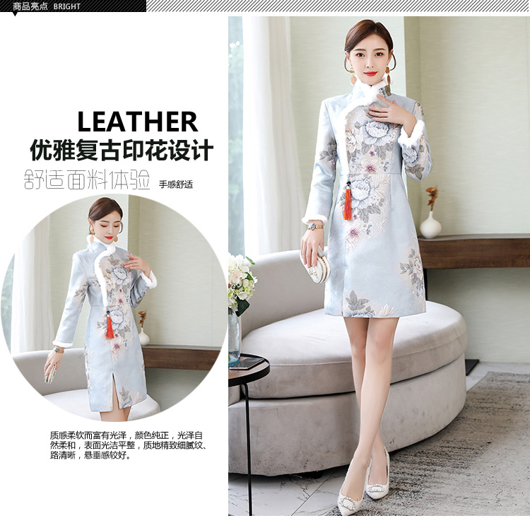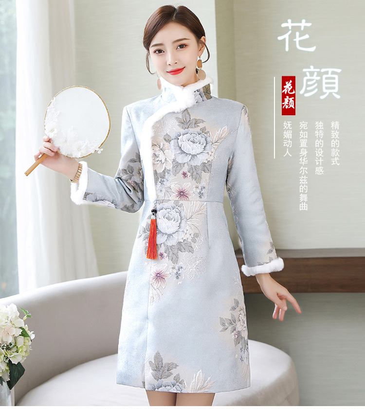 2020冬季新款原創花緣女裝復古刺繡年輕款旗袍開衩中國風連衣裙女1入