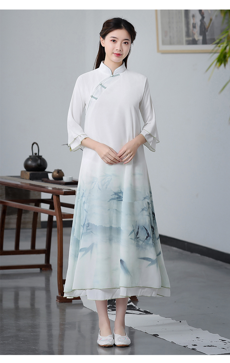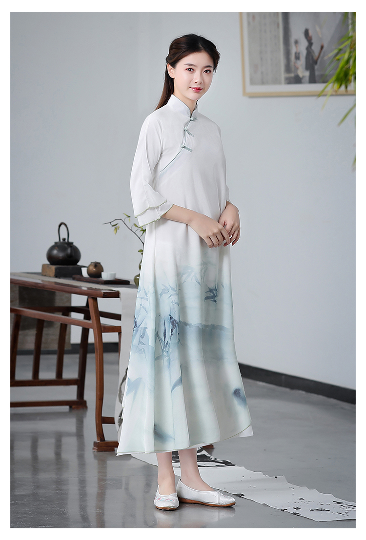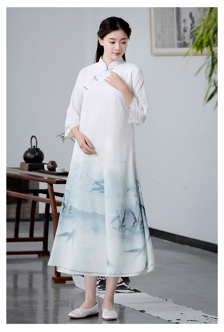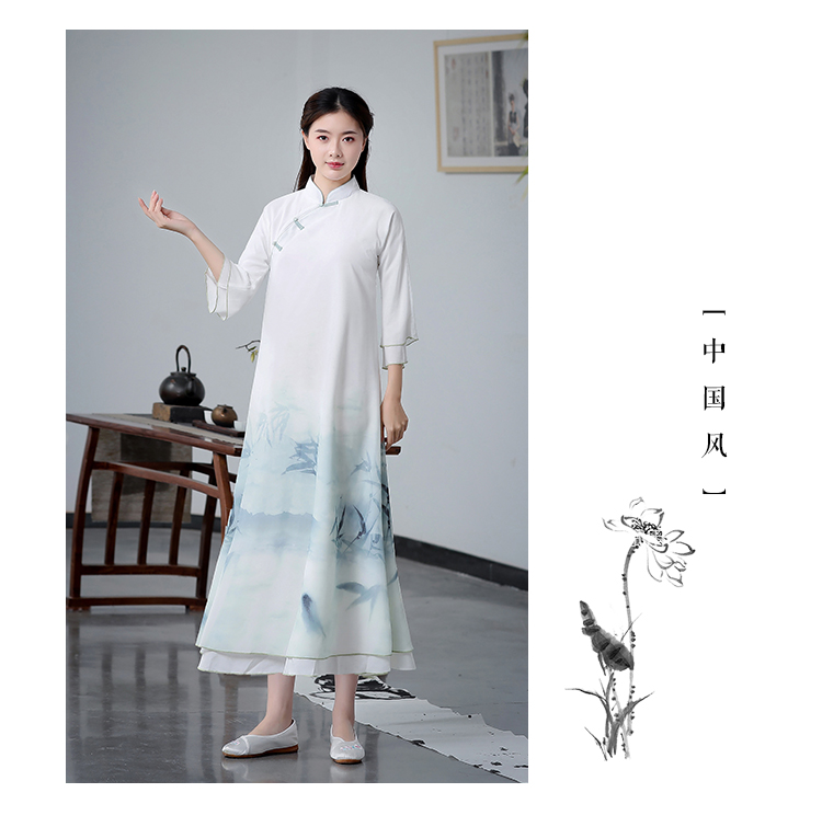 2019夏裝民族風女裝禪意茶服復古漢服中式改良旗袍長裙連衣裙顯瘦1入