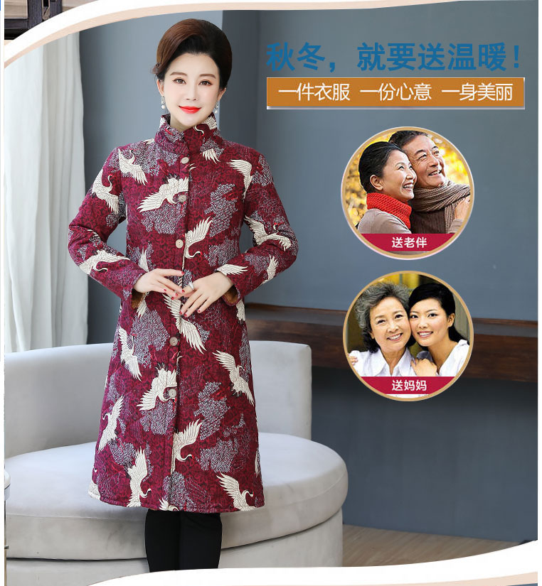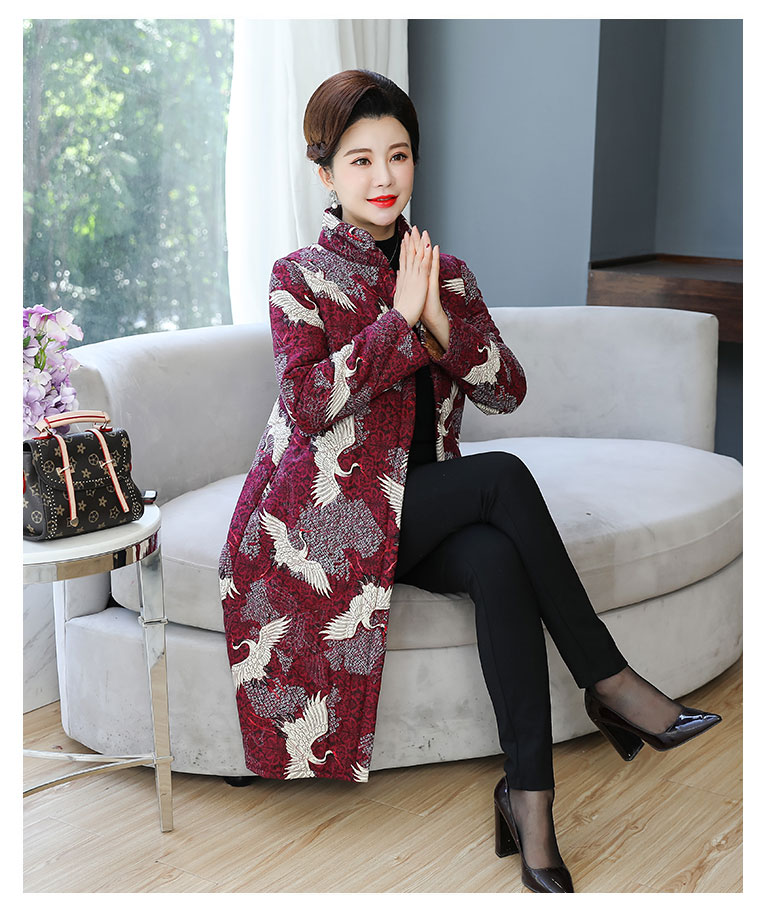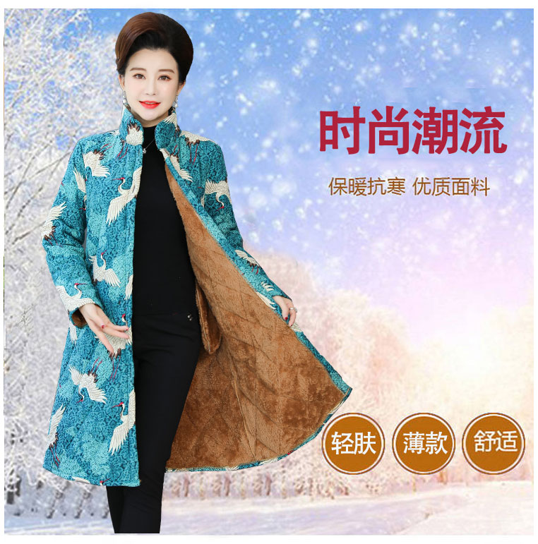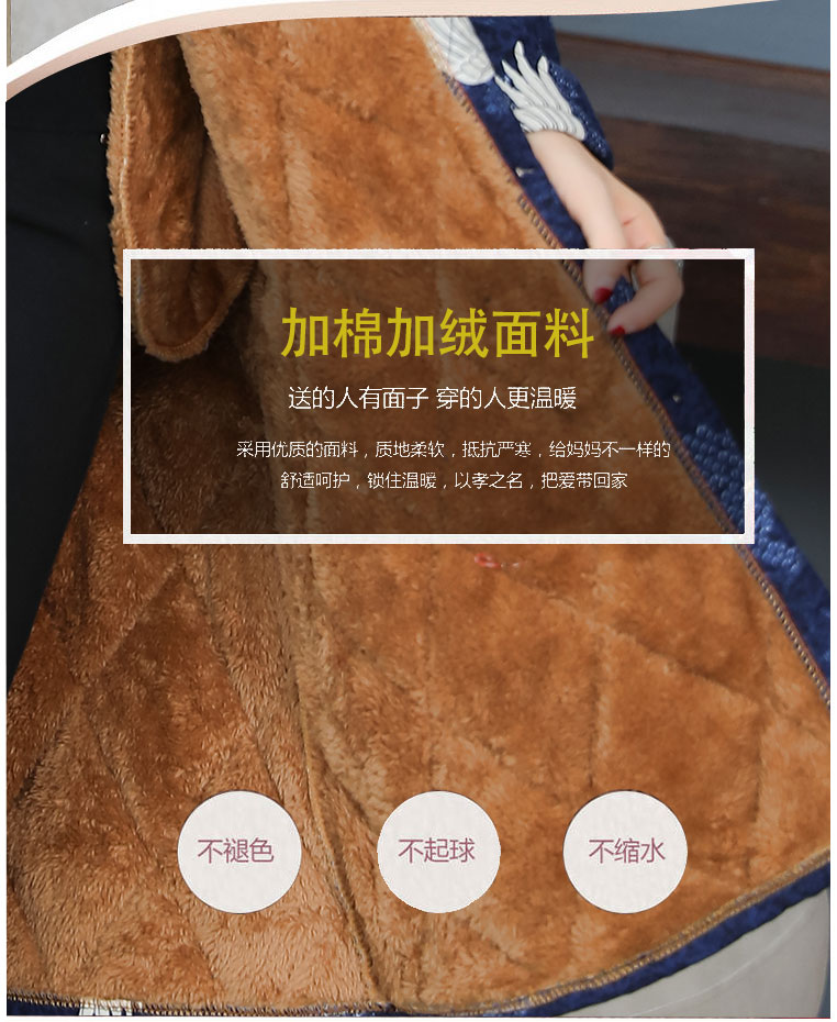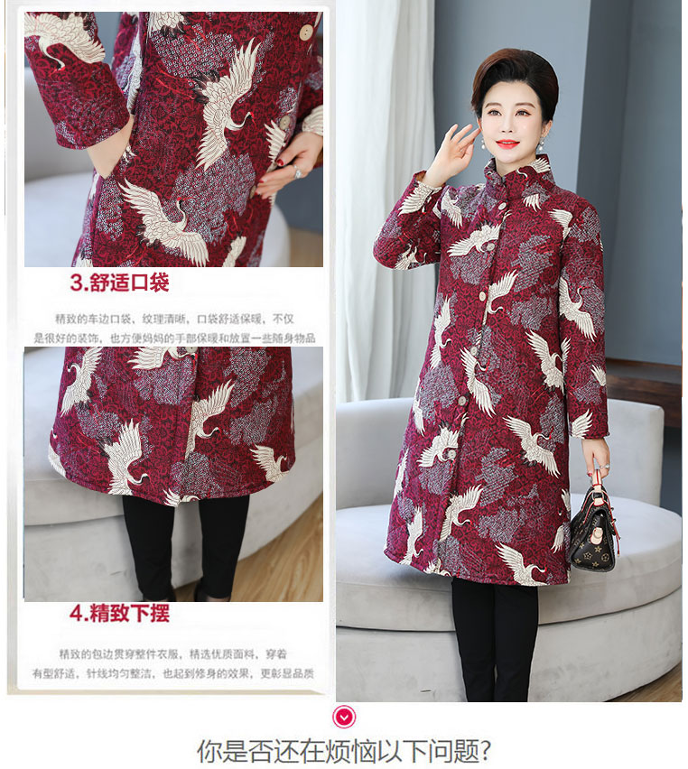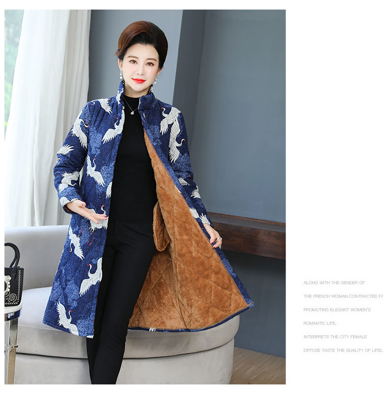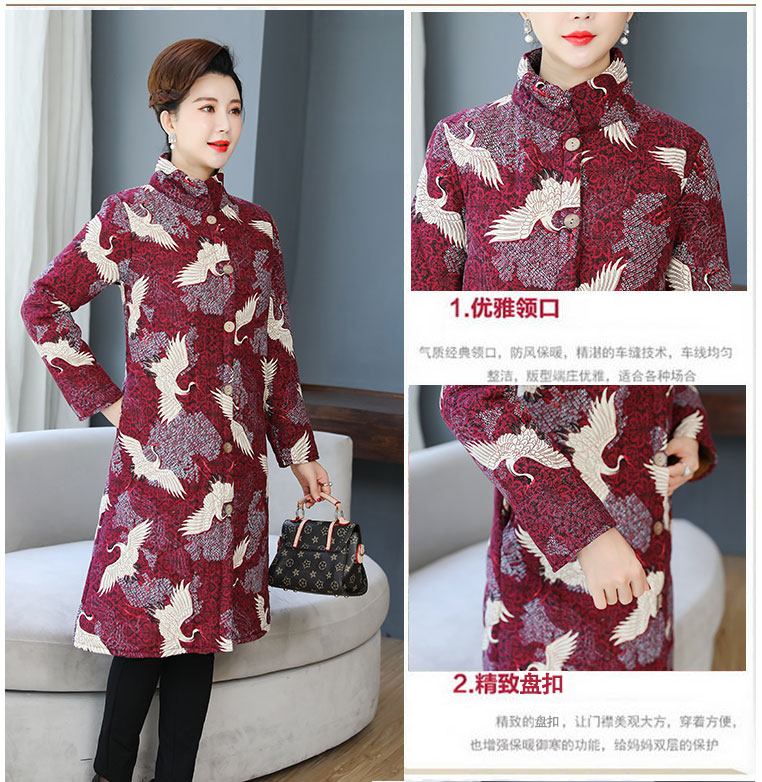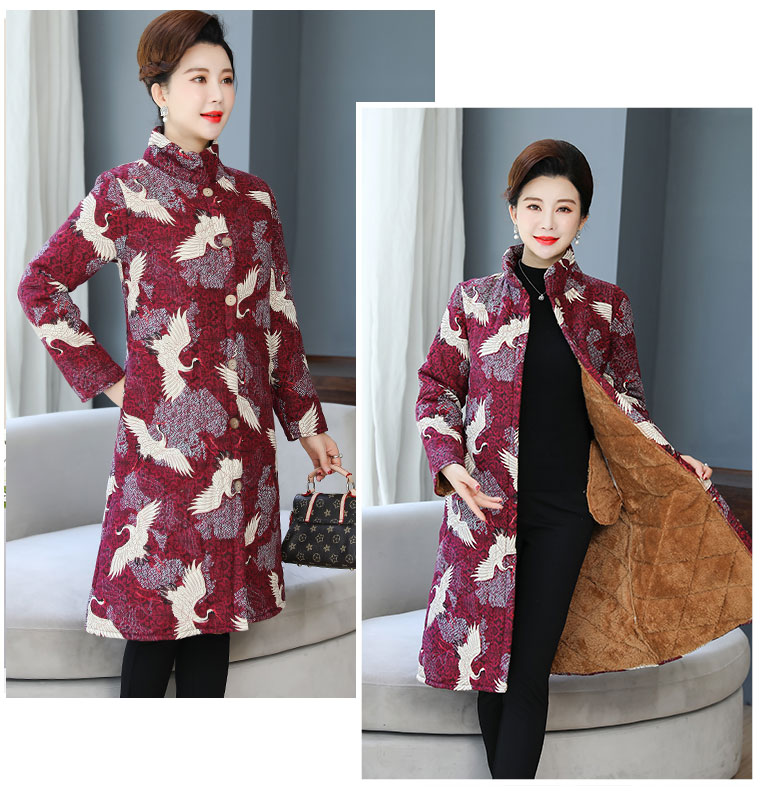 2020冬季新款中老年媽媽女裝裝棉麻夾棉加絨棉衣大碼長款棉襖外套1入