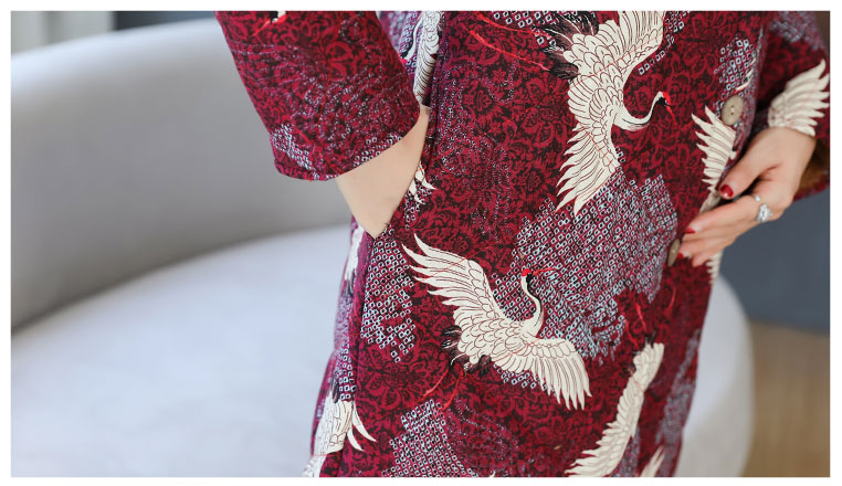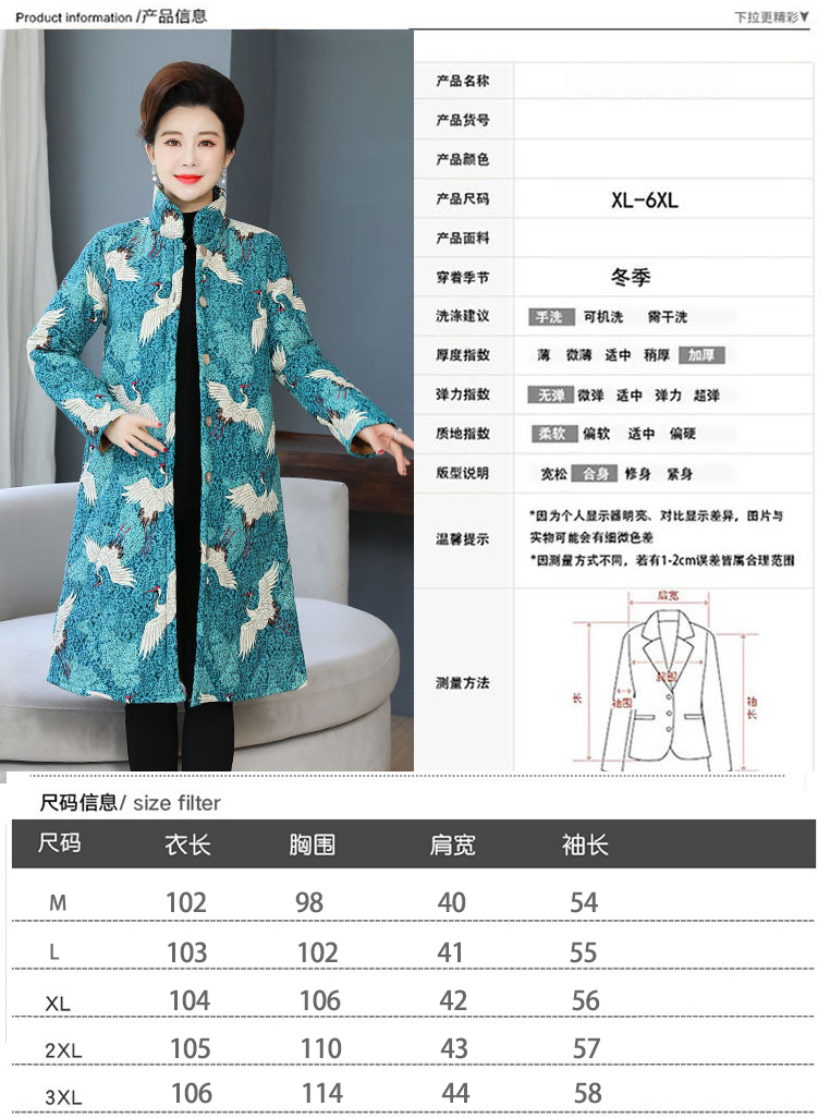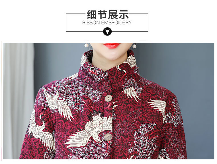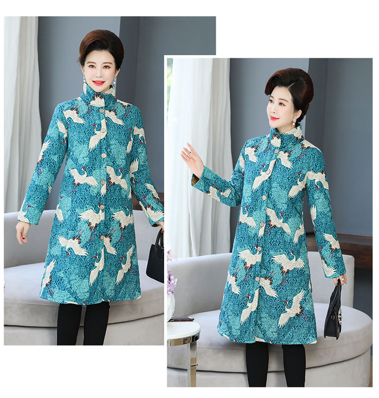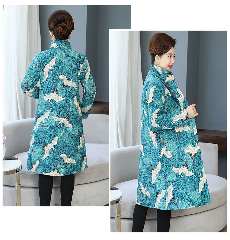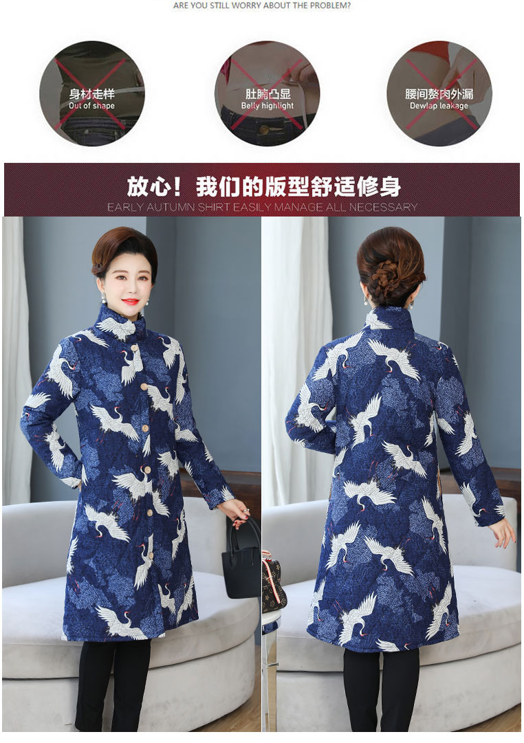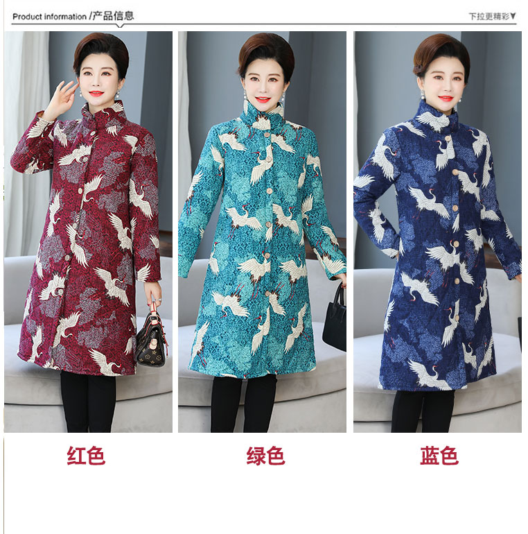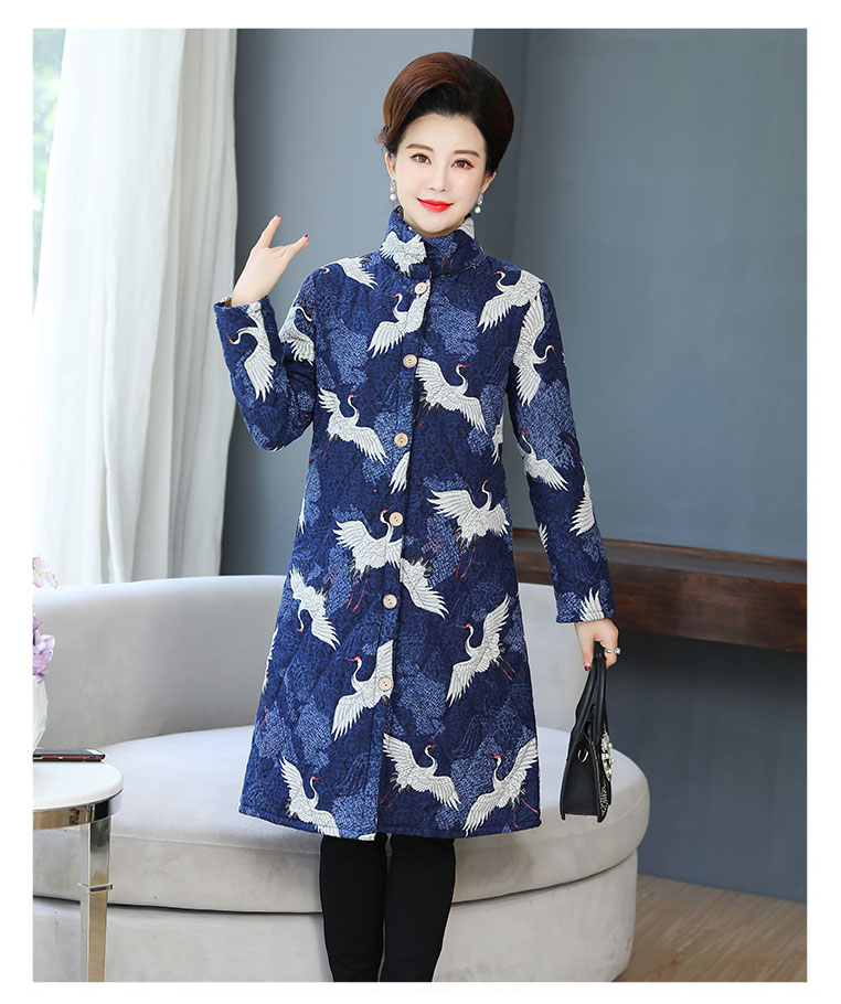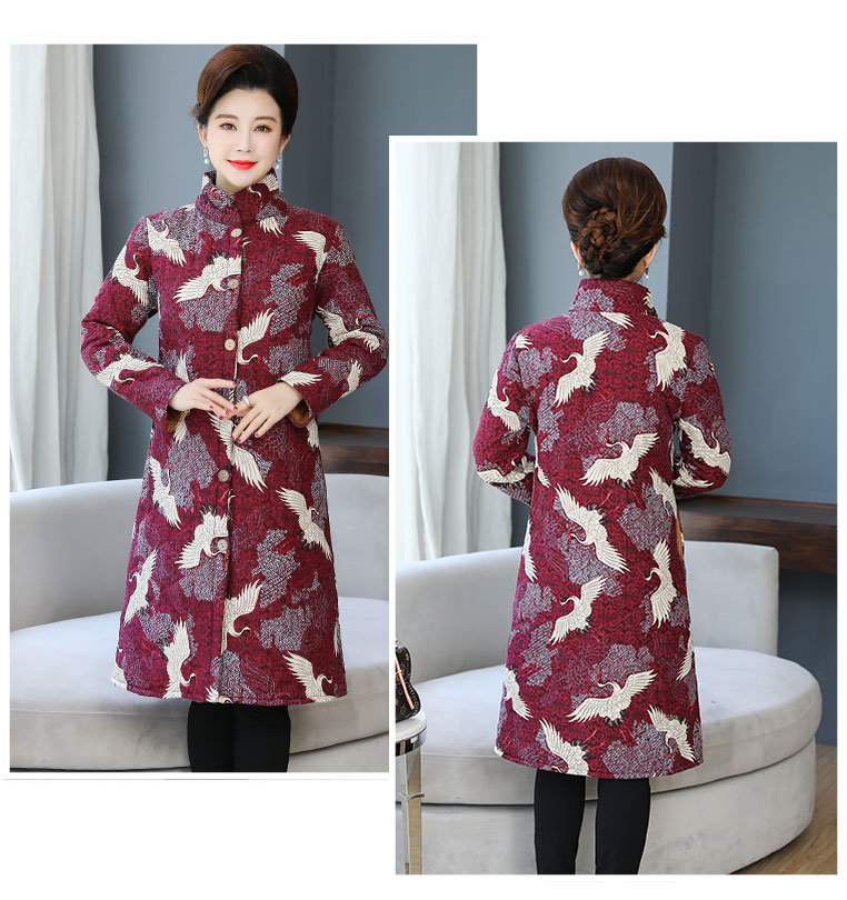2020冬季新款中老年媽媽女裝裝棉麻夾棉加絨棉衣大碼長款棉襖外套1入