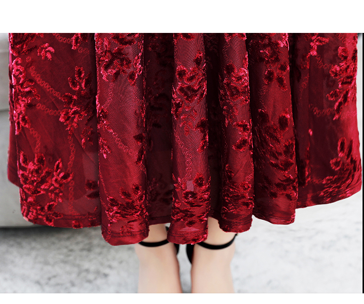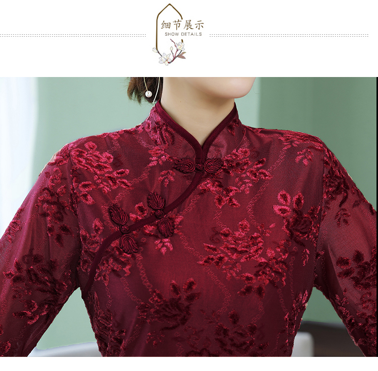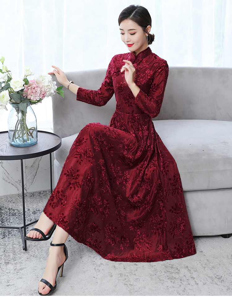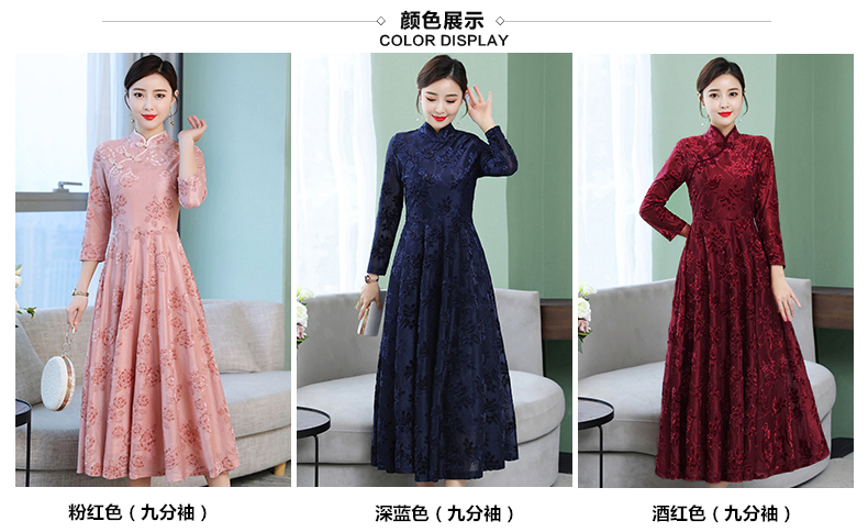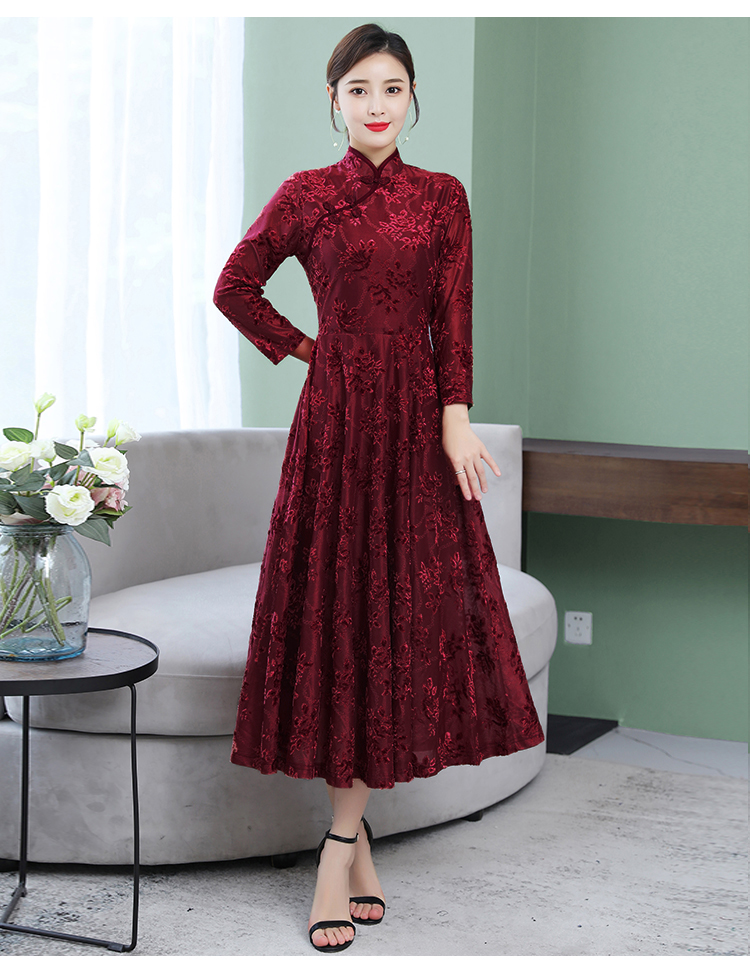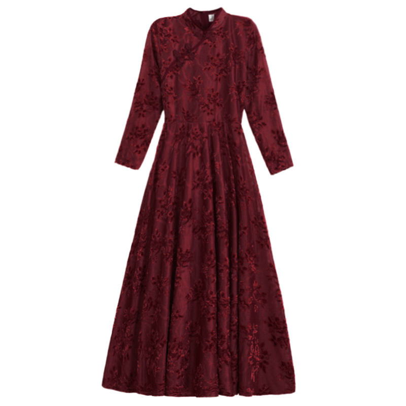 2019秋季新款中國風改良旗袍中式盤扣復古大擺提花連衣裙中長款1入