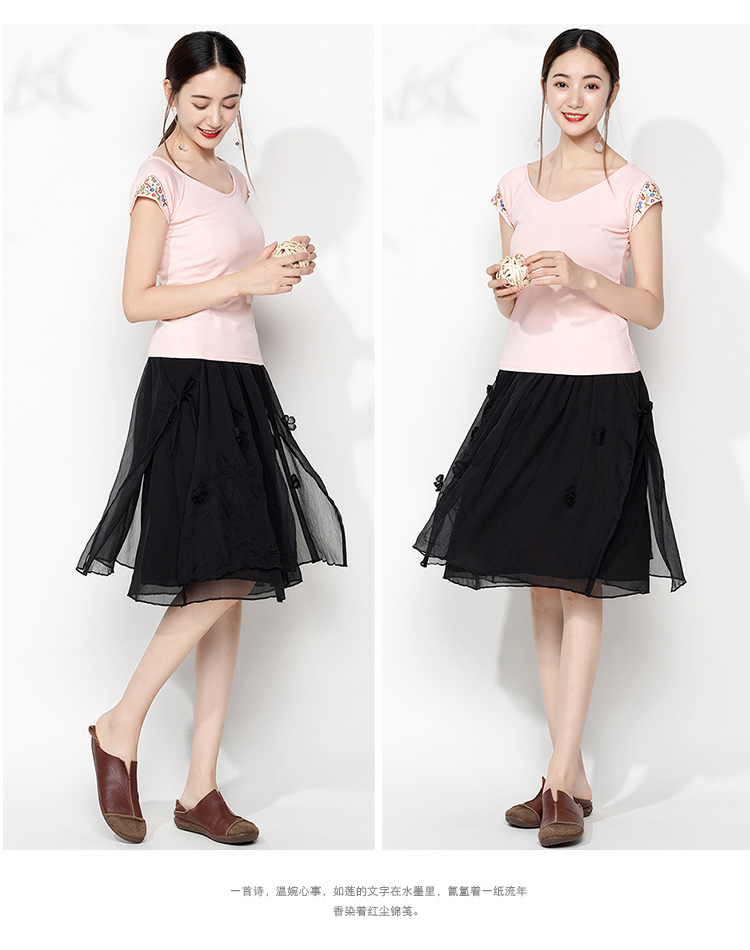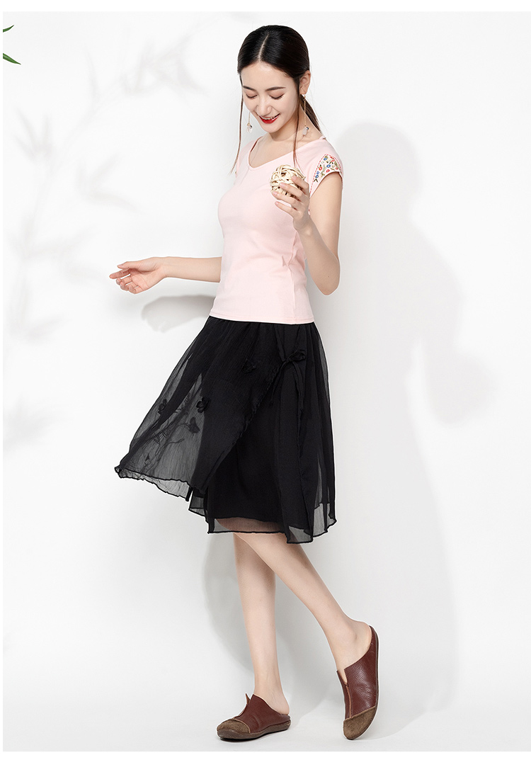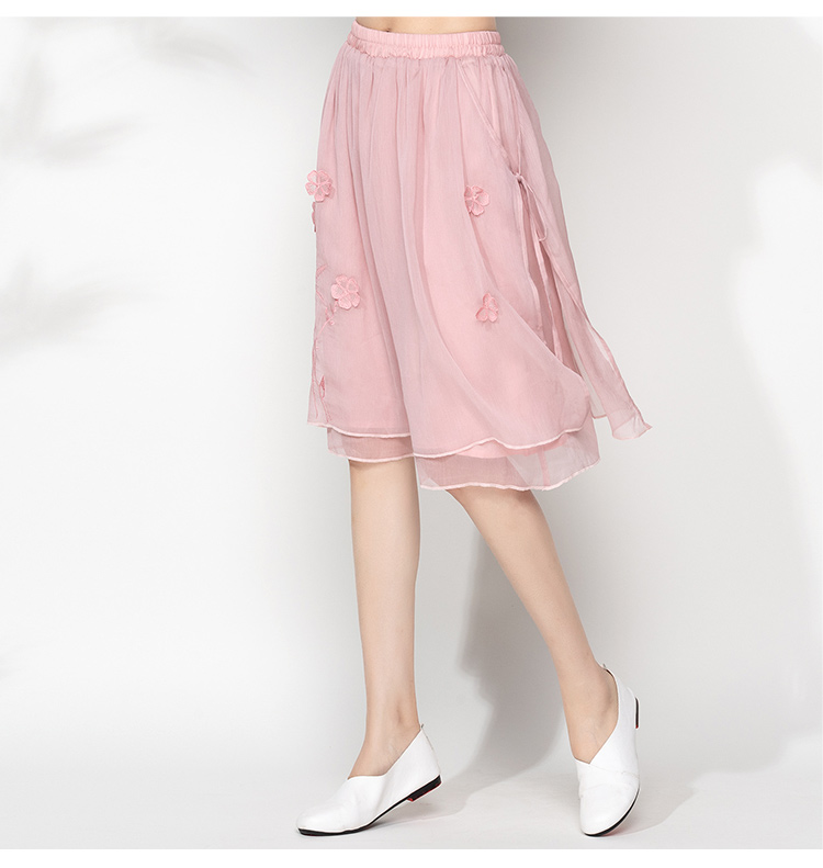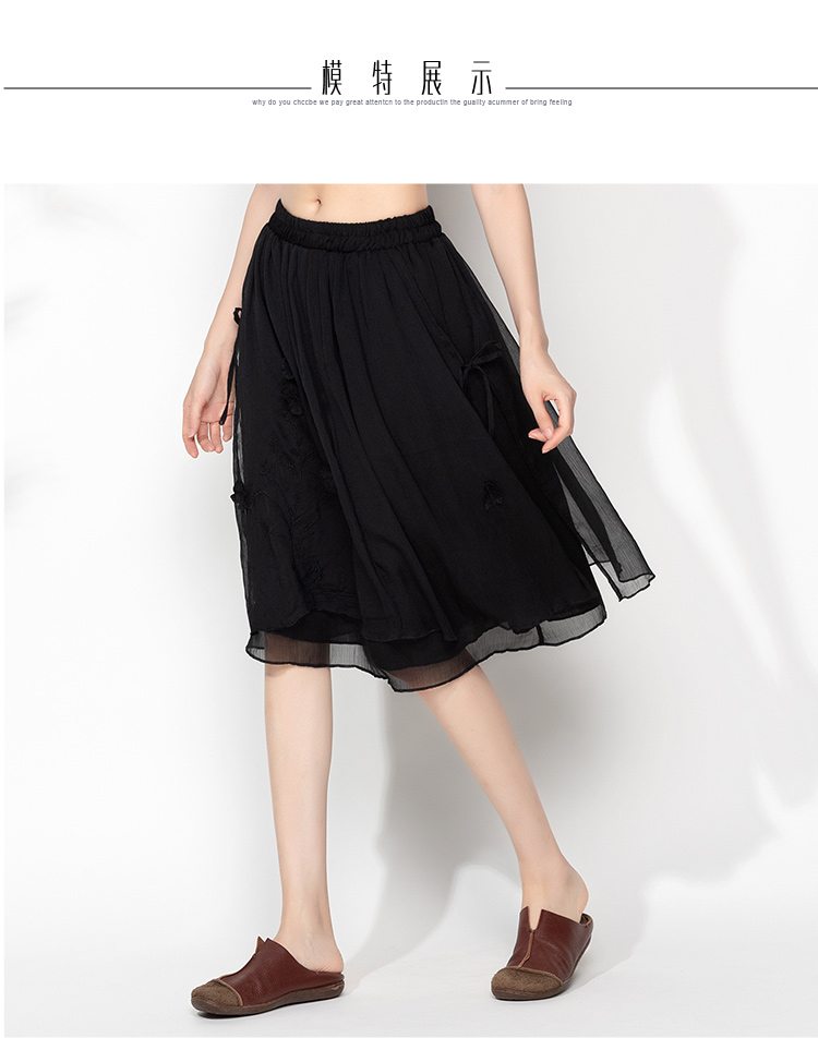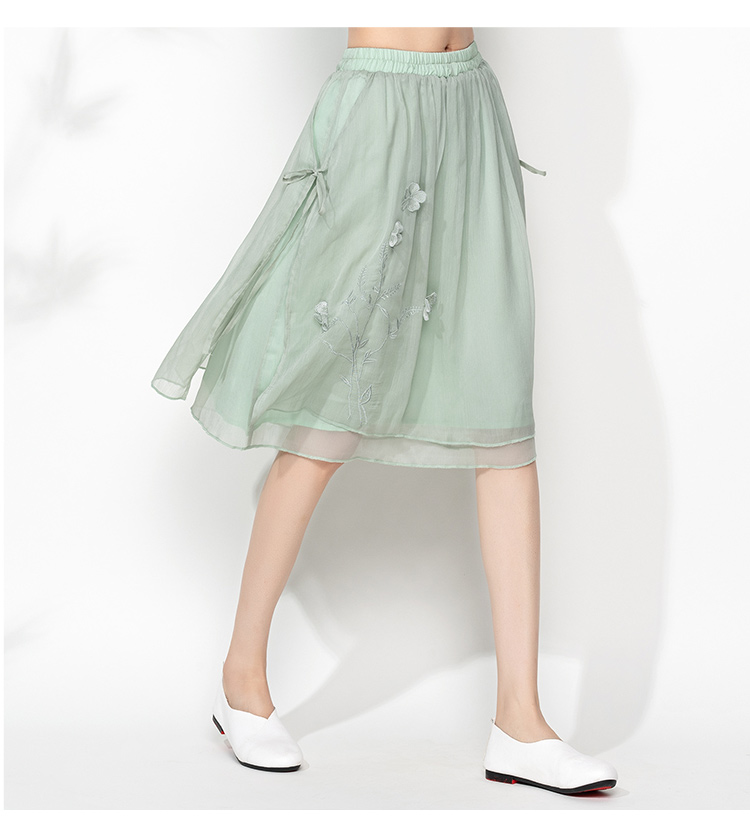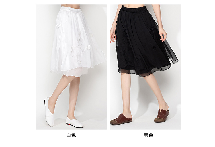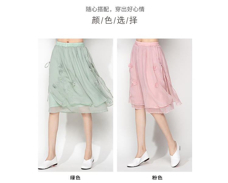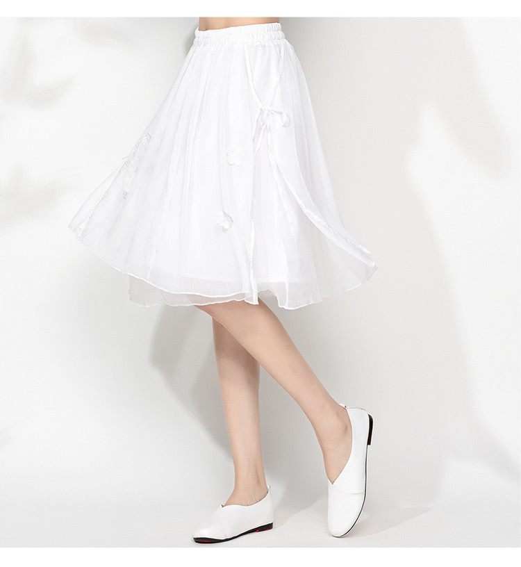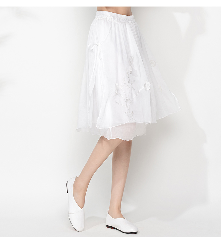 2020夏季新款原創民族風女裝文藝小清新仙女繡花雪紡半身裙短裙子1入
