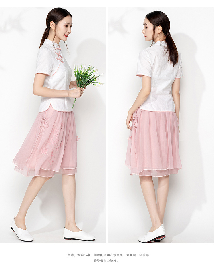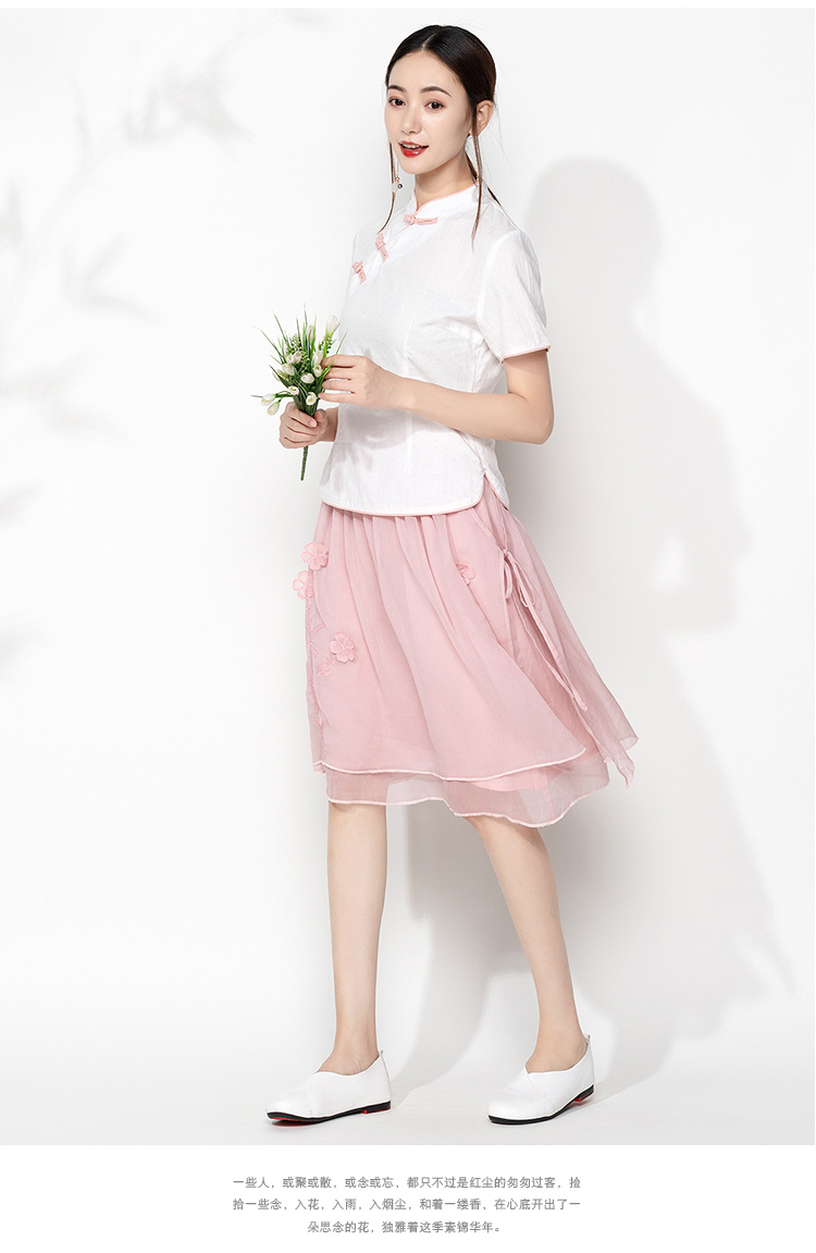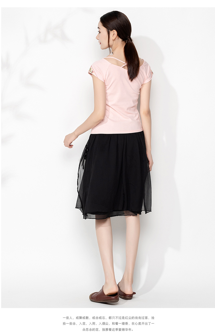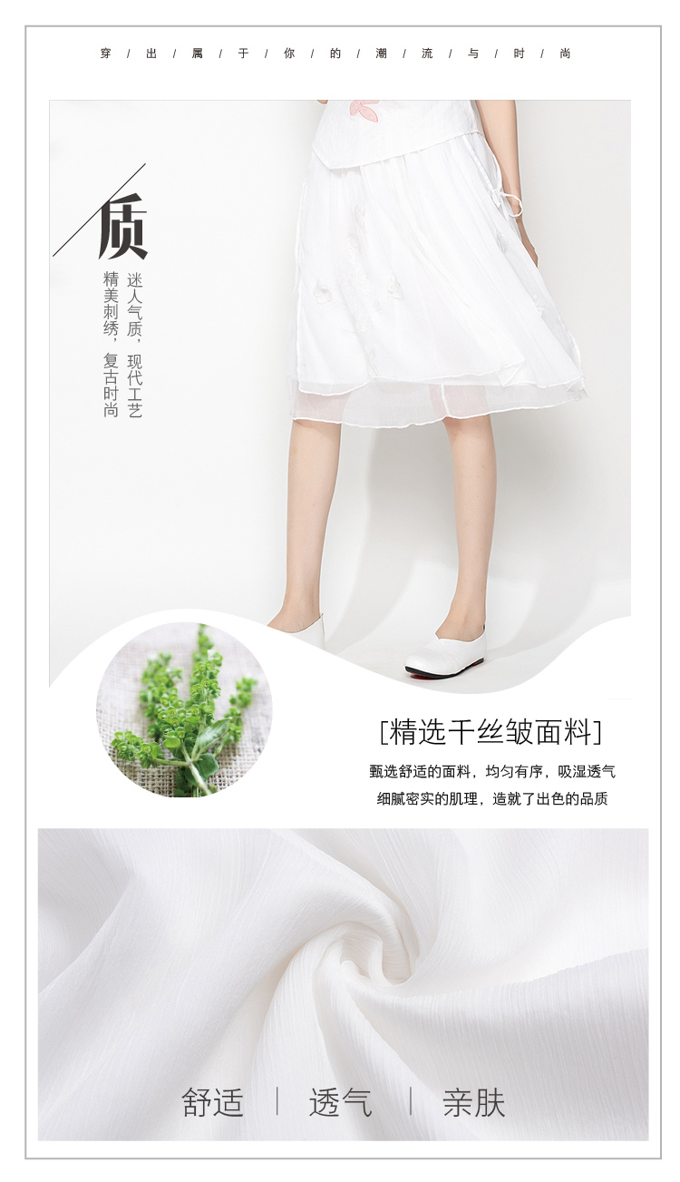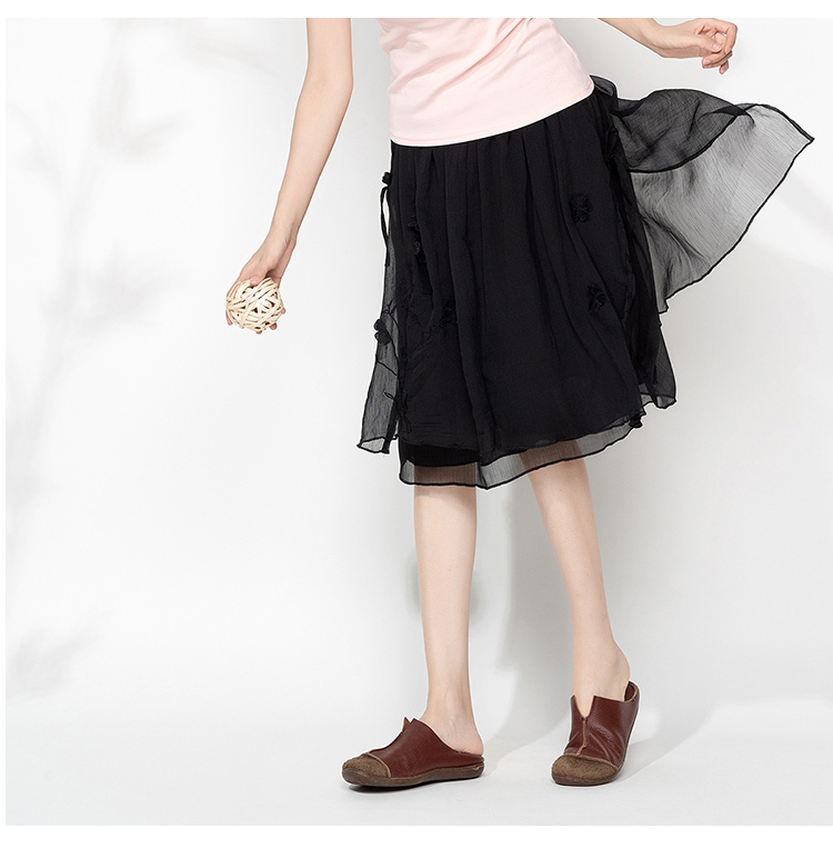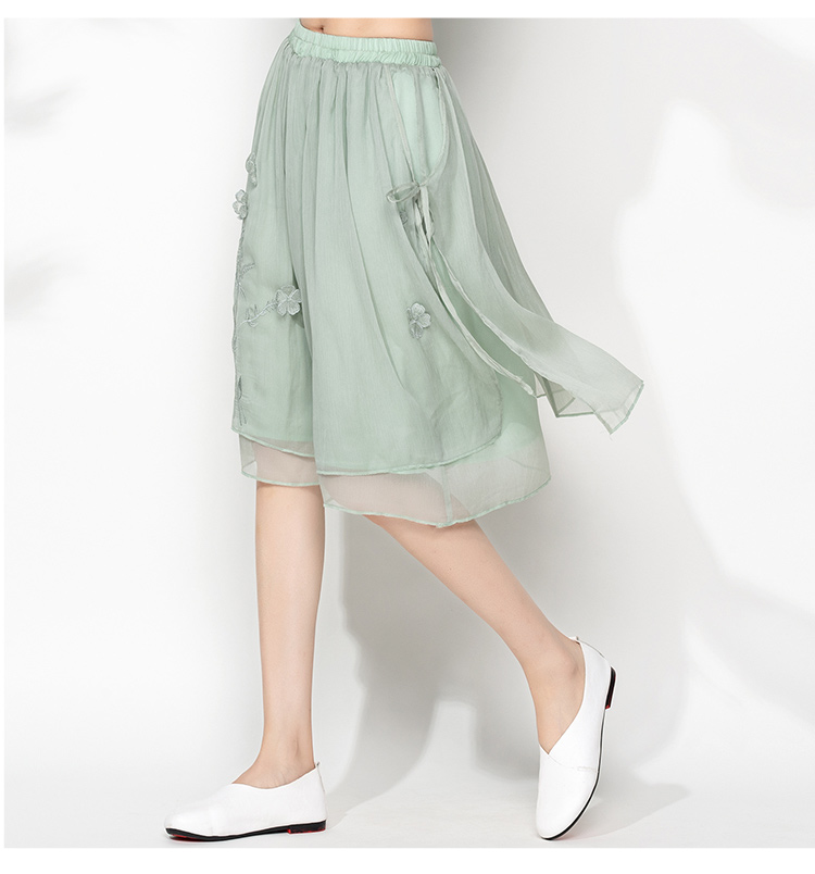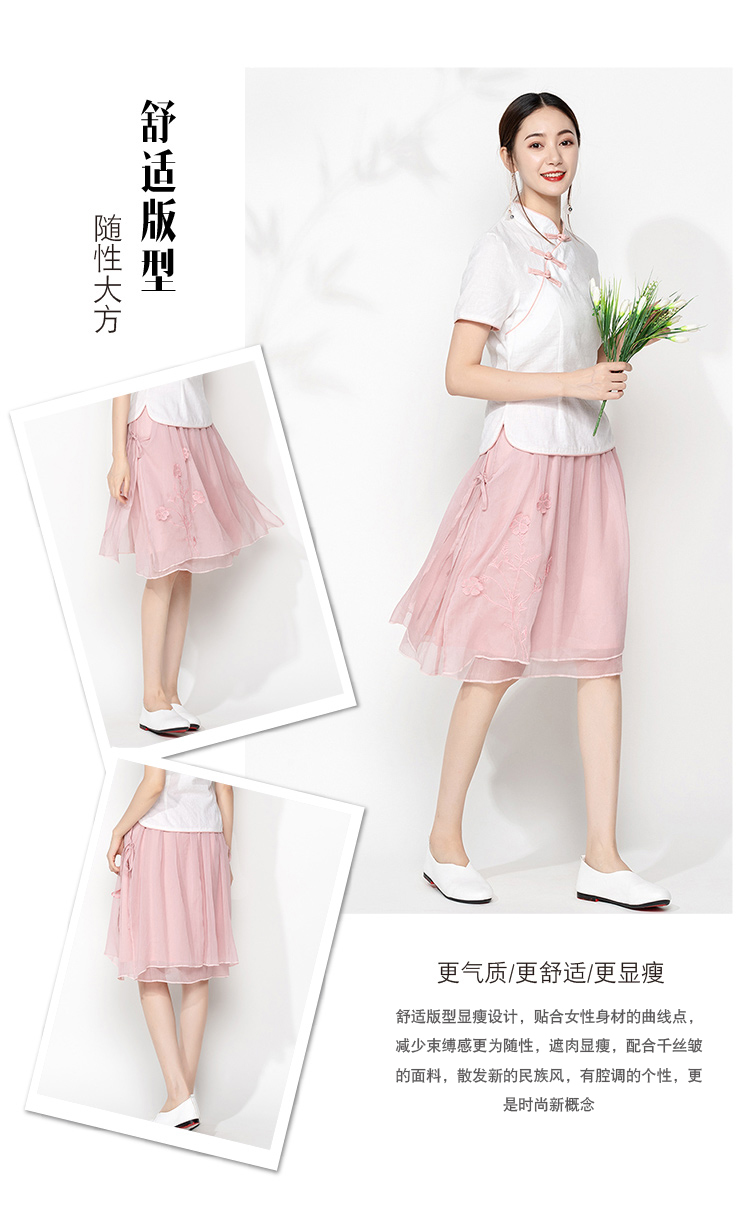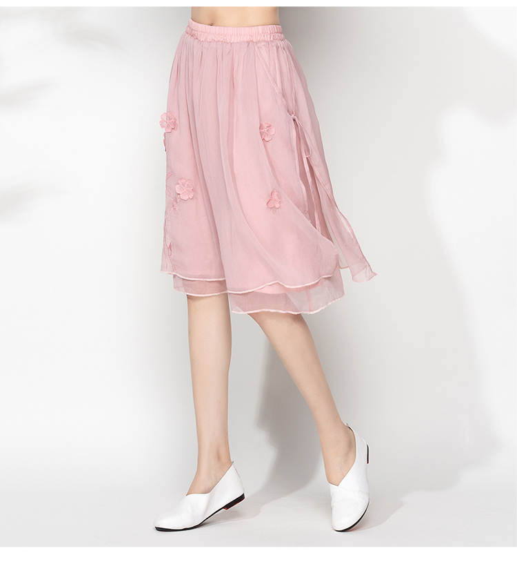 2020夏季新款原創民族風女裝文藝小清新仙女繡花雪紡半身裙短裙子1入