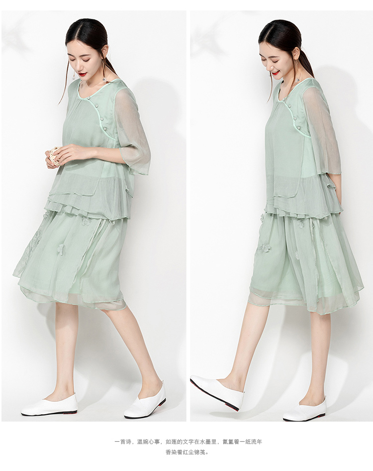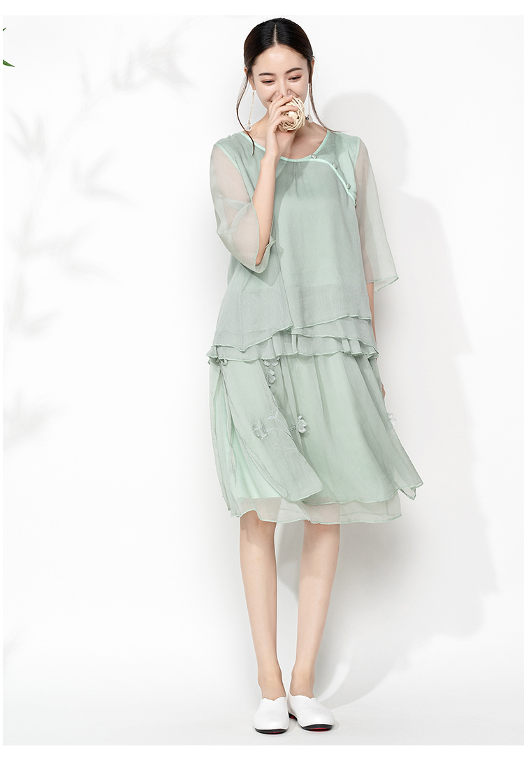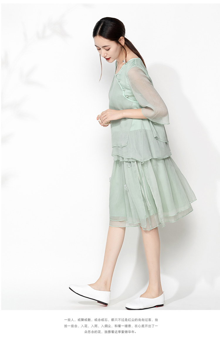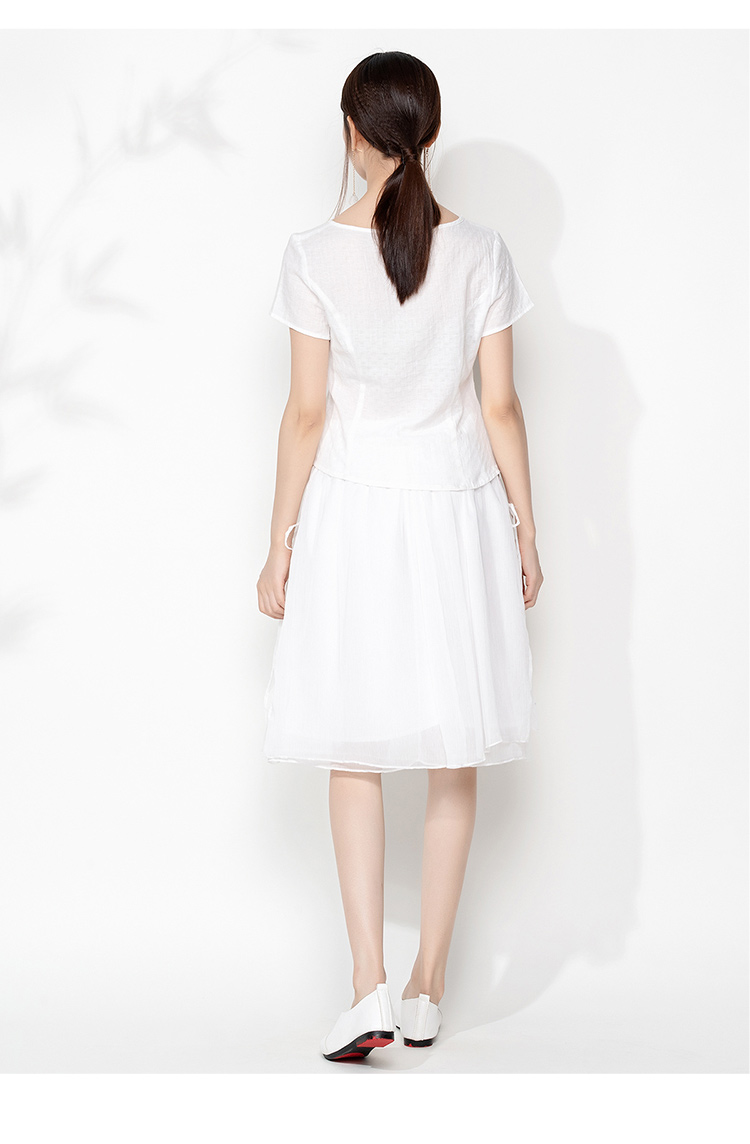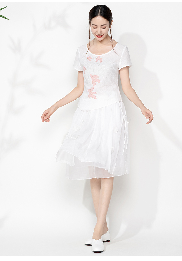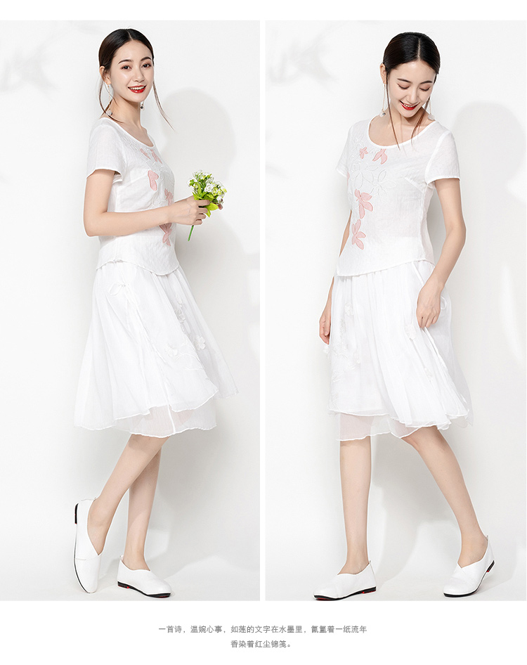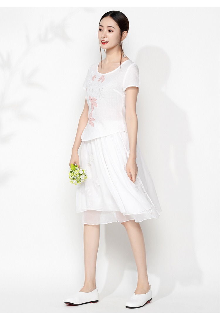 2020夏季新款原創民族風女裝文藝小清新仙女繡花雪紡半身裙短裙子1入