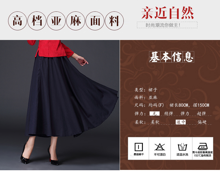 2020春季新款中國風文藝復古棉麻大擺長裙子學生改良漢服半身裙女1入