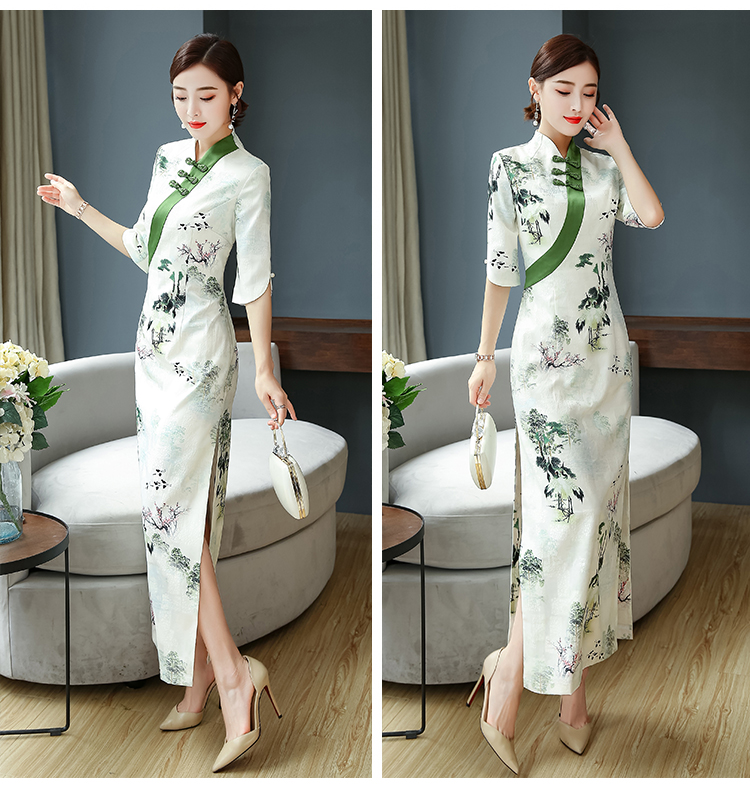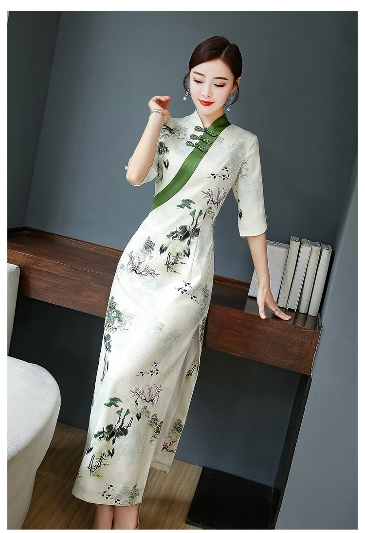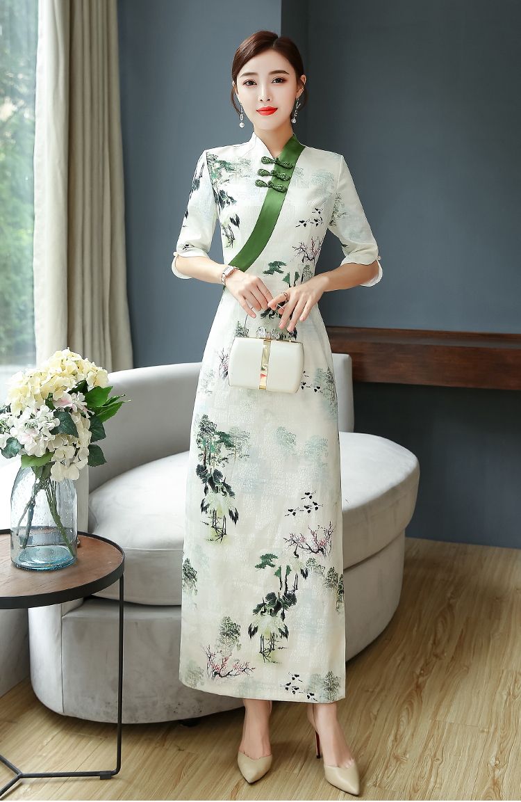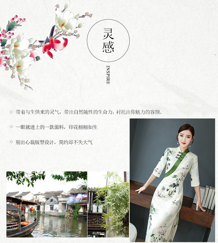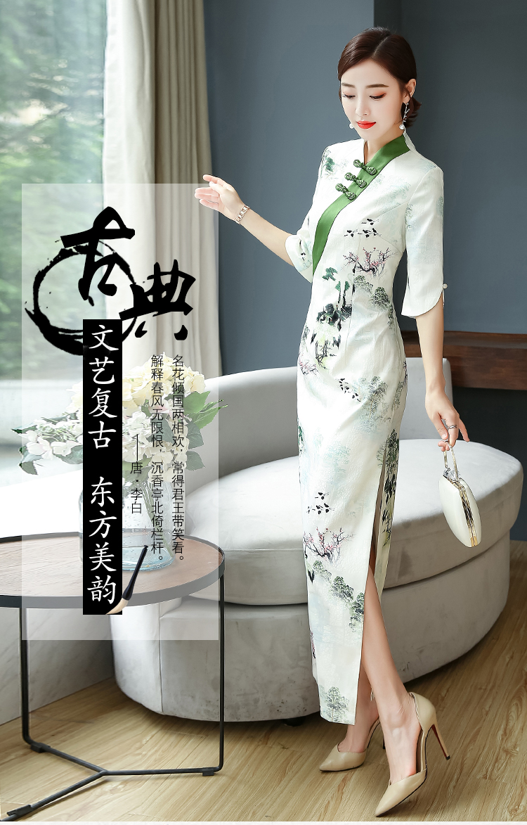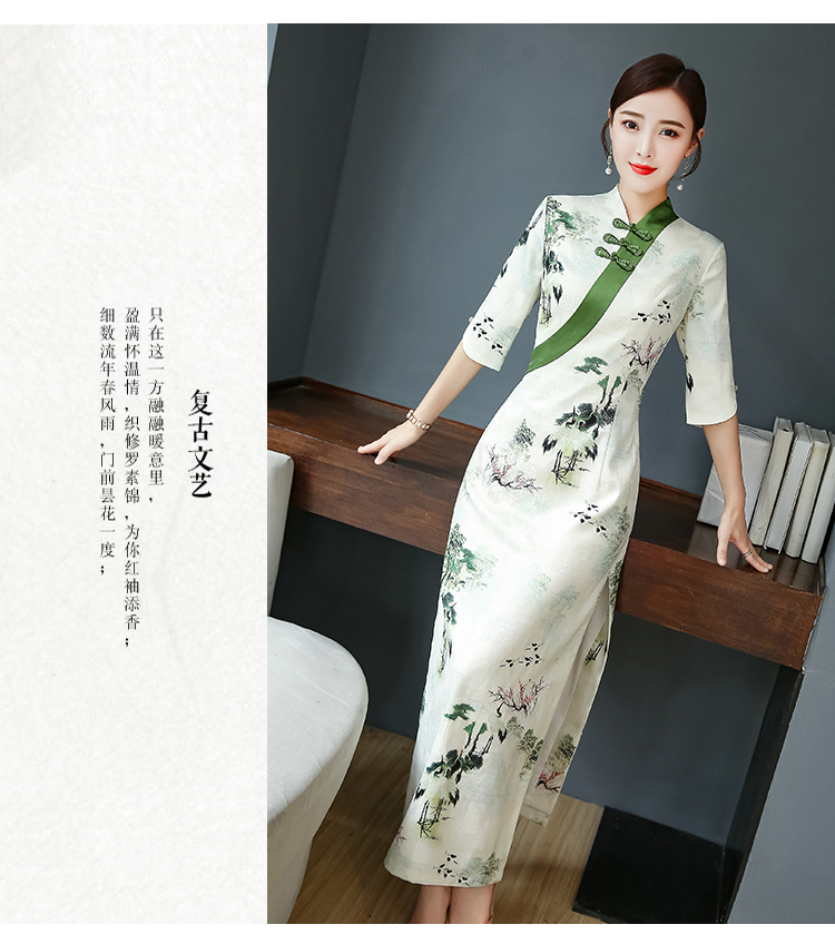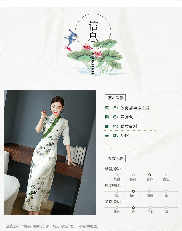 2020夏款中國風優雅修身日常旗袍改良版連衣裙女復古中式改良漢服1入