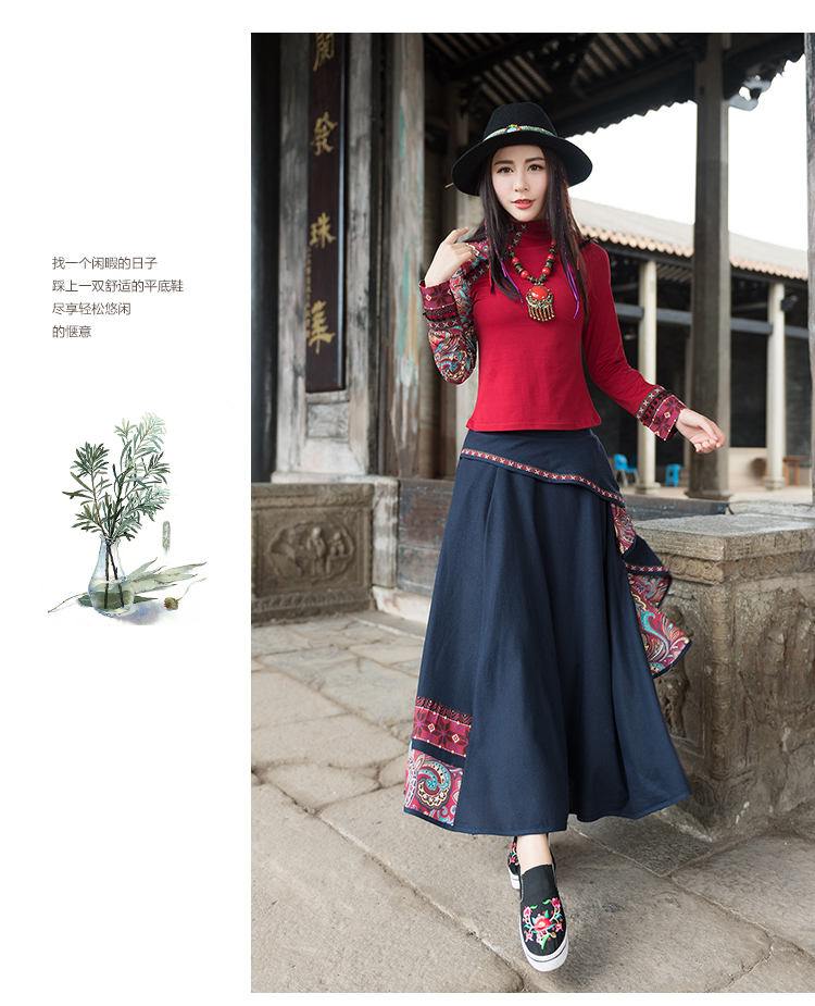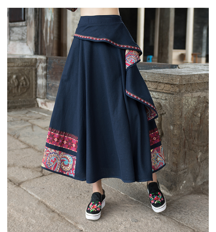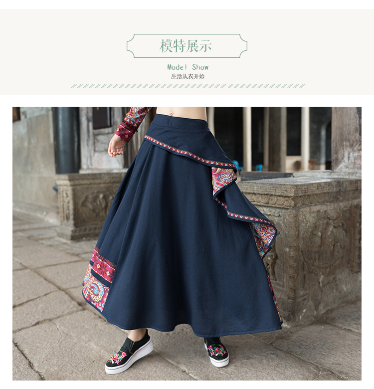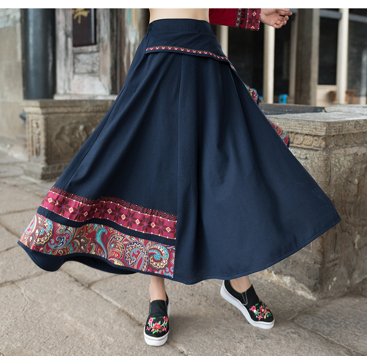 2020春季原創文藝復古民族風半身裙繡花中長裙大擺a字裙秋冬長裙1入