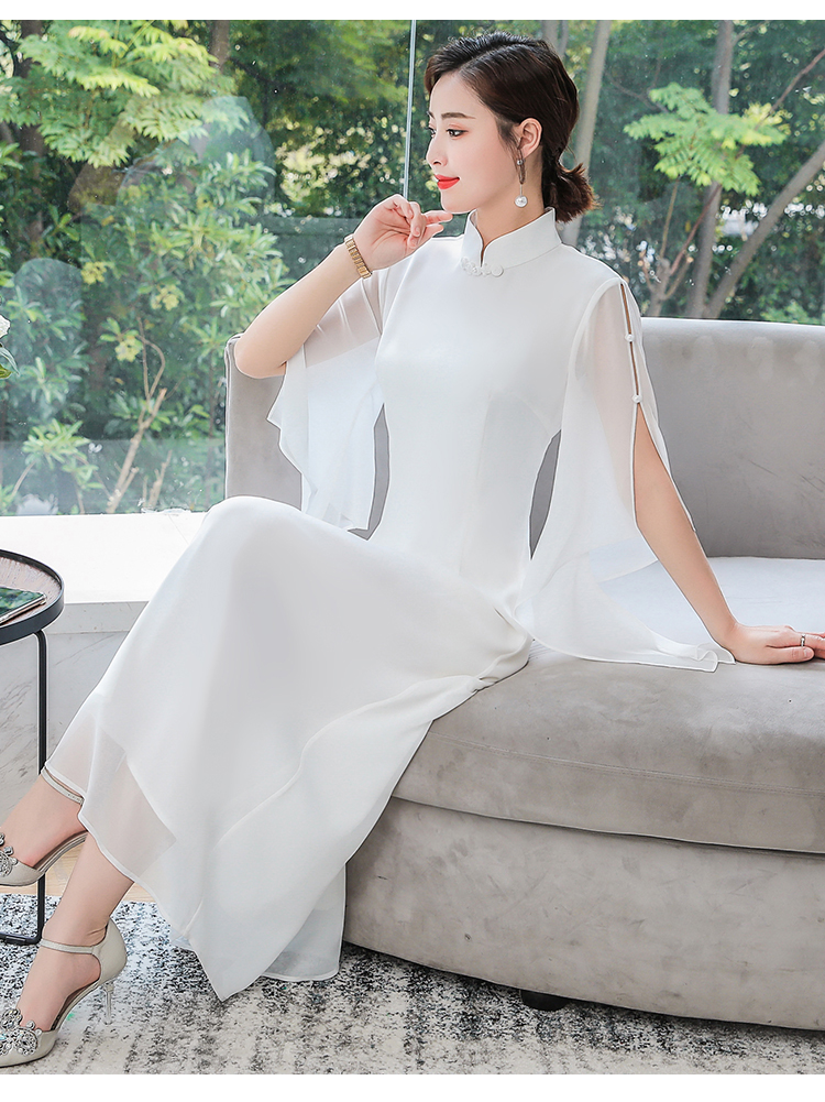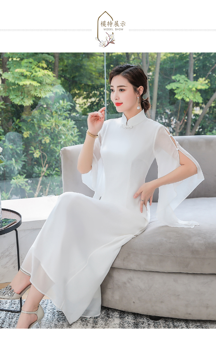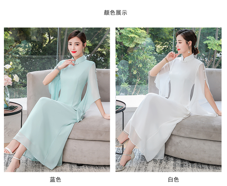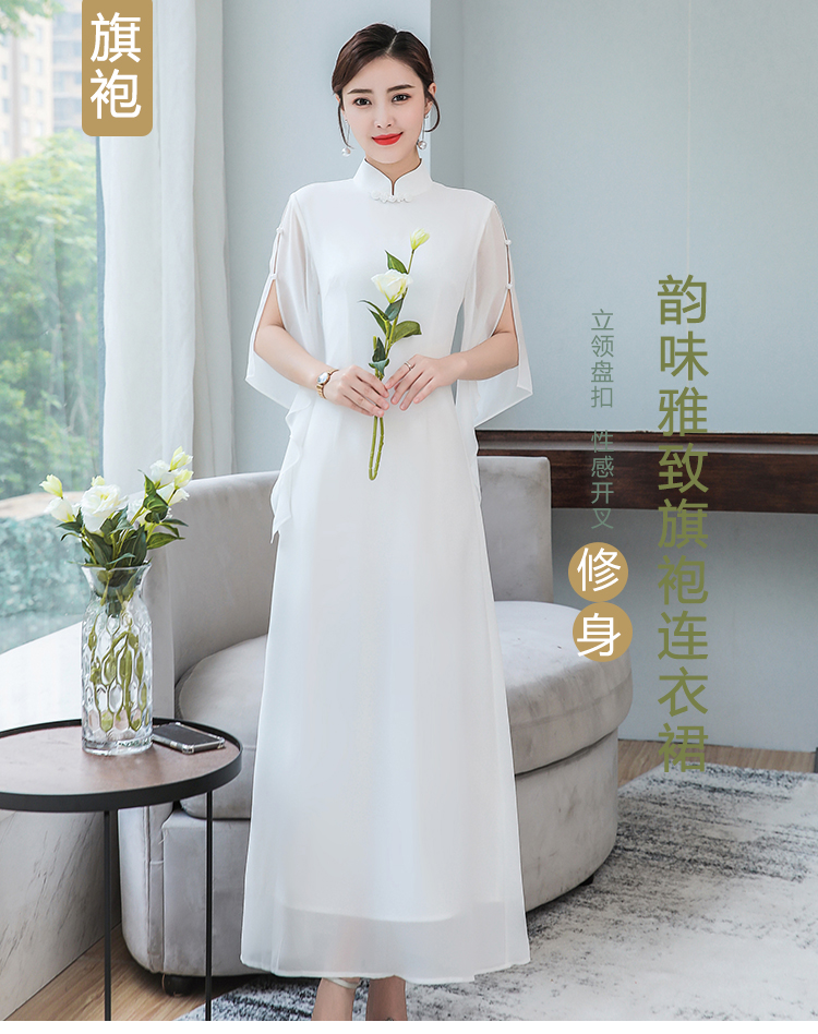 2020夏裝新款中國風禪意改良中式立領旗袍盤扣仙女修身長款連衣裙1入