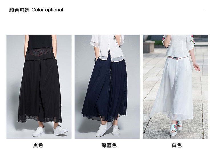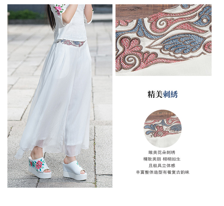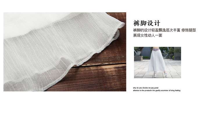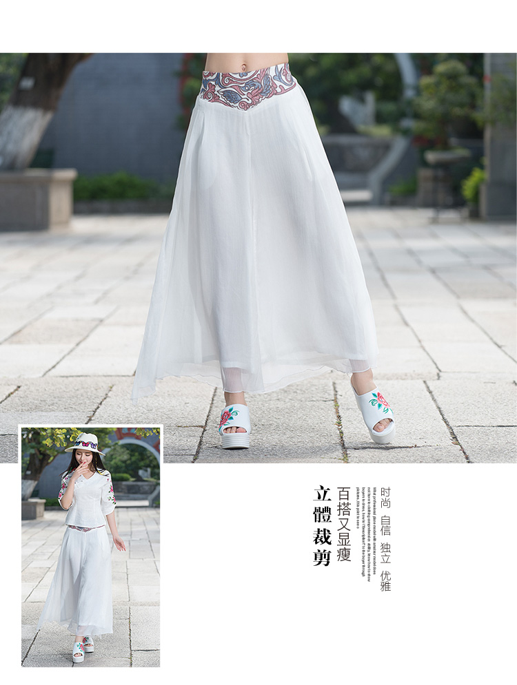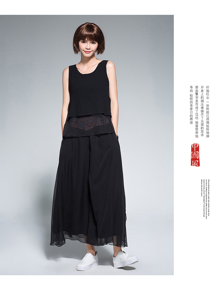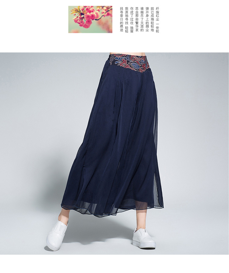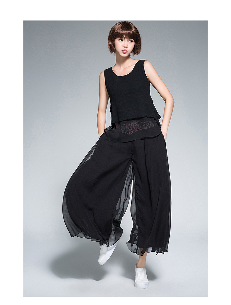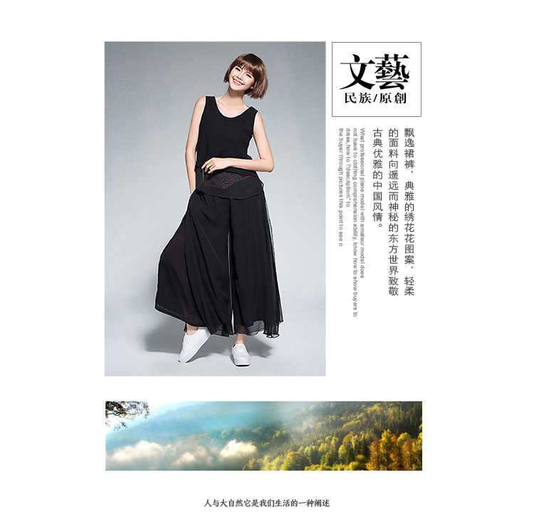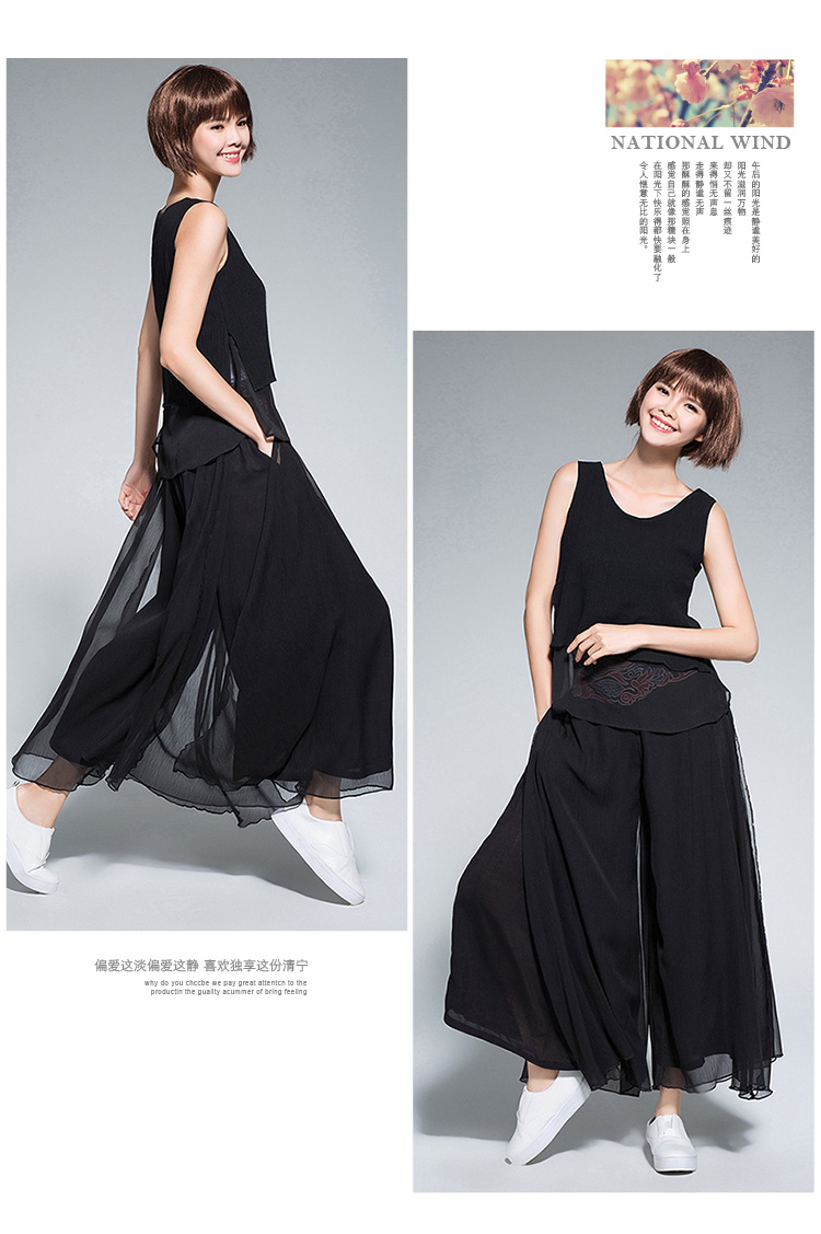 2020夏季民族風復古高腰繡花褲裙雪紡褲大碼寬松闊腿褲瑜伽長褲女1入