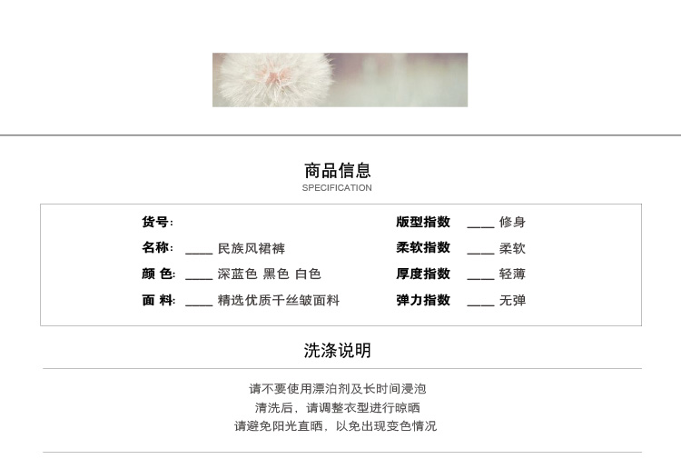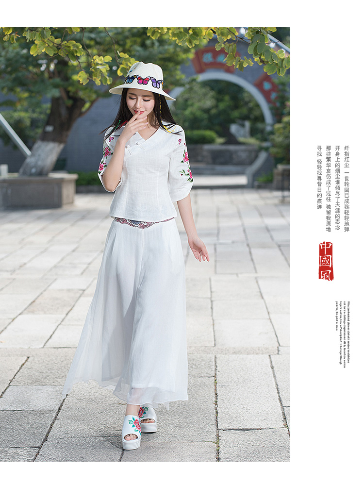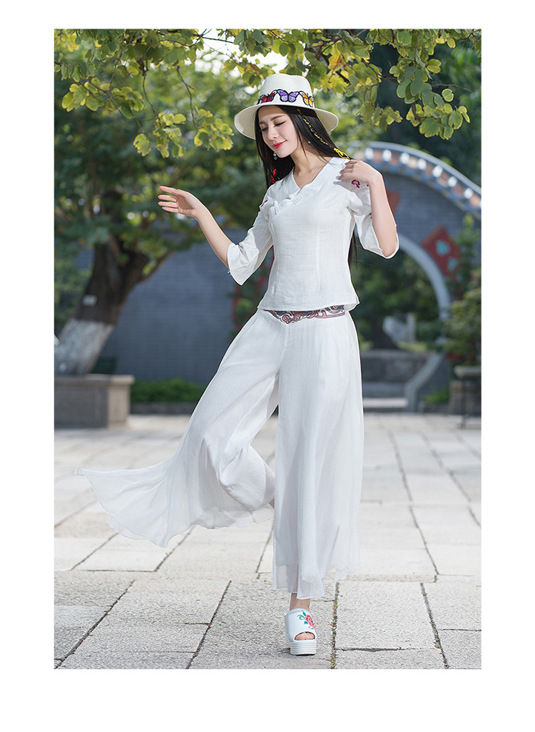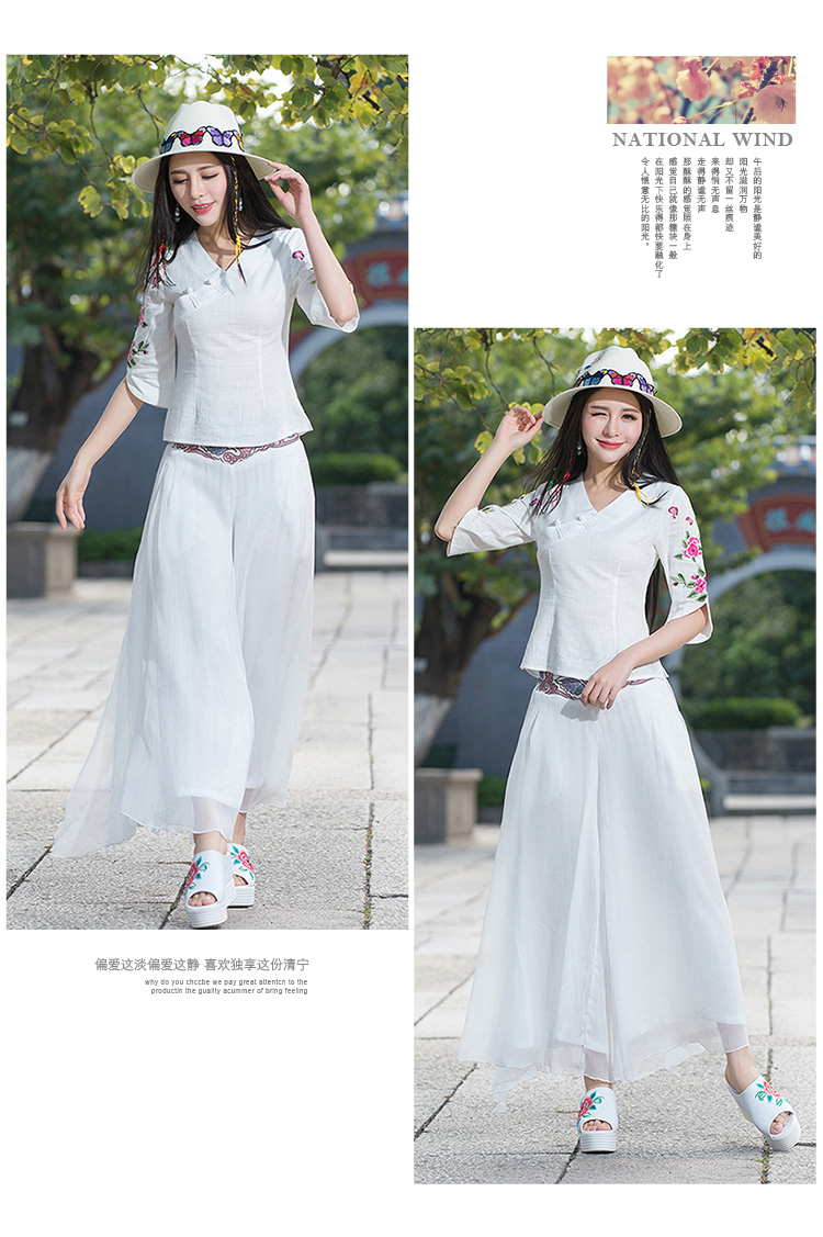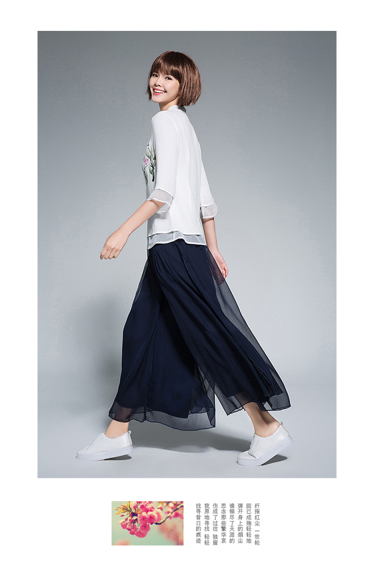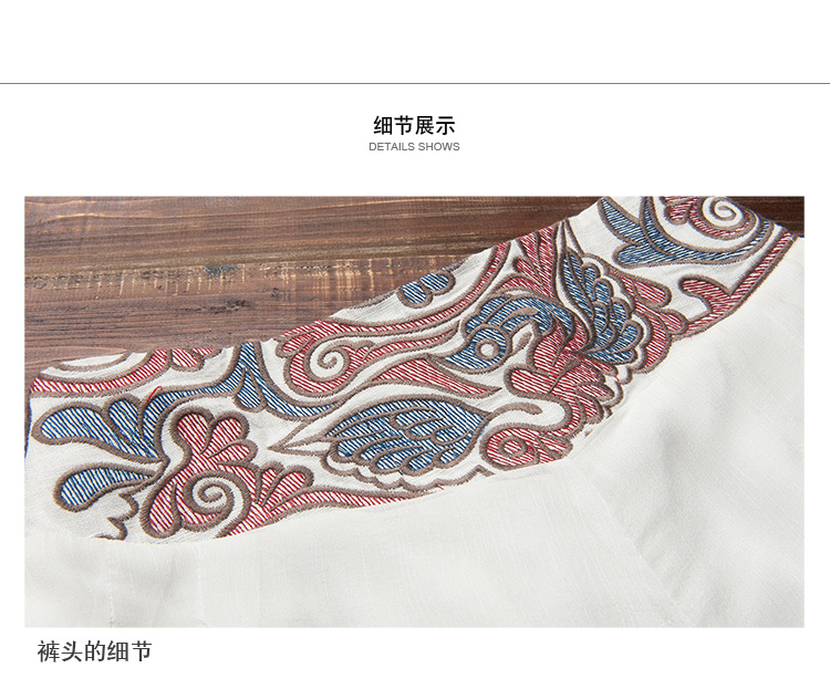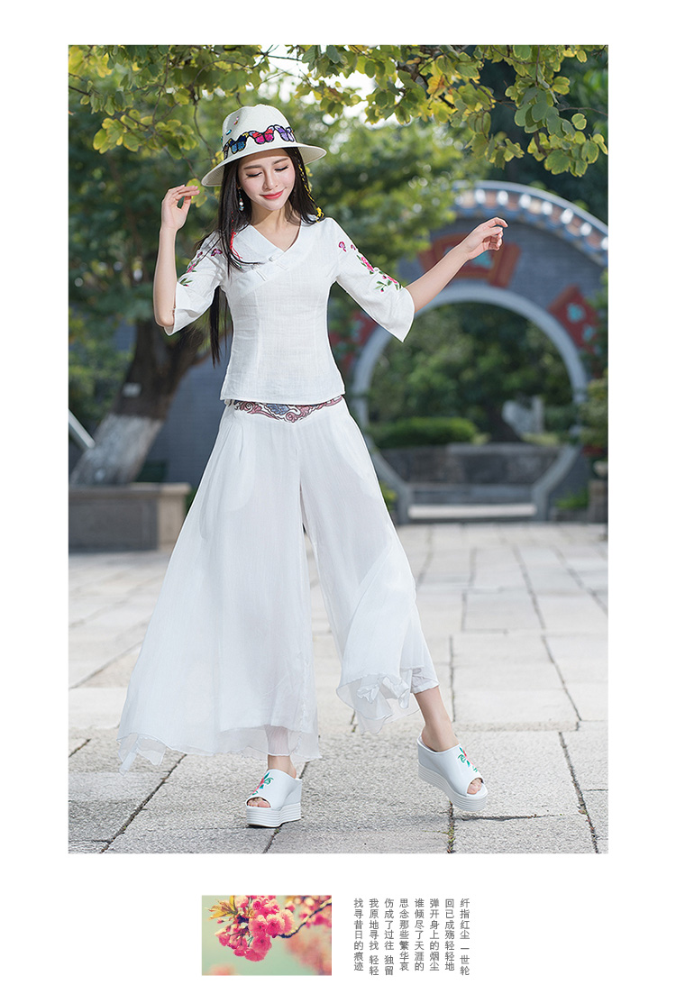 2020夏季民族風復古高腰繡花褲裙雪紡褲大碼寬松闊腿褲瑜伽長褲女1入