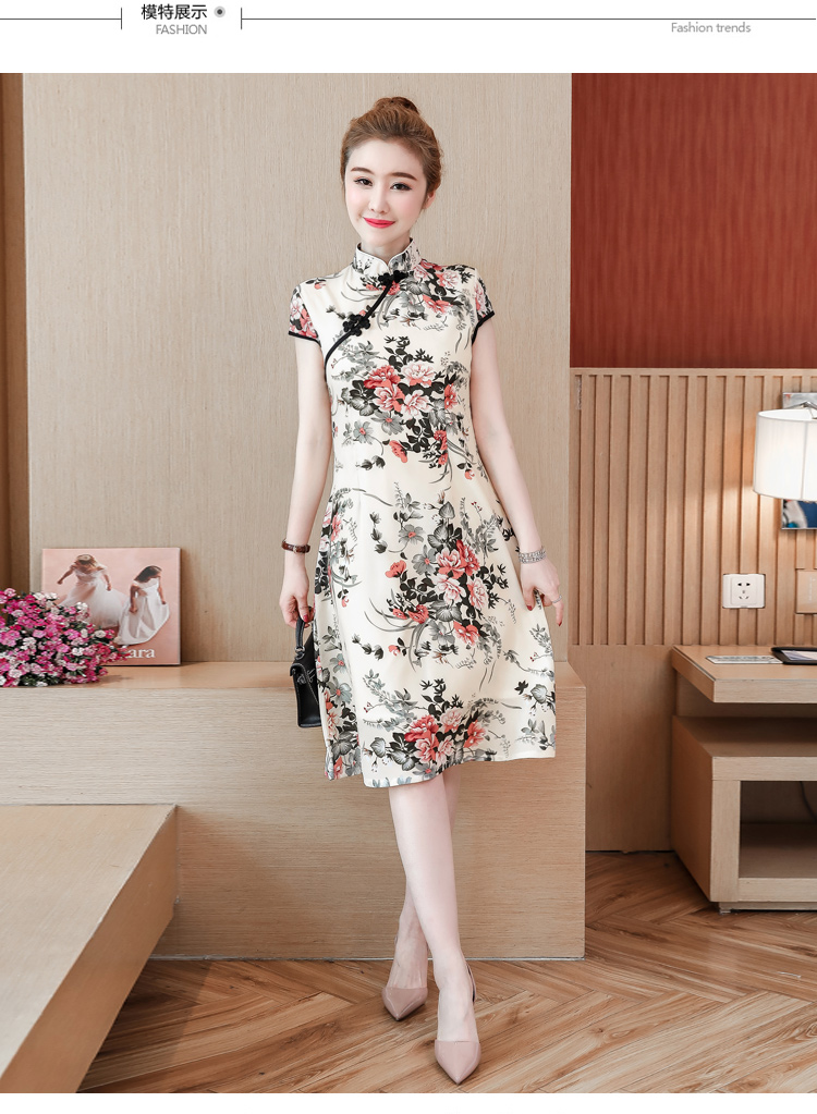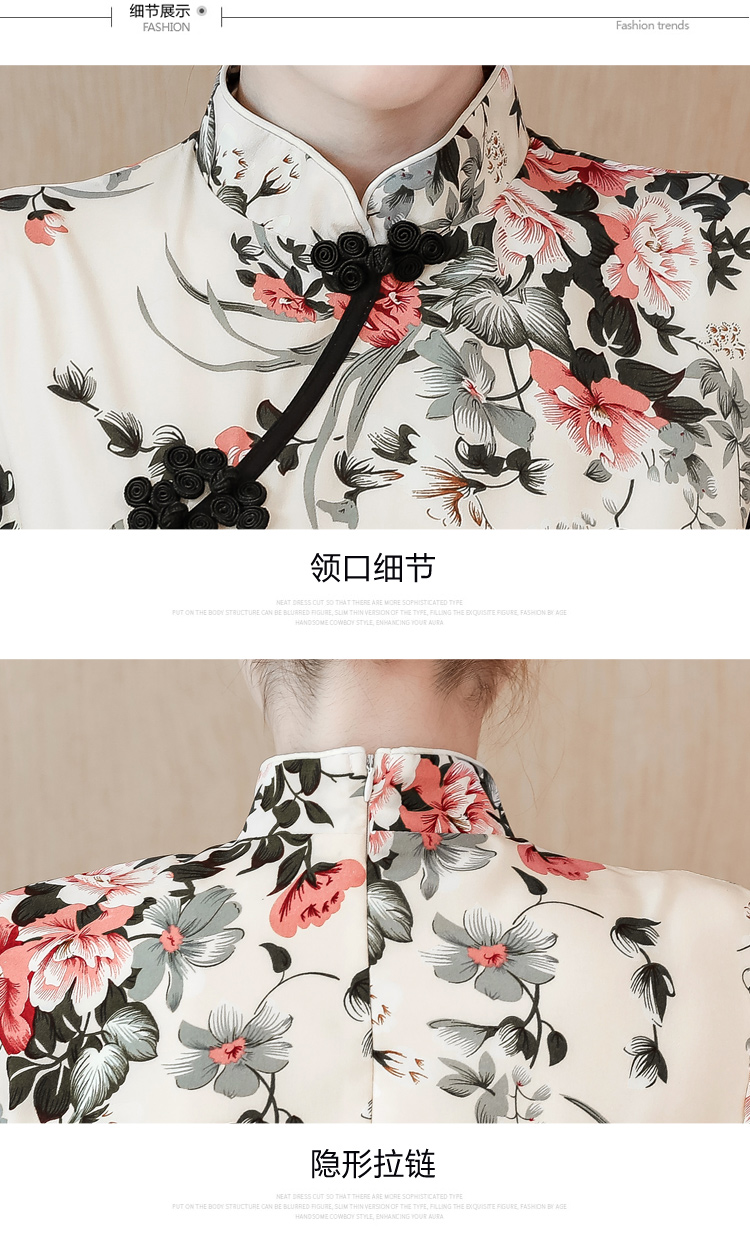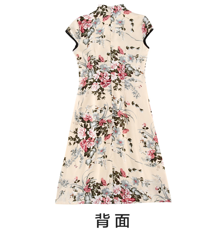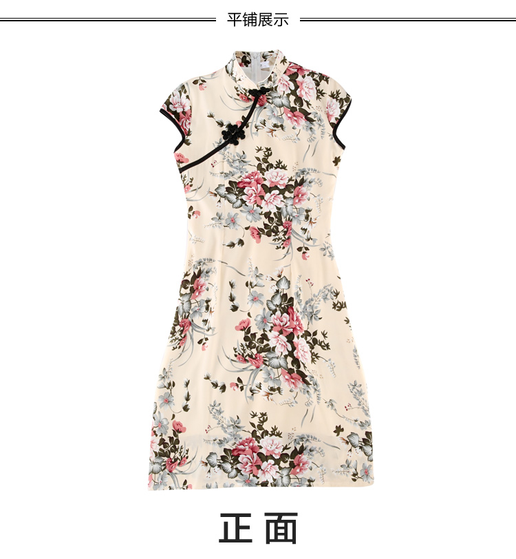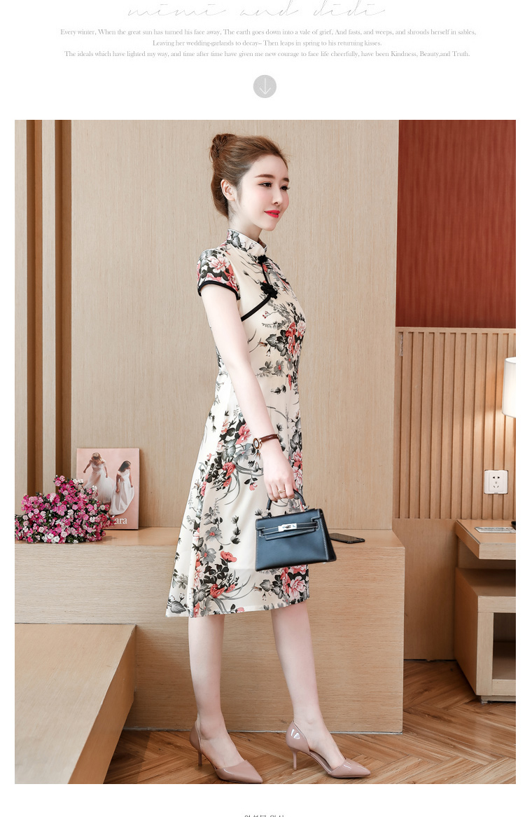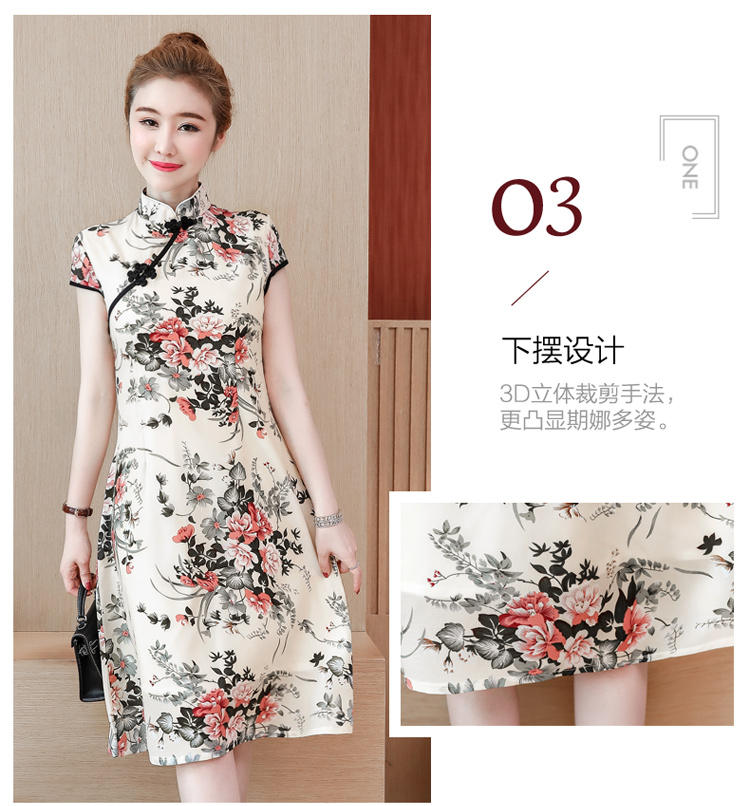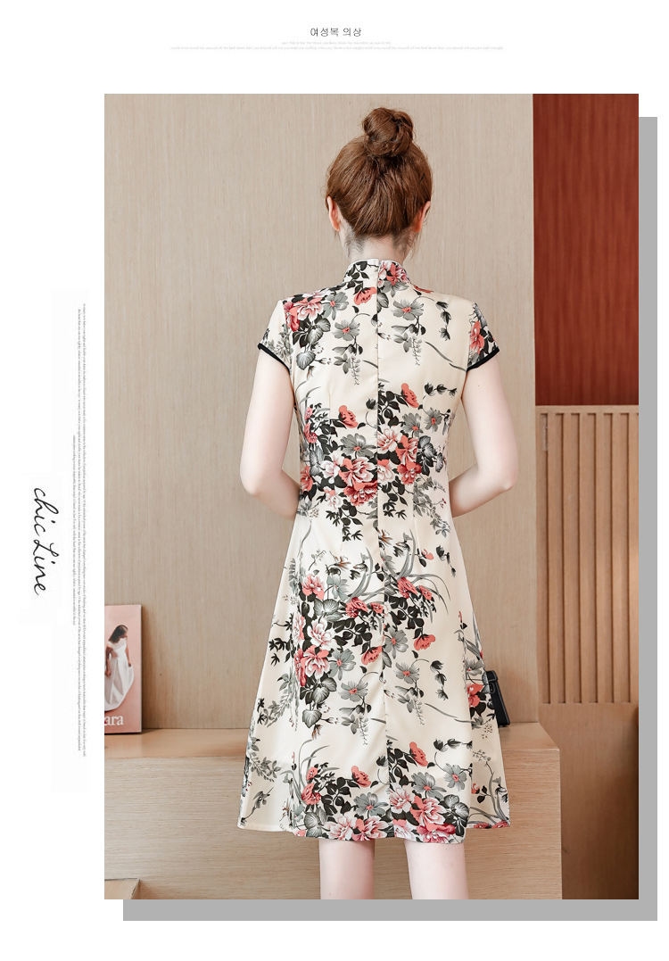 2020夏季新款民族風女裝復古印花連衣裙中式改良盤扣印花旗袍短裙1入