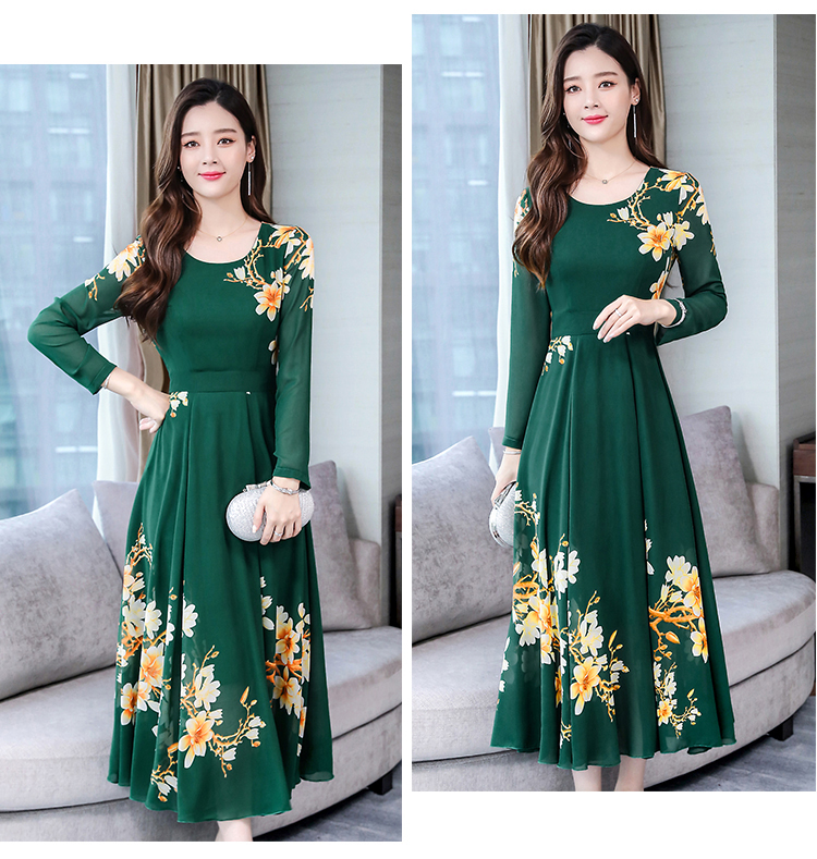 2019秋季新款韓版時尚氣質長袖雪紡連衣裙中長款年輕女人味大擺裙1入