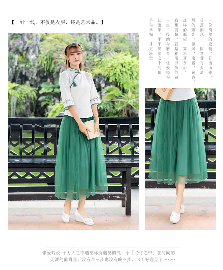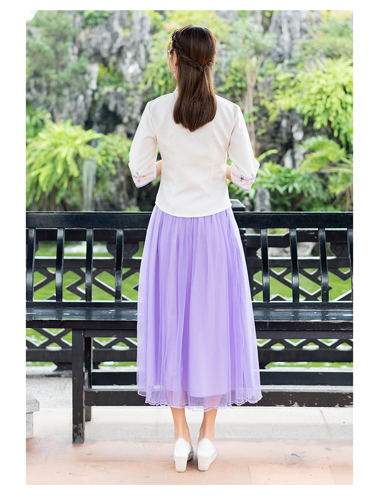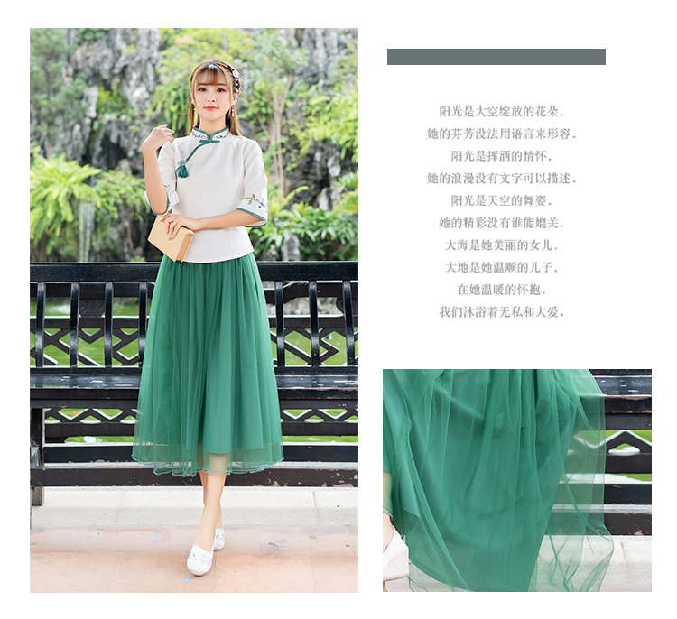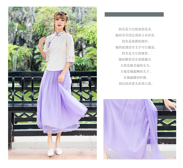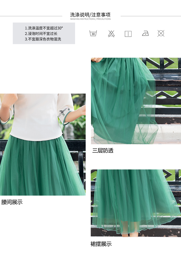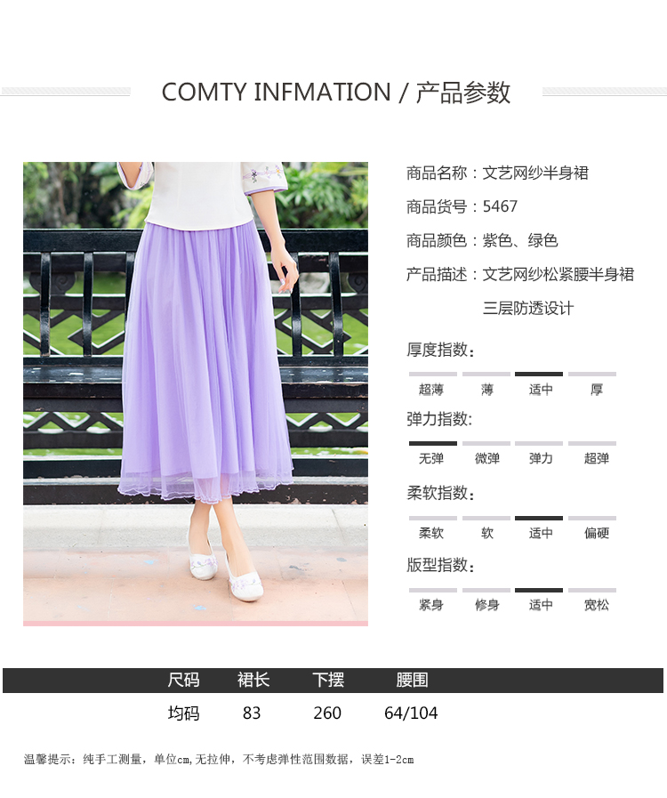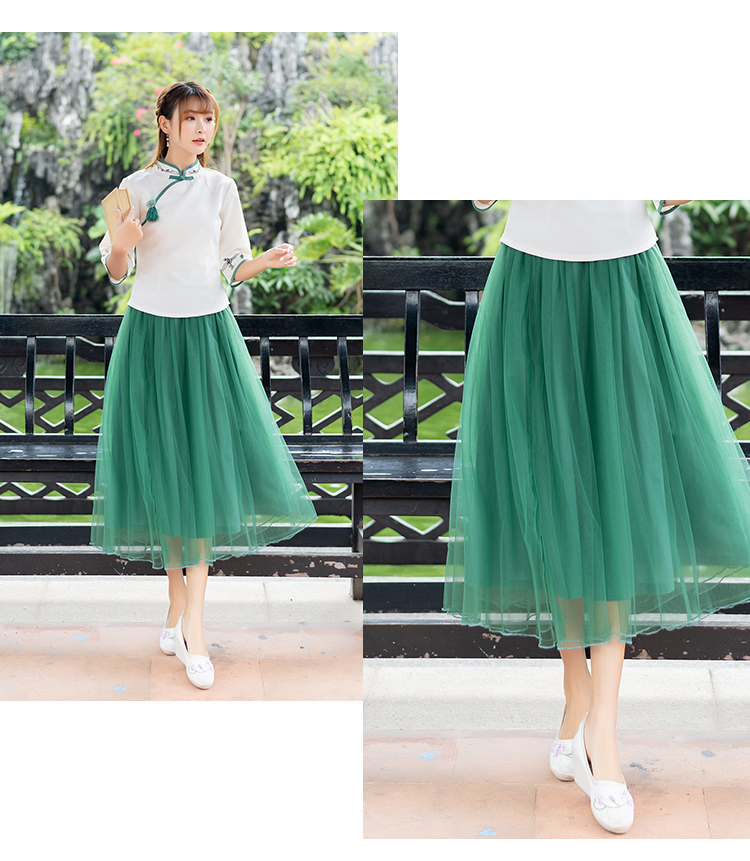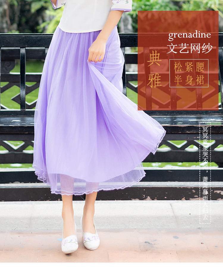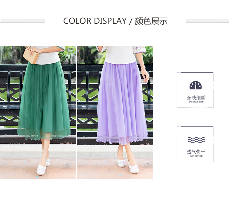2020夏季新款森女系小清新網紗長裙文藝復古三層防透中長款半身裙1入
