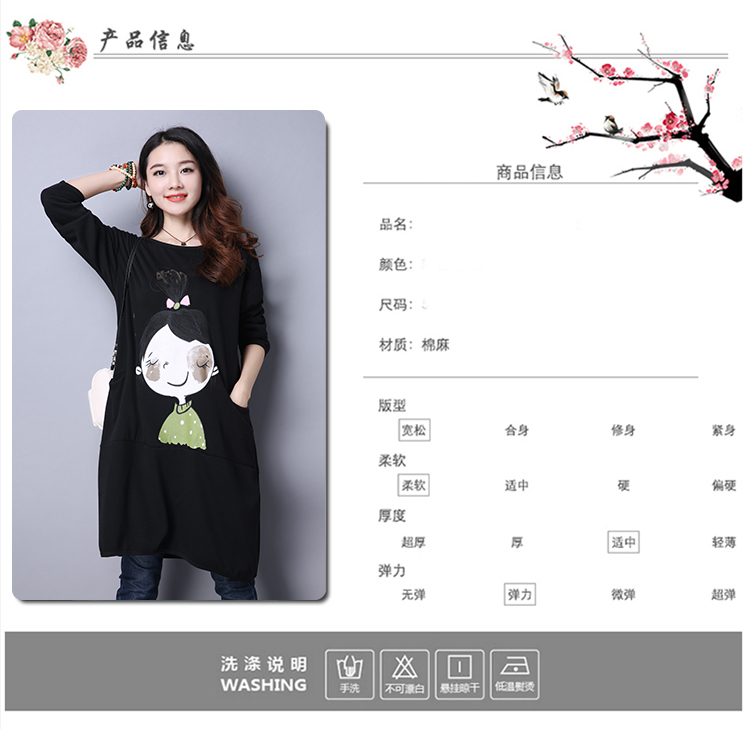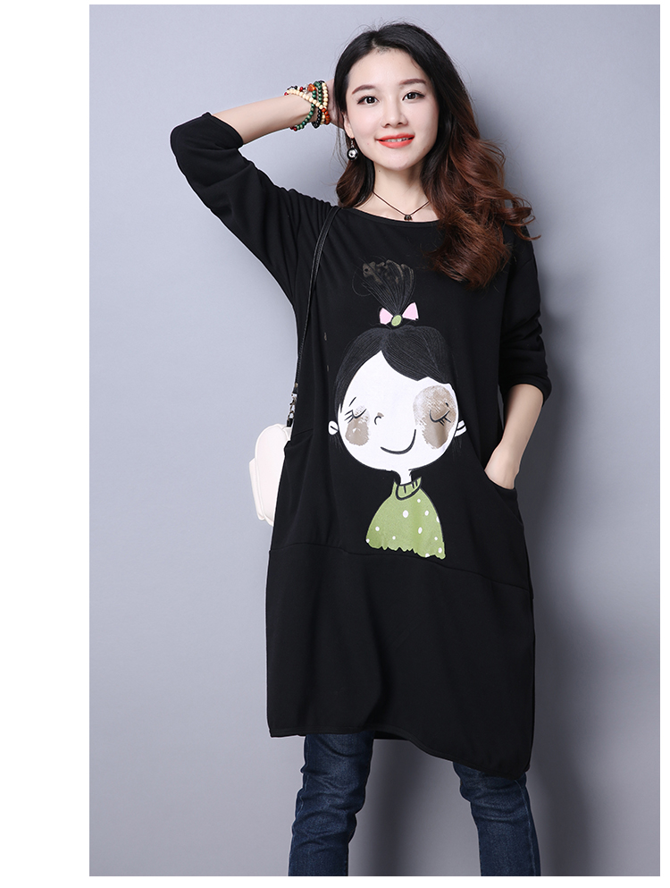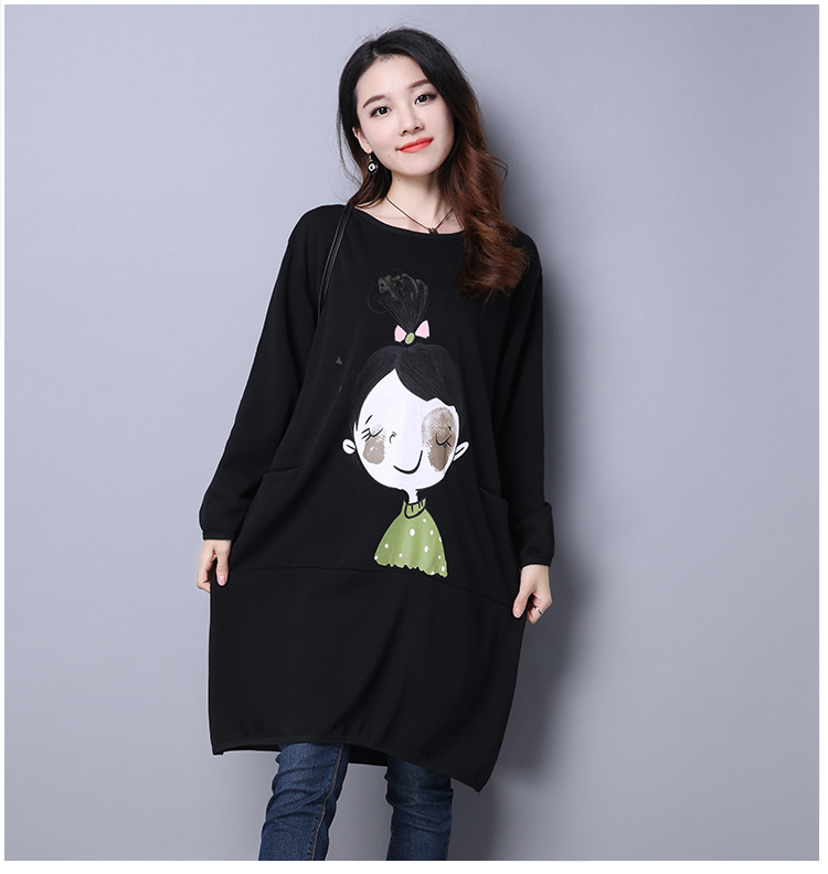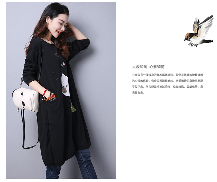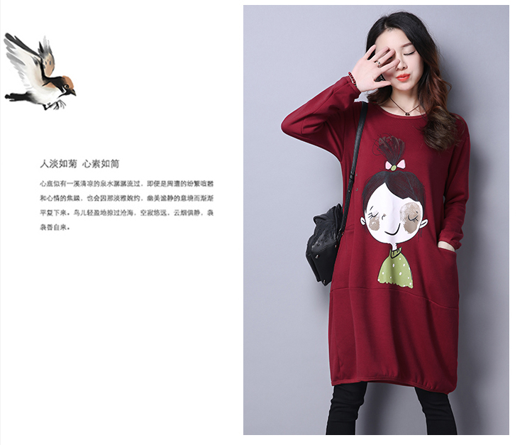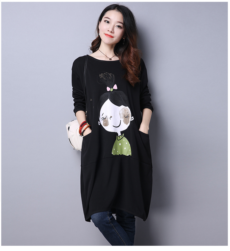 2019秋冬新款韓版學生時尚大碼中長款印花長袖加厚加絨連衣裙衛衣1入
