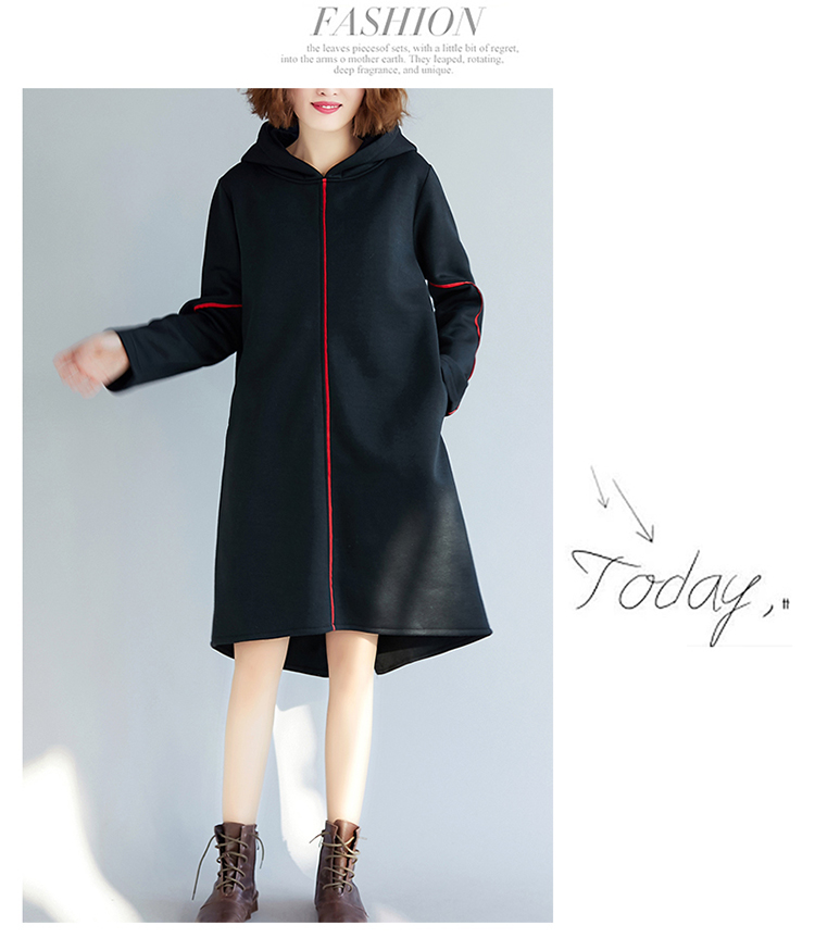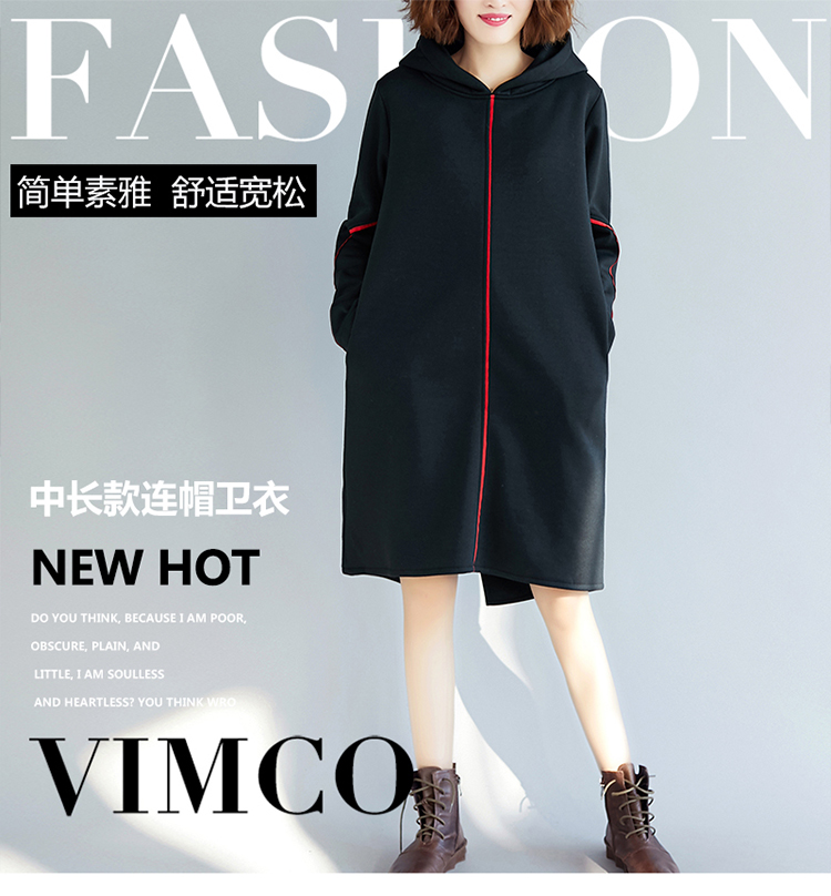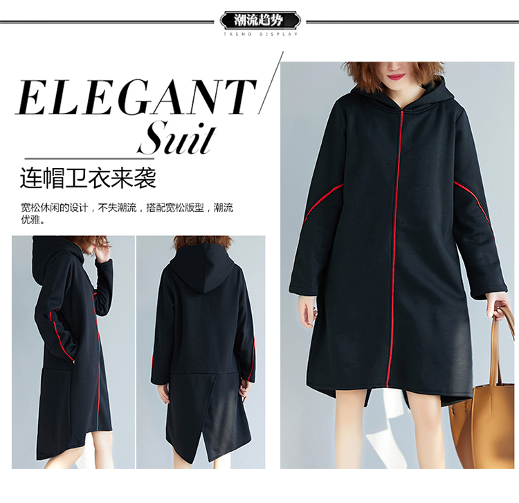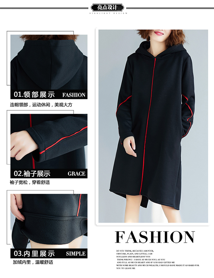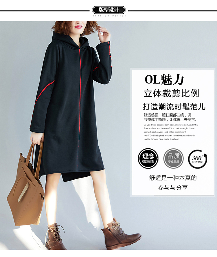 2019秋冬季新款韓版學生大碼女裝寬松加絨加厚連帽衛衣長款連衣裙1入