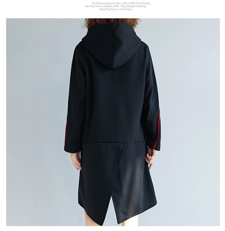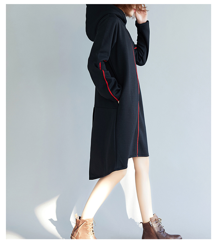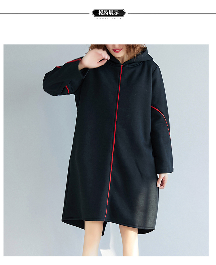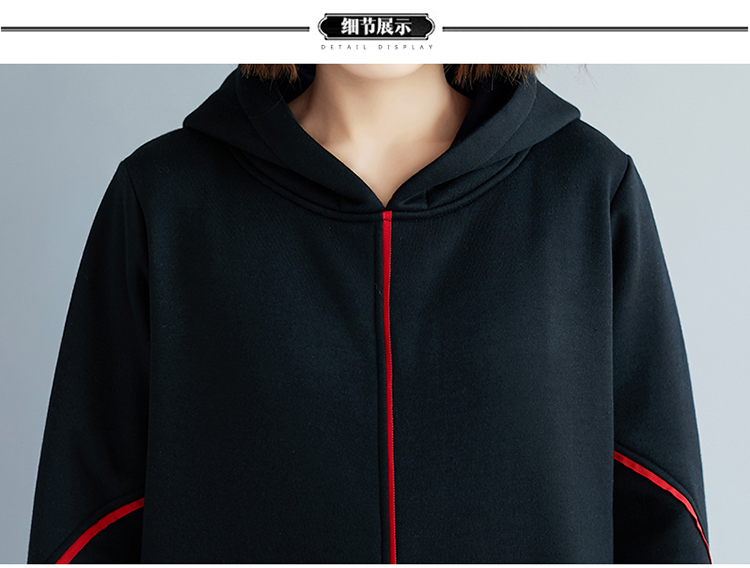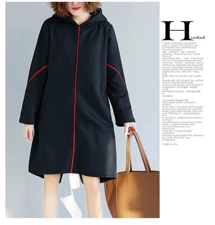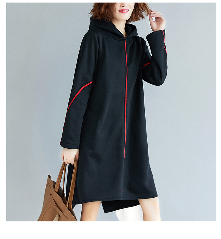 2019秋冬季新款韓版學生大碼女裝寬松加絨加厚連帽衛衣長款連衣裙1入