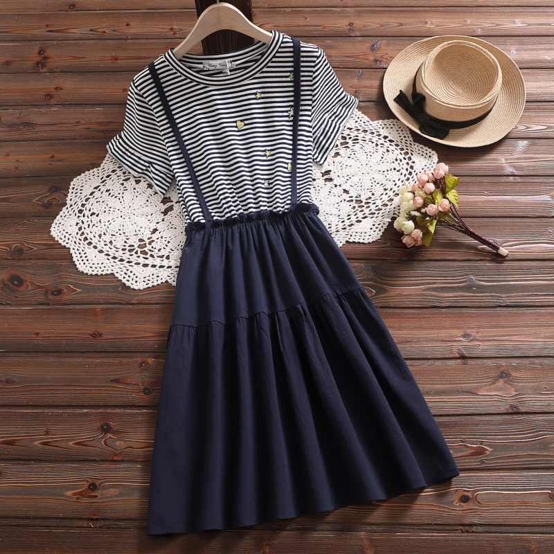 2019夏裝女大童初高中生裙子夏季新款拼接假兩件少女小清新連衣裙