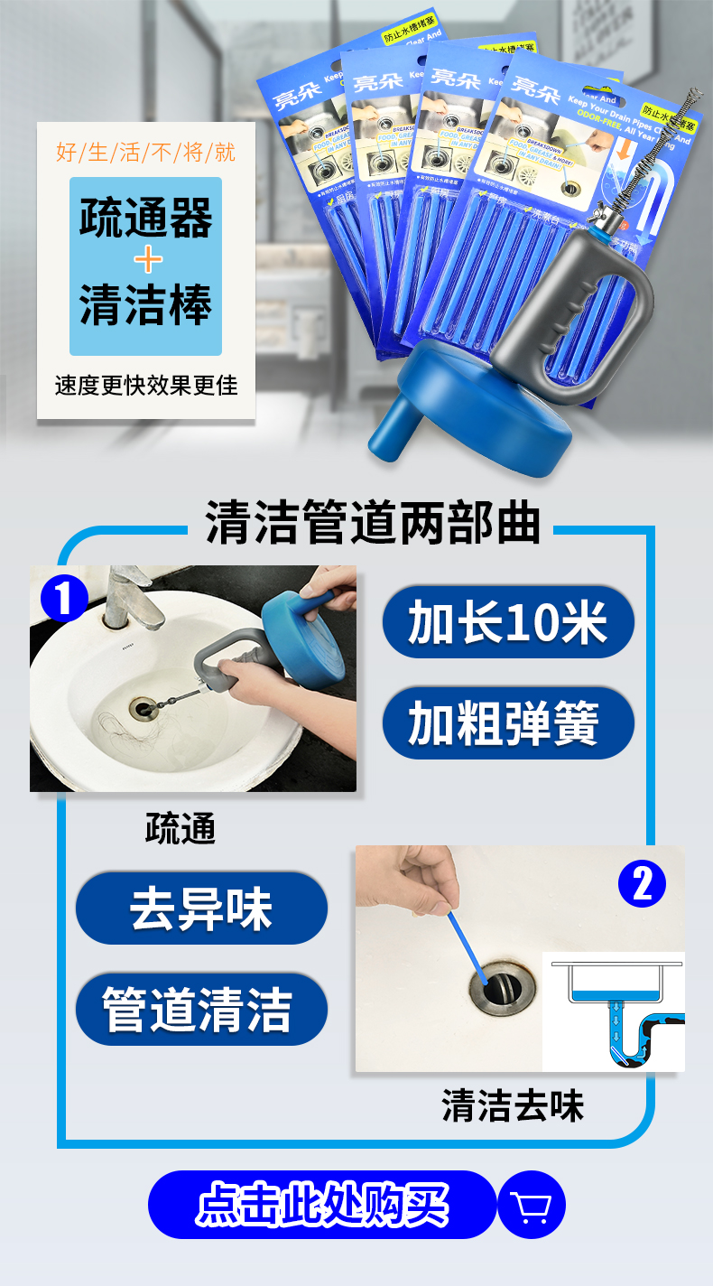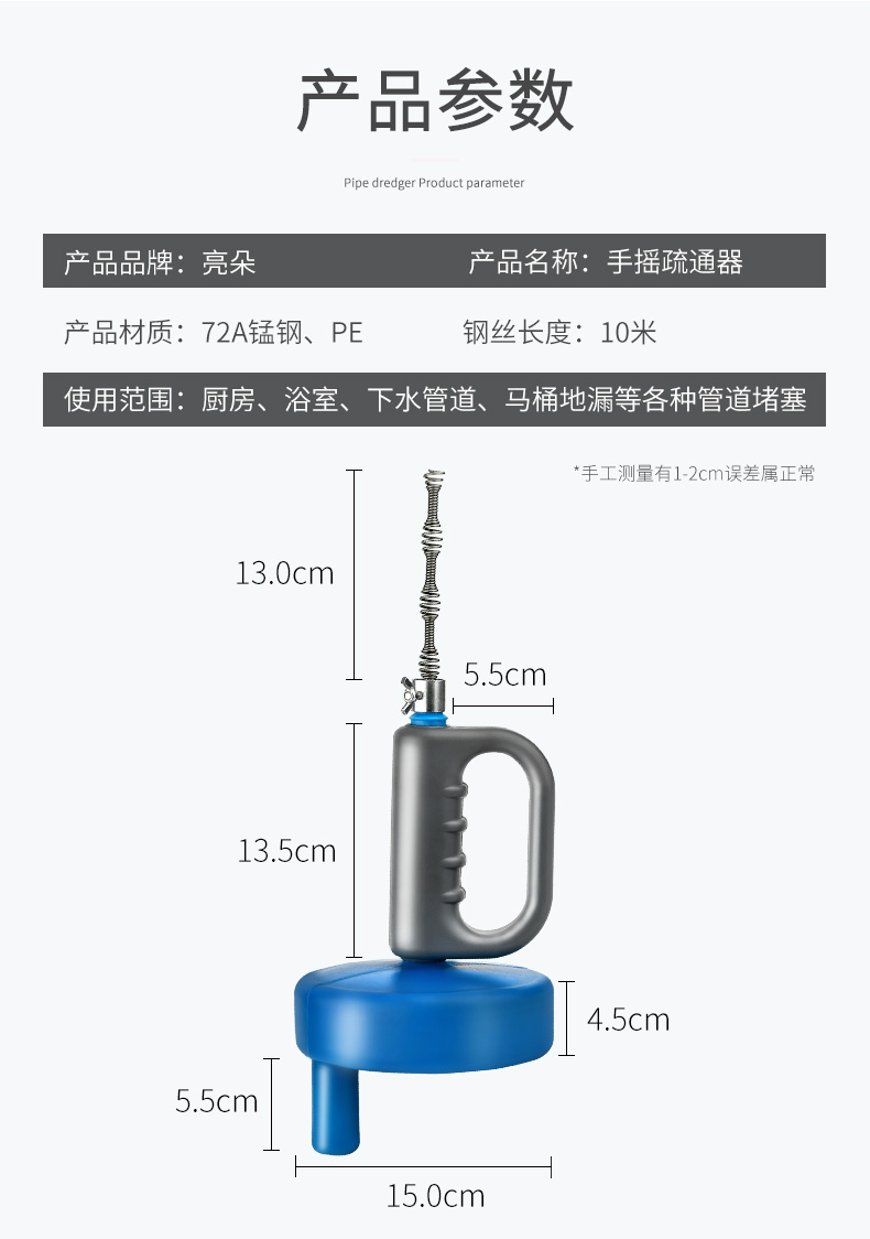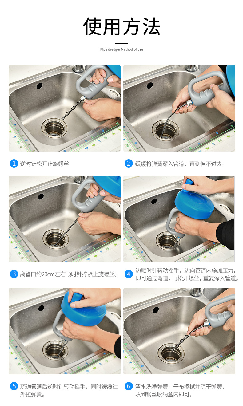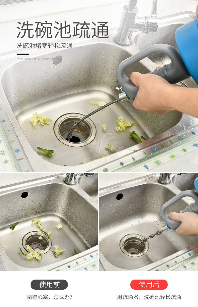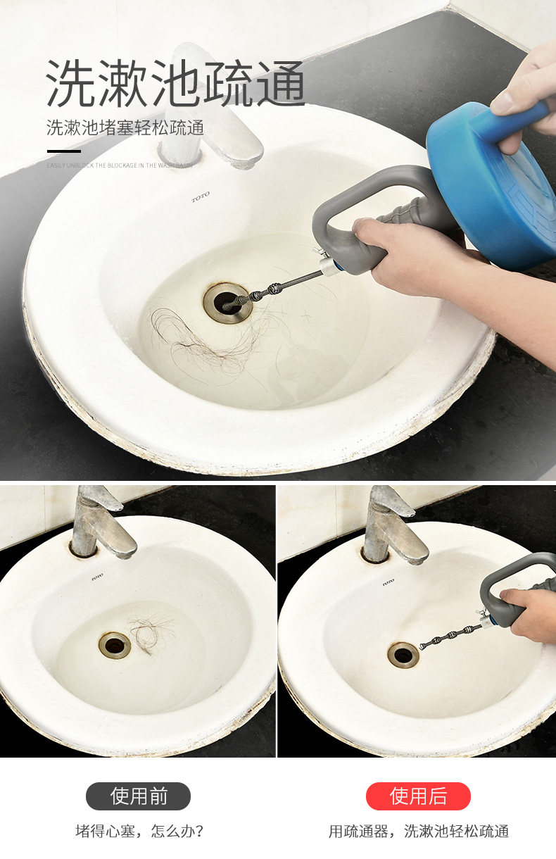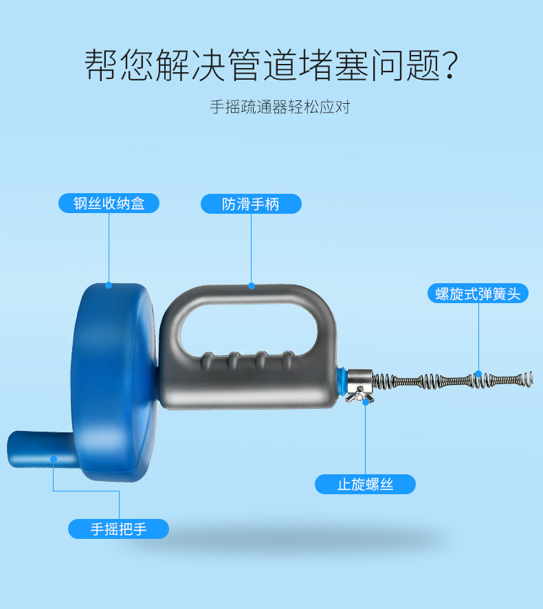 通馬桶通下水道疏通器家用捅廁所廚房管道堵塞工具手搖清潔棒神器