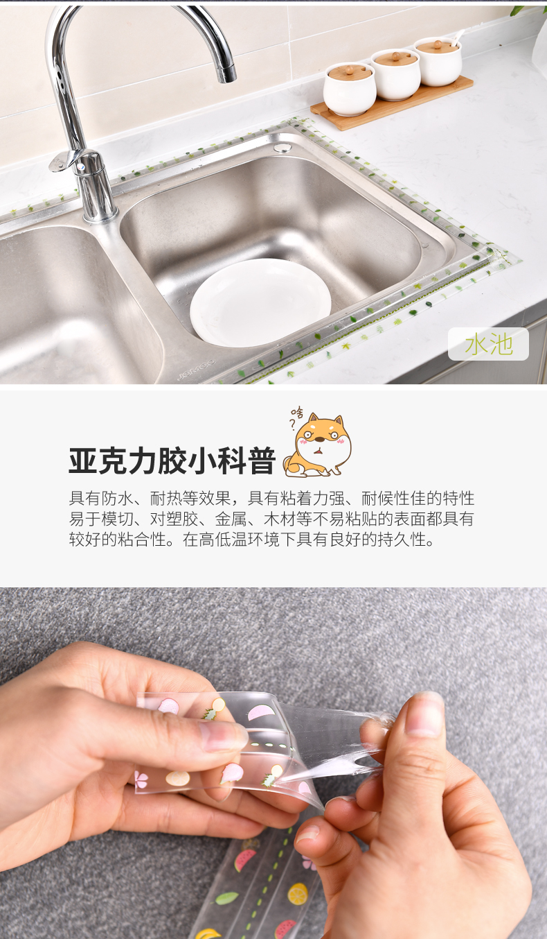 防水貼紙裝飾墻貼自粘瓷磚地貼廚房水槽防油衛生間水池防霉美縫貼