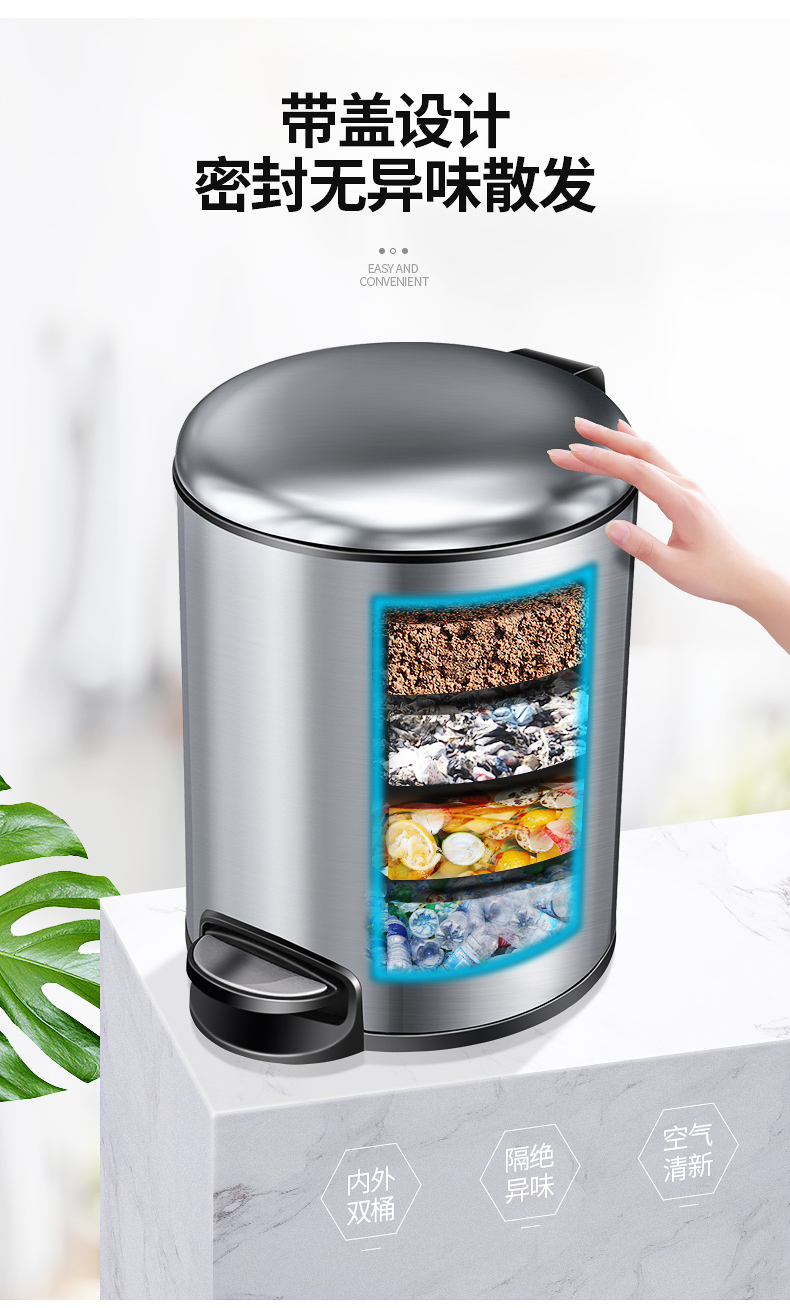 不銹鋼垃圾桶家用帶蓋客廳廚房創意腳踏式衛生間廁所大號腳踩紙簍