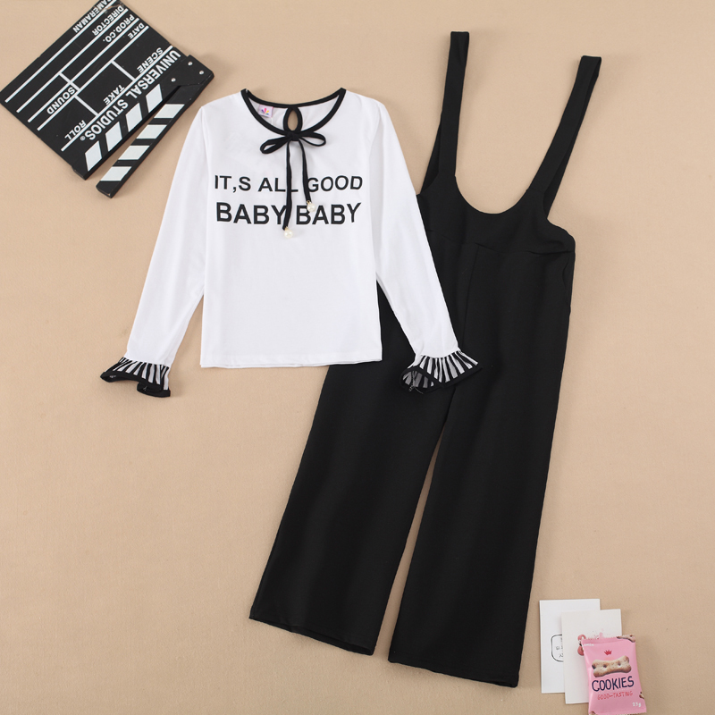 2019新款春裝女童背帶褲套裝兩件套春秋女孩韓版8中大童洋氣15歲