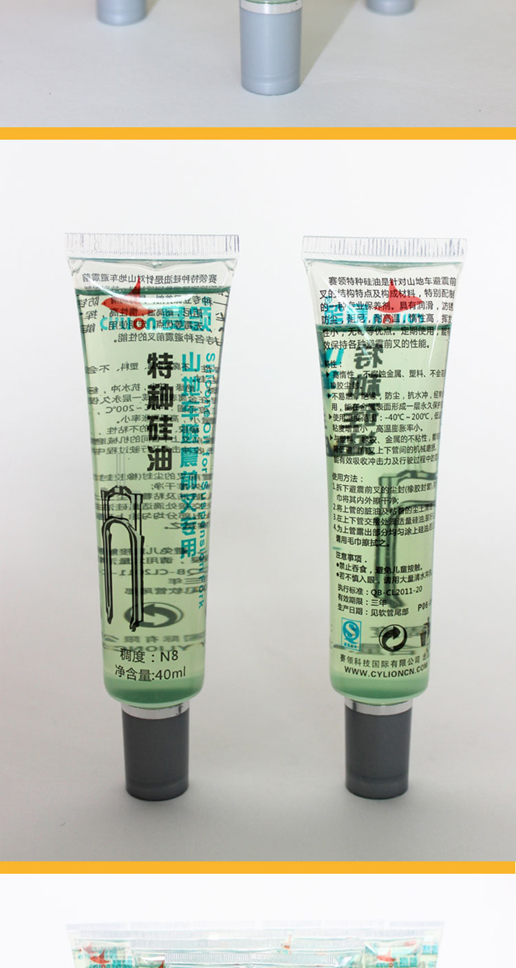 【品 名】山地車避震前叉 硅油 【編 號】P06-1 【規 格】40ml 【粘稠度】N8 【產品介紹】 賽領特種硅油是針山地車避震前叉的結構特點及構成材料,配制的一種保養劑。具有潤滑,防銹,防塵,耐高溫,惰性高,揮發性小,無毒等優點。定期使用,能有效保持各種避震前叉的性能 【特性】 *高惰性,不腐蝕金屬、塑料、不會溶脹橡膠塵封。 *不易燃,絕緣,防塵,抗水沖,經常使用,能在金屬表面形成一層保護層。 *使用溫度范圍:-40℃∼200℃,低溫下粘度增量小,高溫膨脹率小。 *與塑料、橡膠、金屬的不粘性,能明顯降低避震前叉上下管間的機械磨損。能有效吸收沖擊力及行駛過程中的震動。 ![]() ![]() ![]() ![]() |