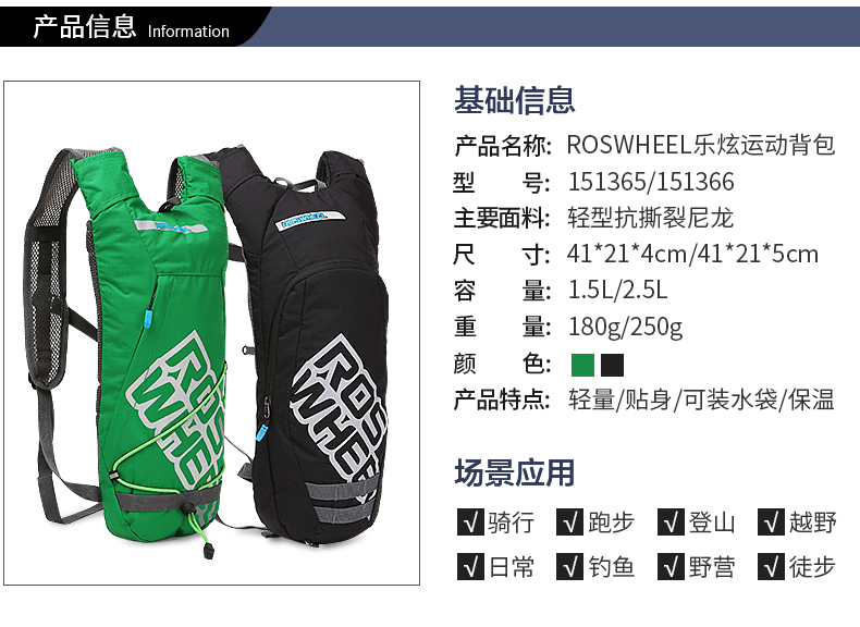 ROSWHEEL樂炫騎行背包自行車包輕量型戶外運動跑步水袋背包2.5L