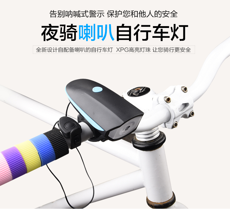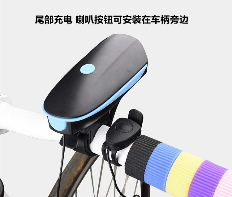 自行車前燈帶喇叭山地車強光手電筒夜騎USB充電電子喇叭鈴鐺裝備