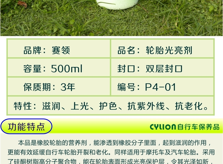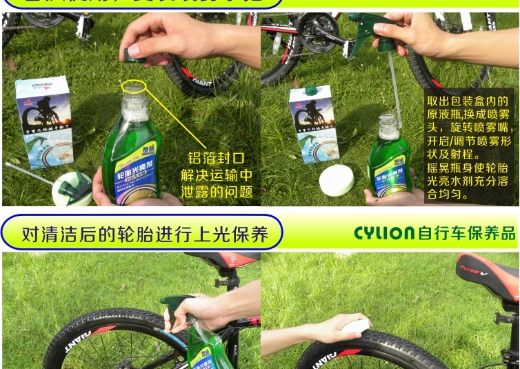 賽領CYLION輪胎光亮劑 山地自行車輪胎清潔劑 保養護蠟輪胎防老化