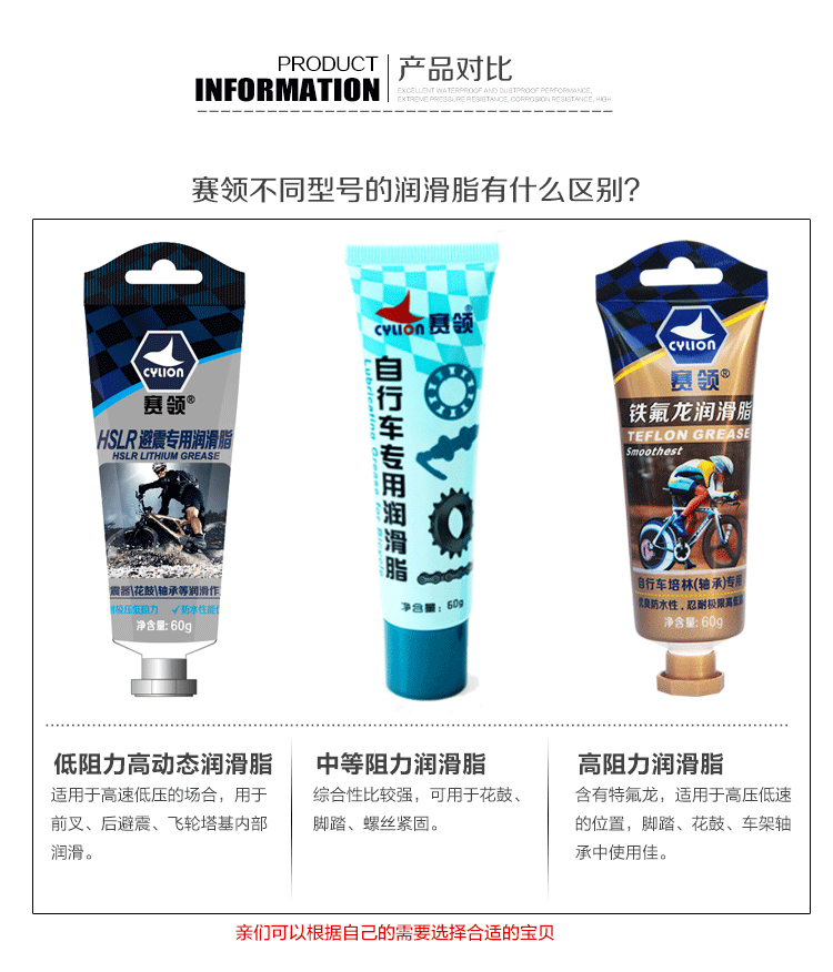 賽領CYLION山地自行車鐵氟龍特氟龍潤滑脂防塵防水耐壓抗腐蝕黃油